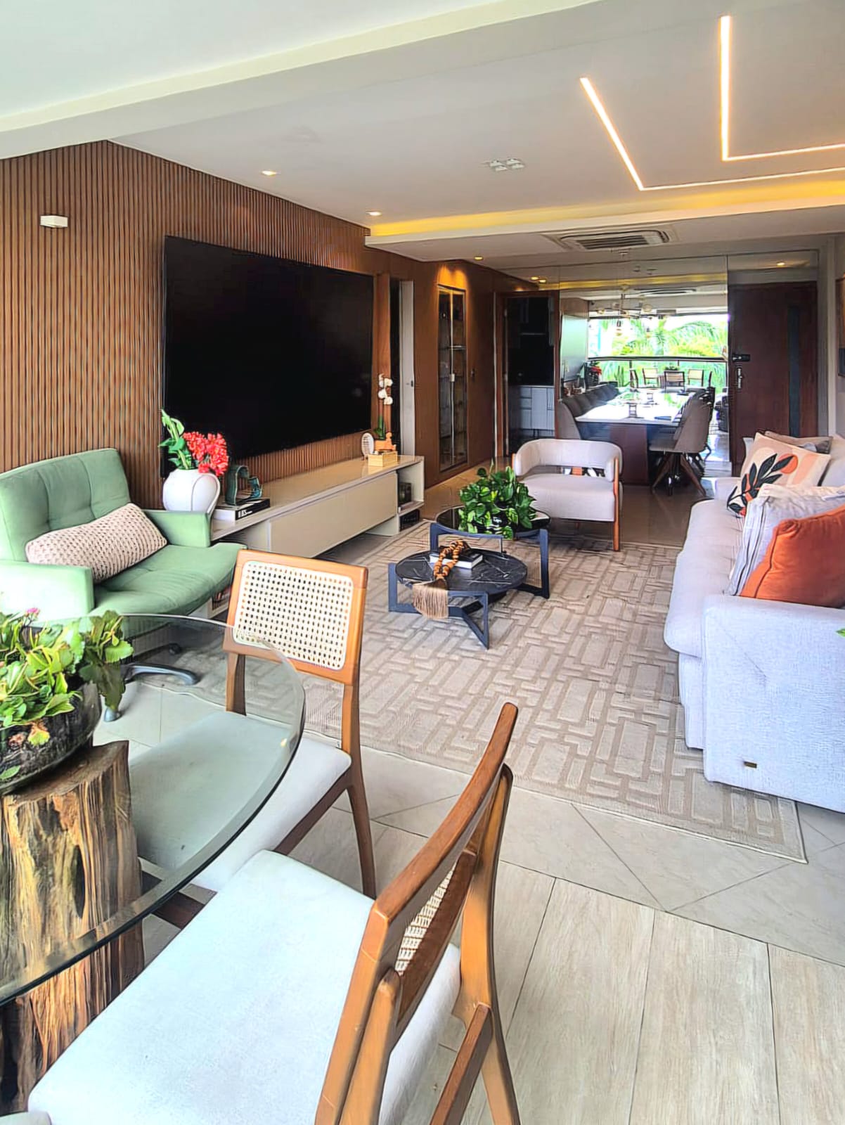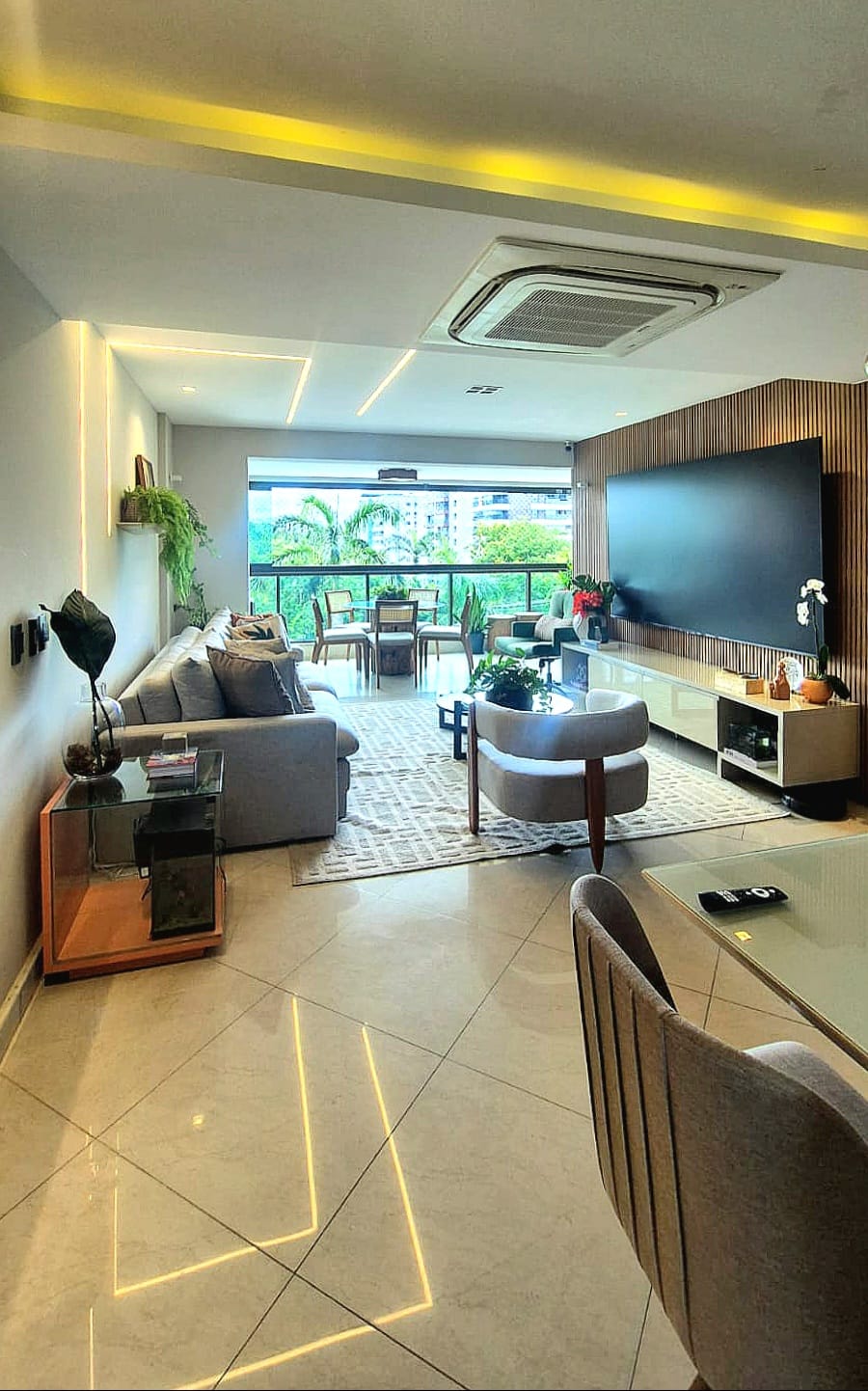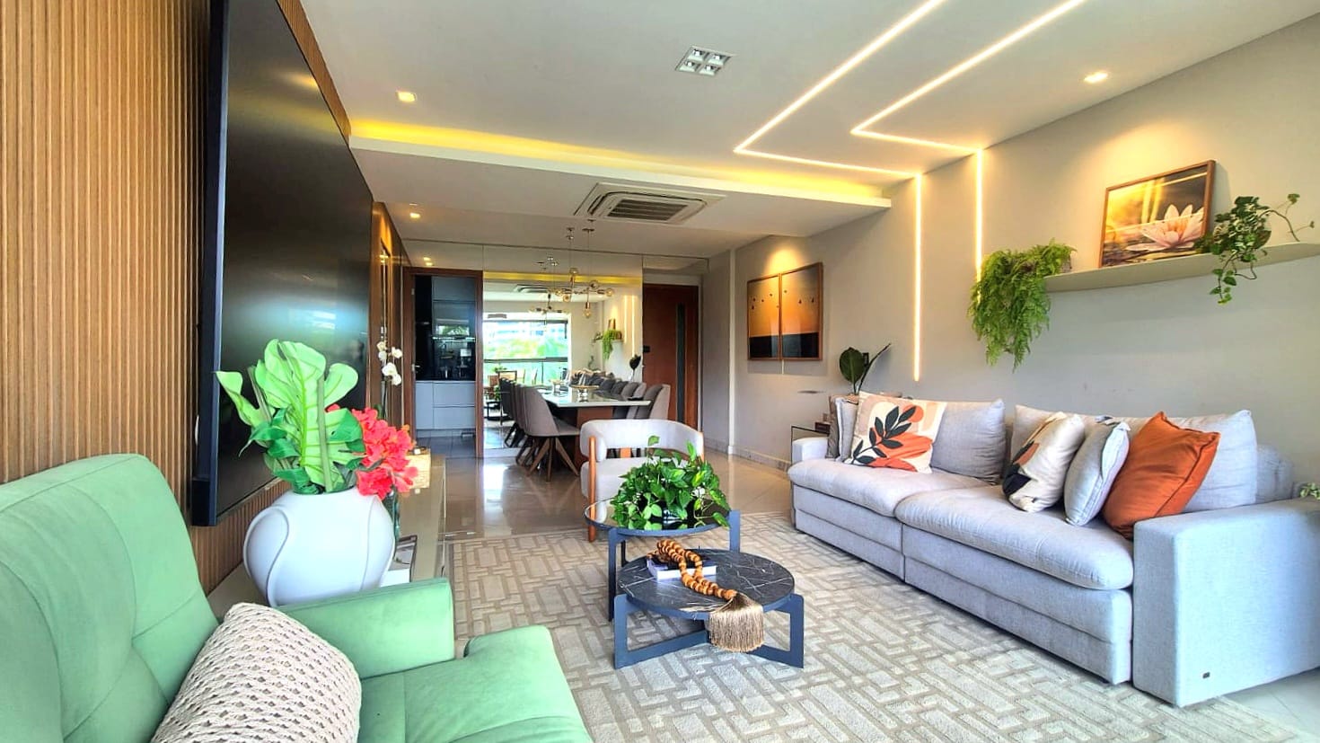 Apartamento de 3 quartos, sendo 1 suite, 102m2, sala com varanda integrada, dependência de empregada, duas vagas de garagem, norte e sul, armários planejados Bontempo em alguns cômodos, piso porcelanato na sala, gesso e iluminação planejados, excelente padrão de acabamento e decoração. Ar condicionados instalados em todos os cômodos e k7 na sala, coifa, cokietop e forno instalados.