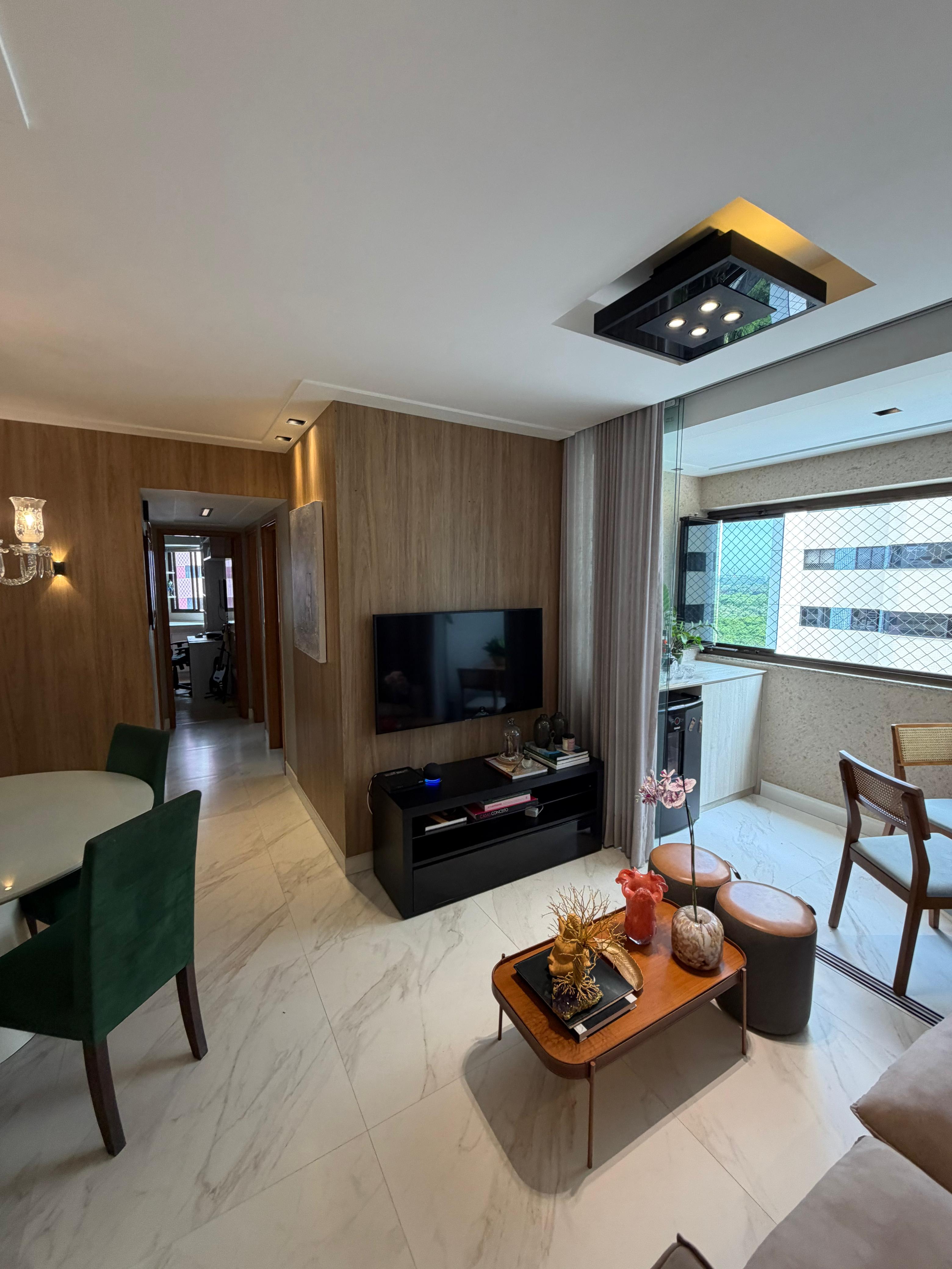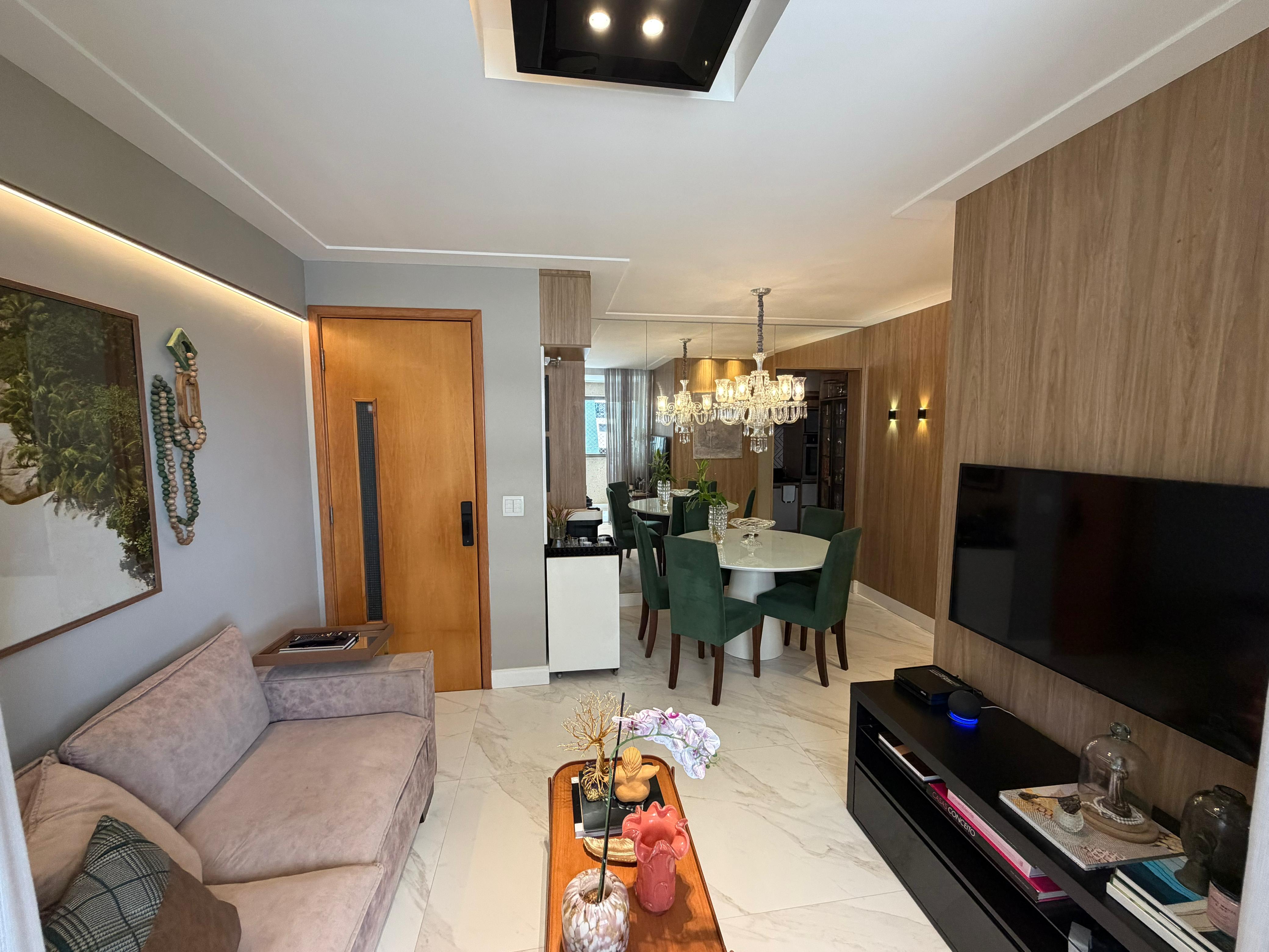 Apartamento à venda de 3 quartos com 1 suite em armação no Mont Saint Michel, 71 m2, totalmente reformado, móveis planejado em todos os cômodos, teto rebaixado em gesso, projeto de iluminação, cortina de vidro na varanda, banheiro social e de serviço, porcelanato, andar alto, 01 vaga de garagem coberta. Condomínio com total área de lazer