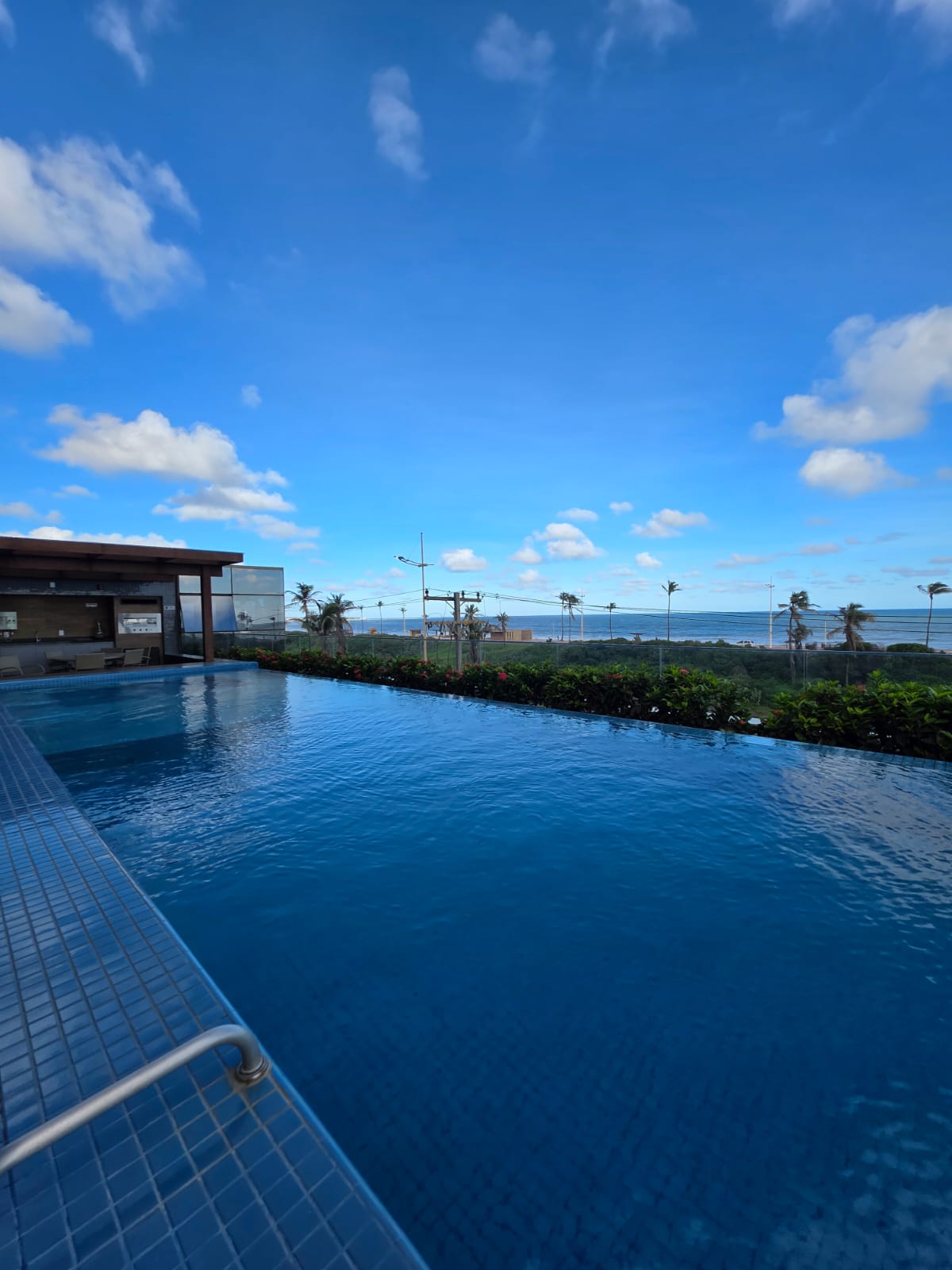 Condomínio dispõe de: piscina com borda infinita, brinquedoteca, salão de festas, academia com vista mar, sauna, churrasqueira, guarderia de prancha, portaria 24h e mais.