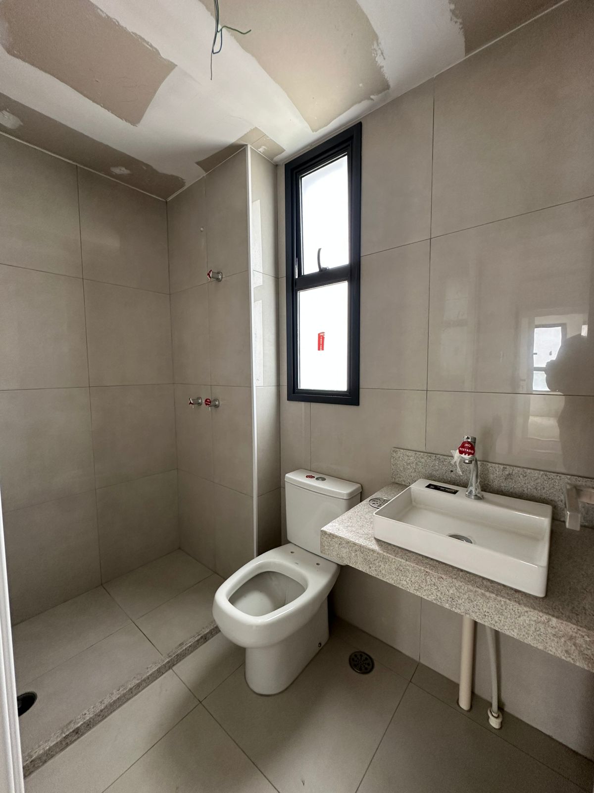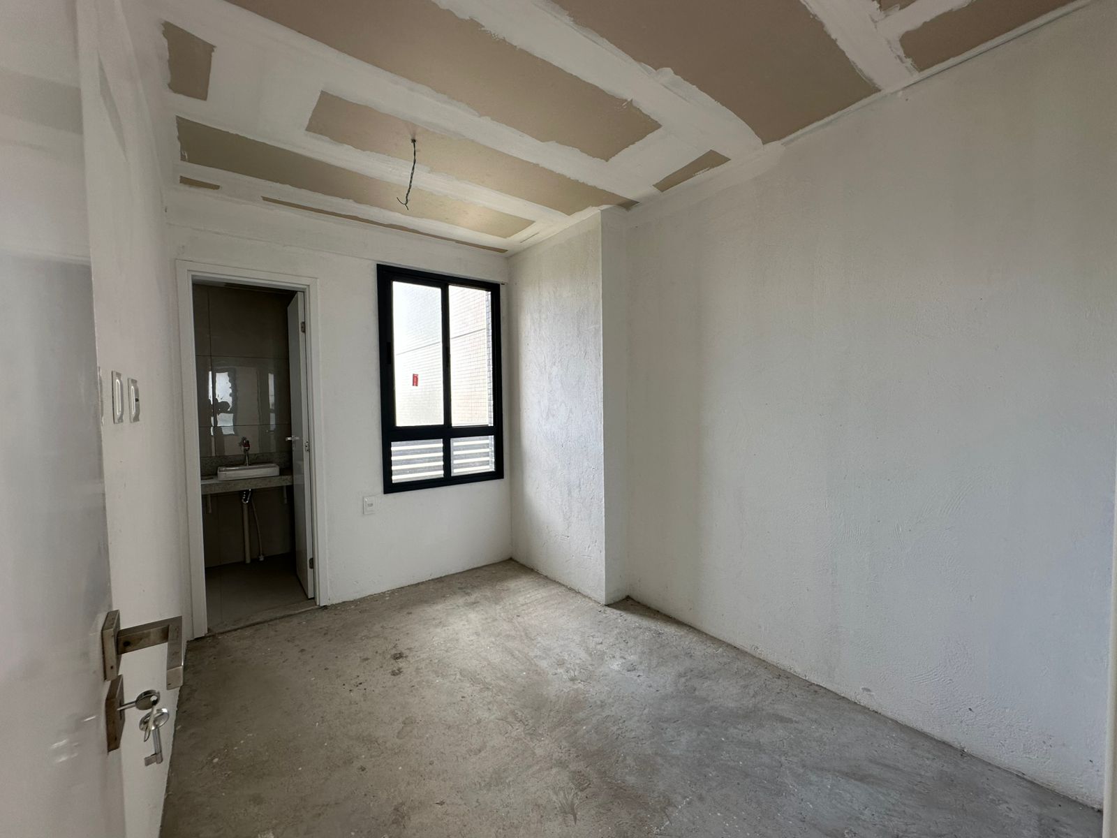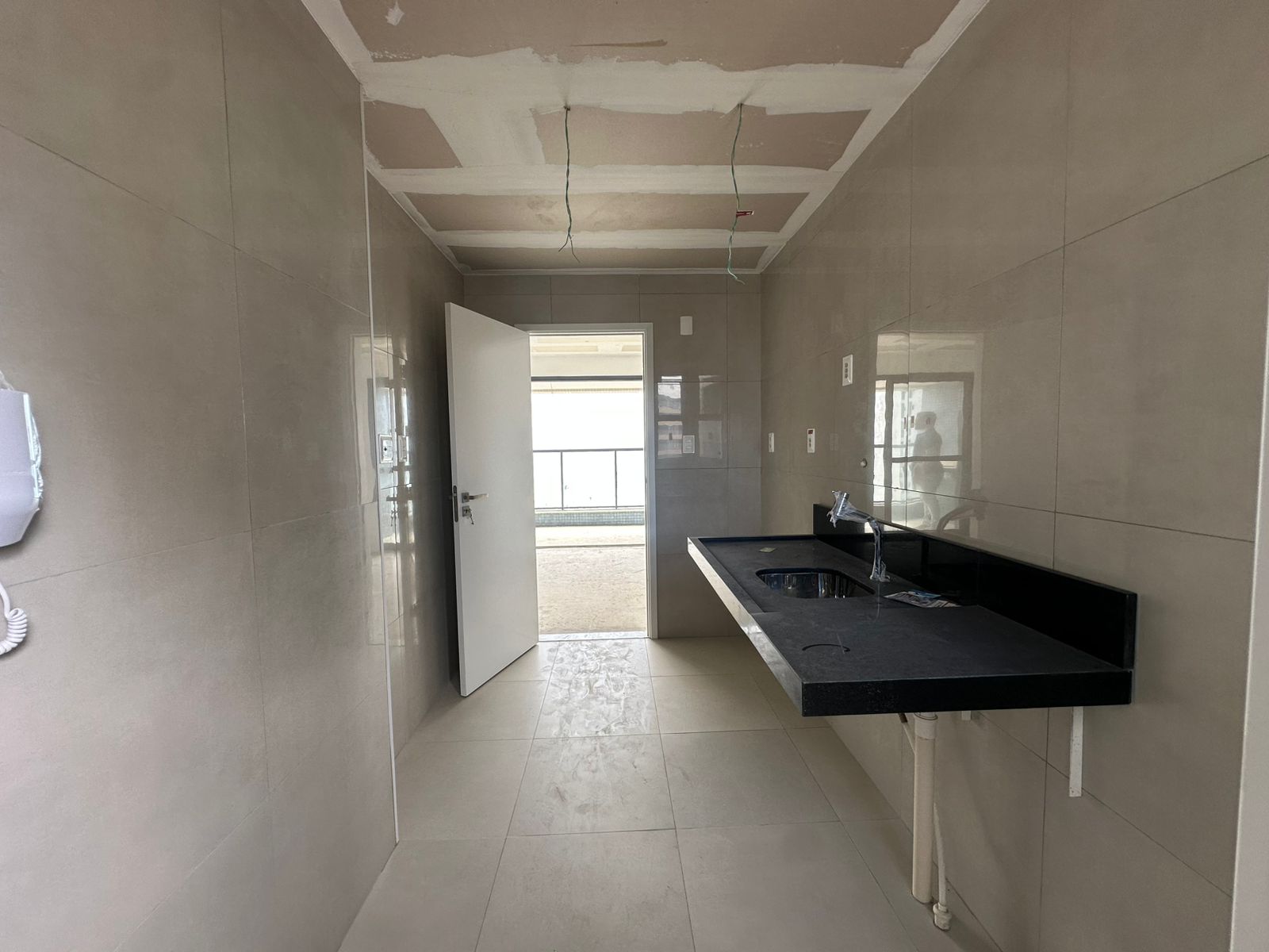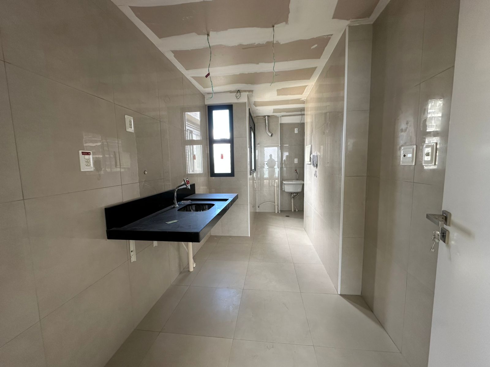 Rebaixamento do teto em gesso, bancadas em granito.