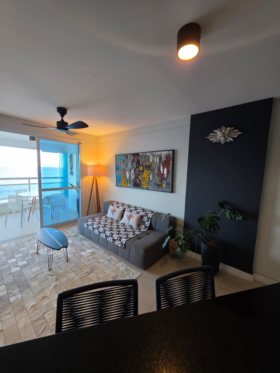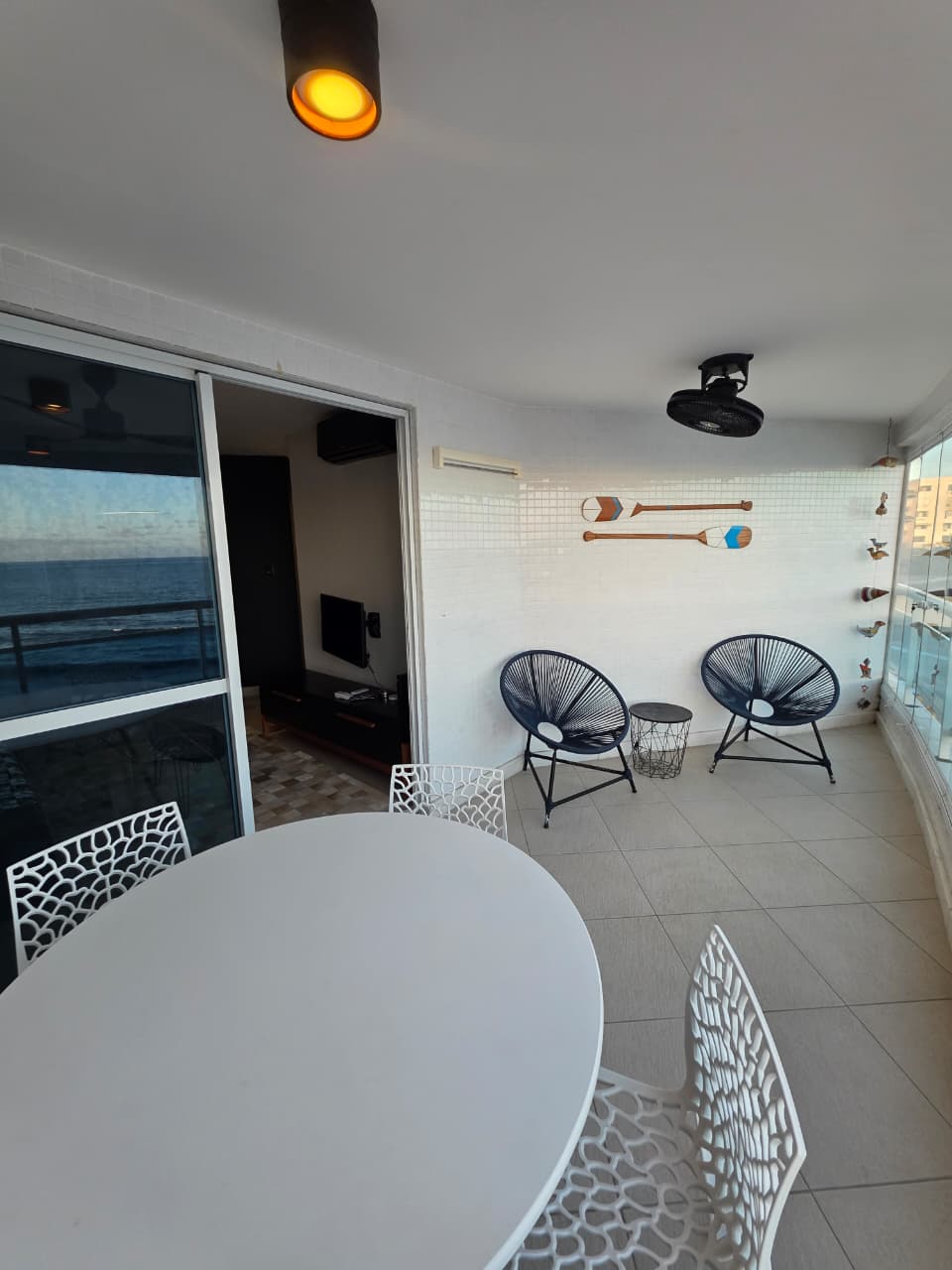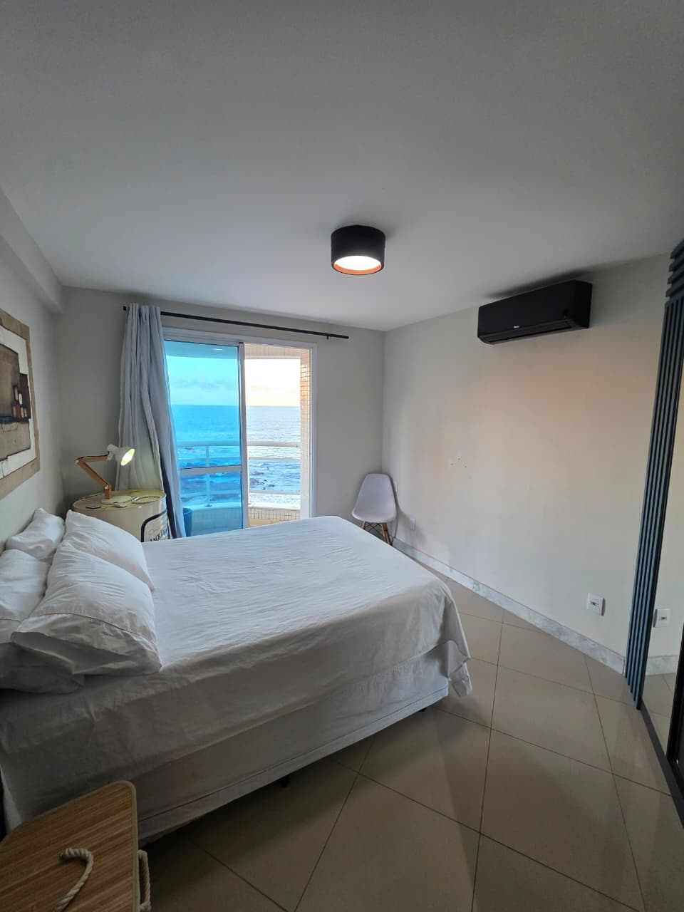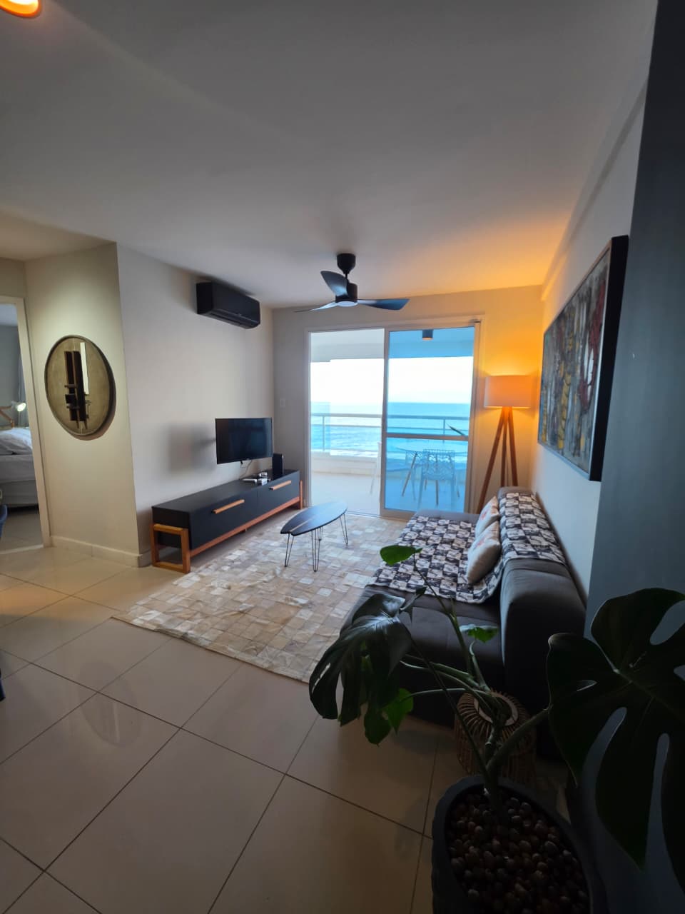 Quarto e Sala, 51m², frente mar, varandas na sala e no quarto, PORTEIRA FECHADA, decorado, cozinha americana, área de serviço, aparelhos de ar condicionado, fechamento em Reiki, 1 vaga de garagem.