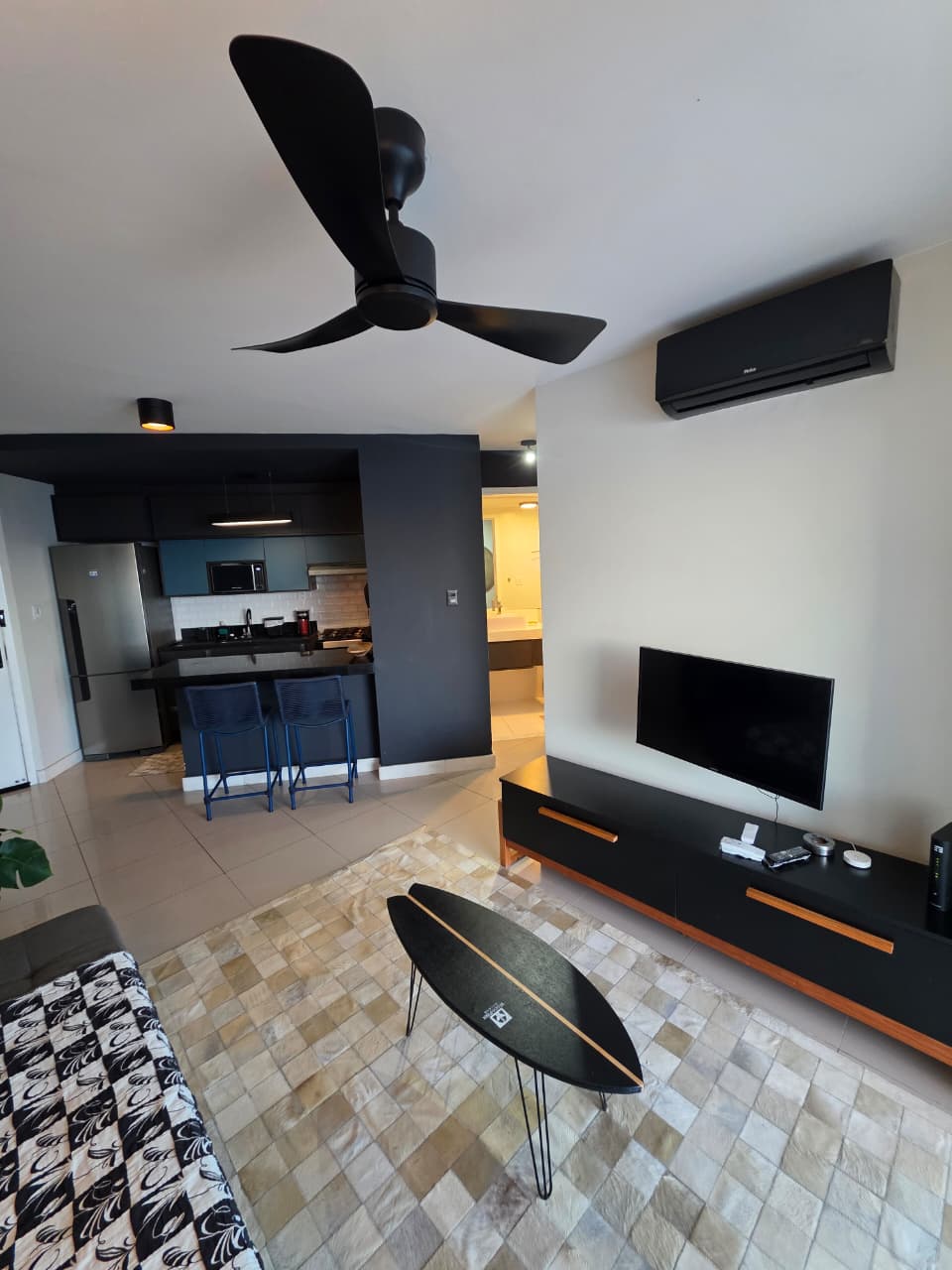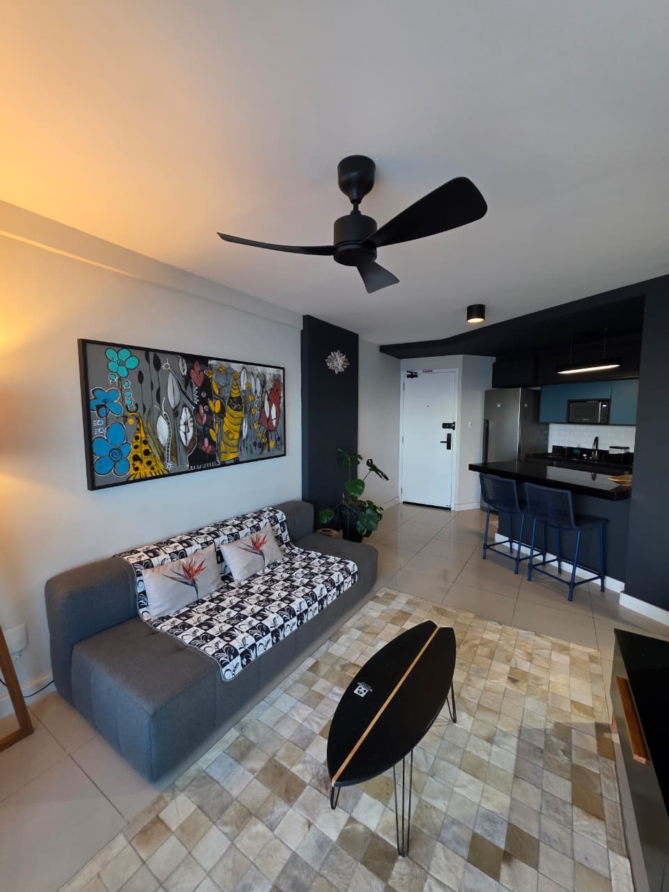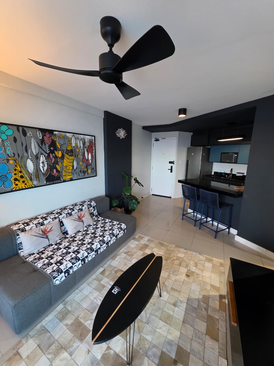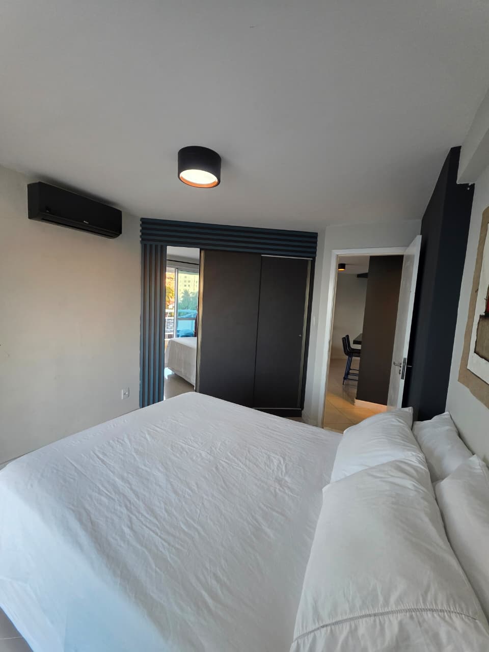 Quarto e Sala, 51m², frente mar, varandas na sala e no quarto, PORTEIRA FECHADA, decorado, cozinha americana, área de serviço, aparelhos de ar condicionado, fechamento em Reiki, 1 vaga de garagem.