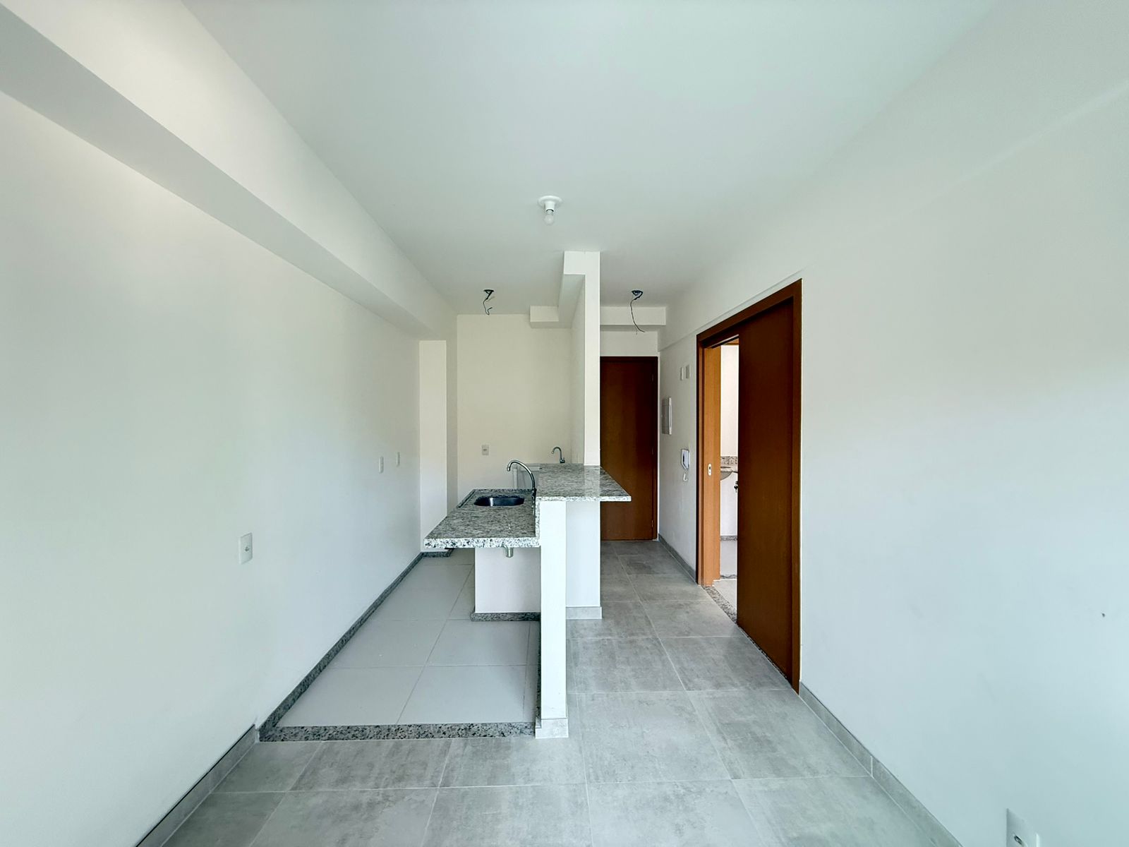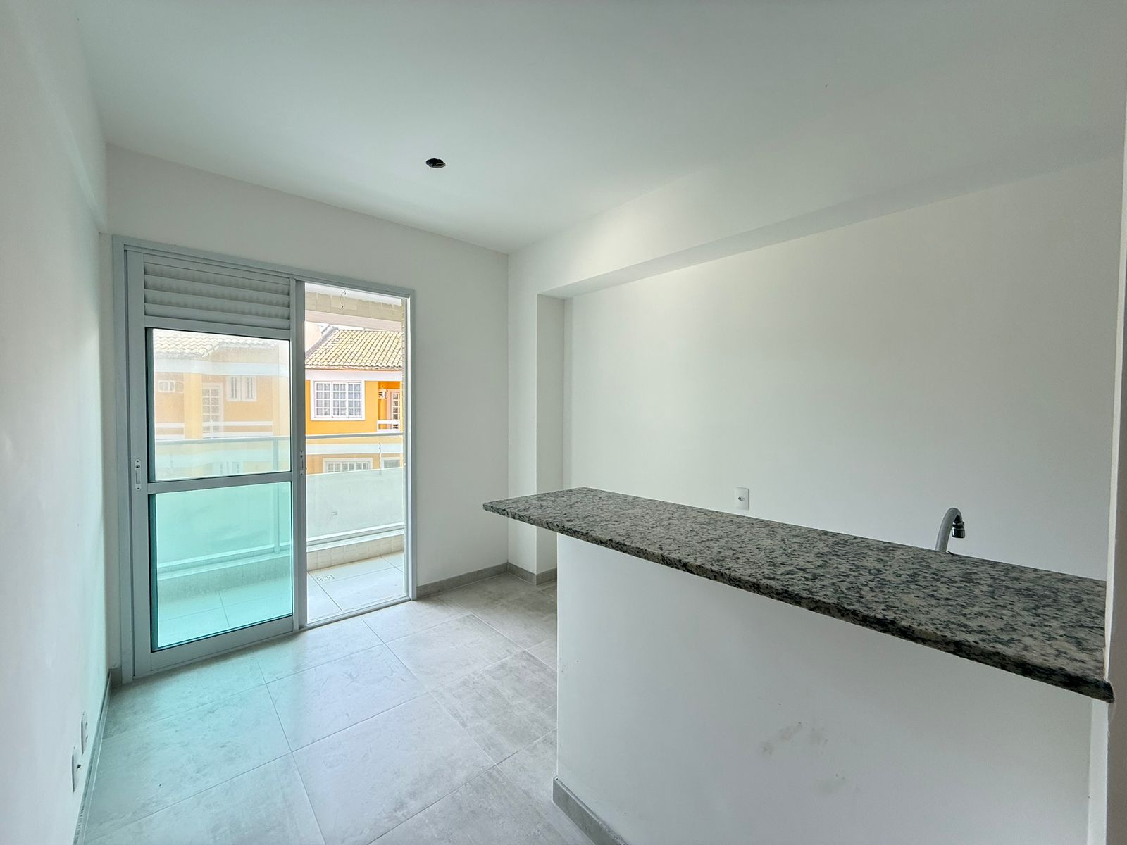Sala, cozinha com área de serviço, suíte, sanitário, varanda e área técnica