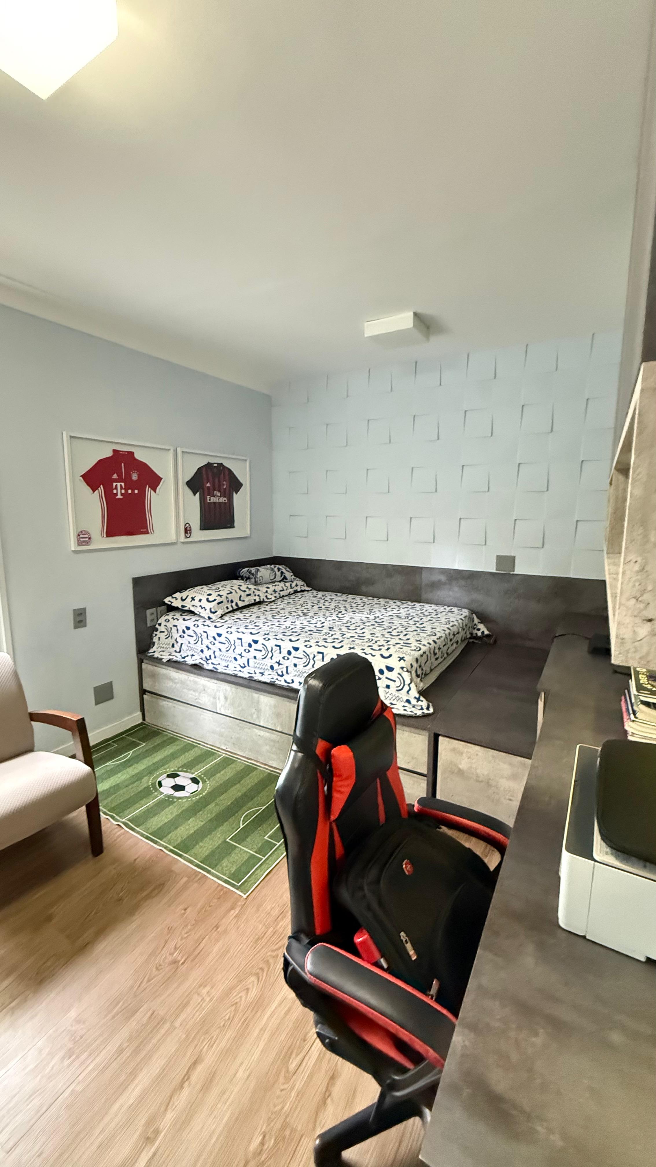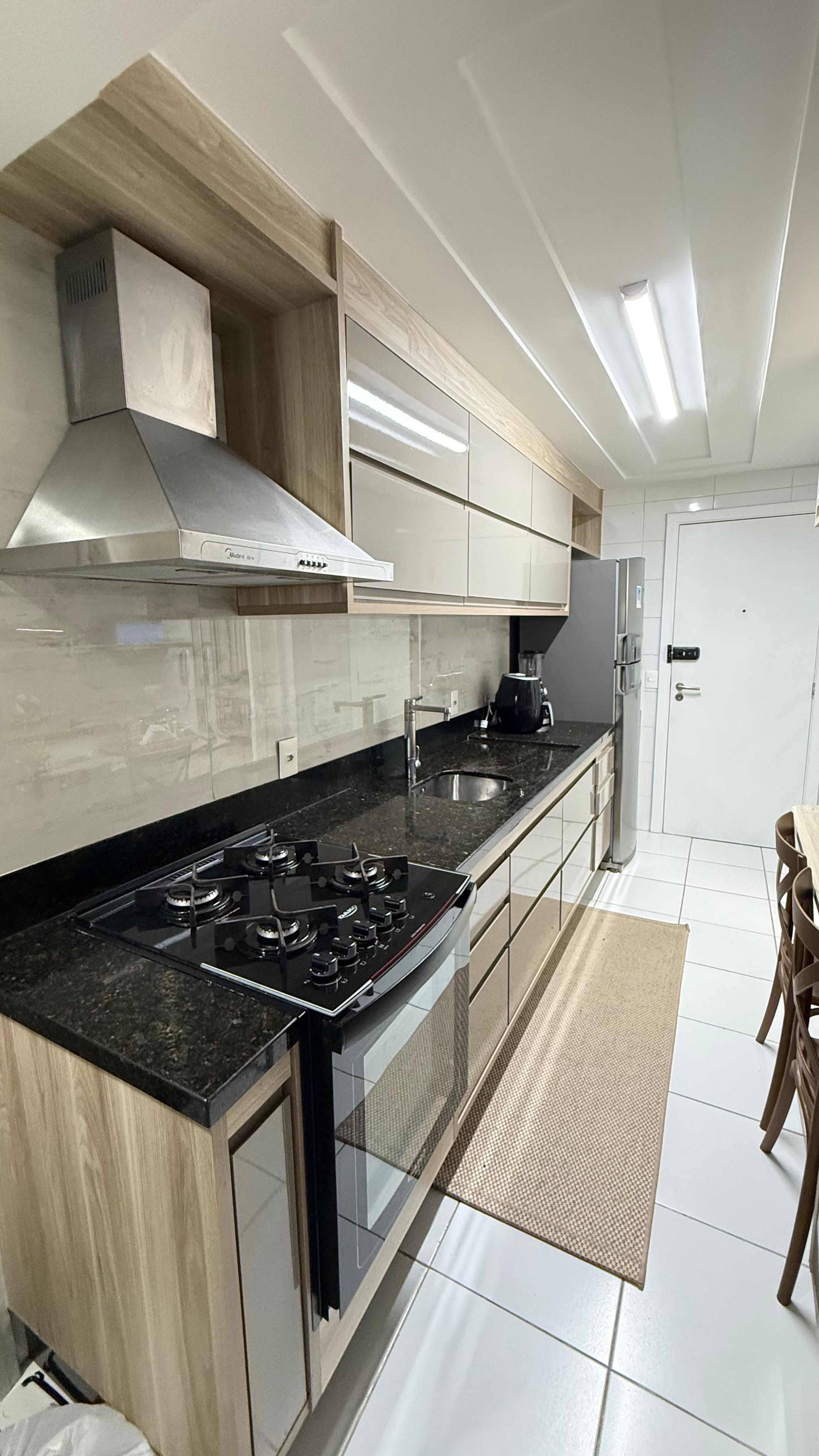 São 3/4 sendo uma suite finamente decorado, armários planejados em todos os ambientes, nascente, varanda gourmet, banheiro social e de serviço, área de serviço, 2 vagas de garagem, 103m2, porteria 24h