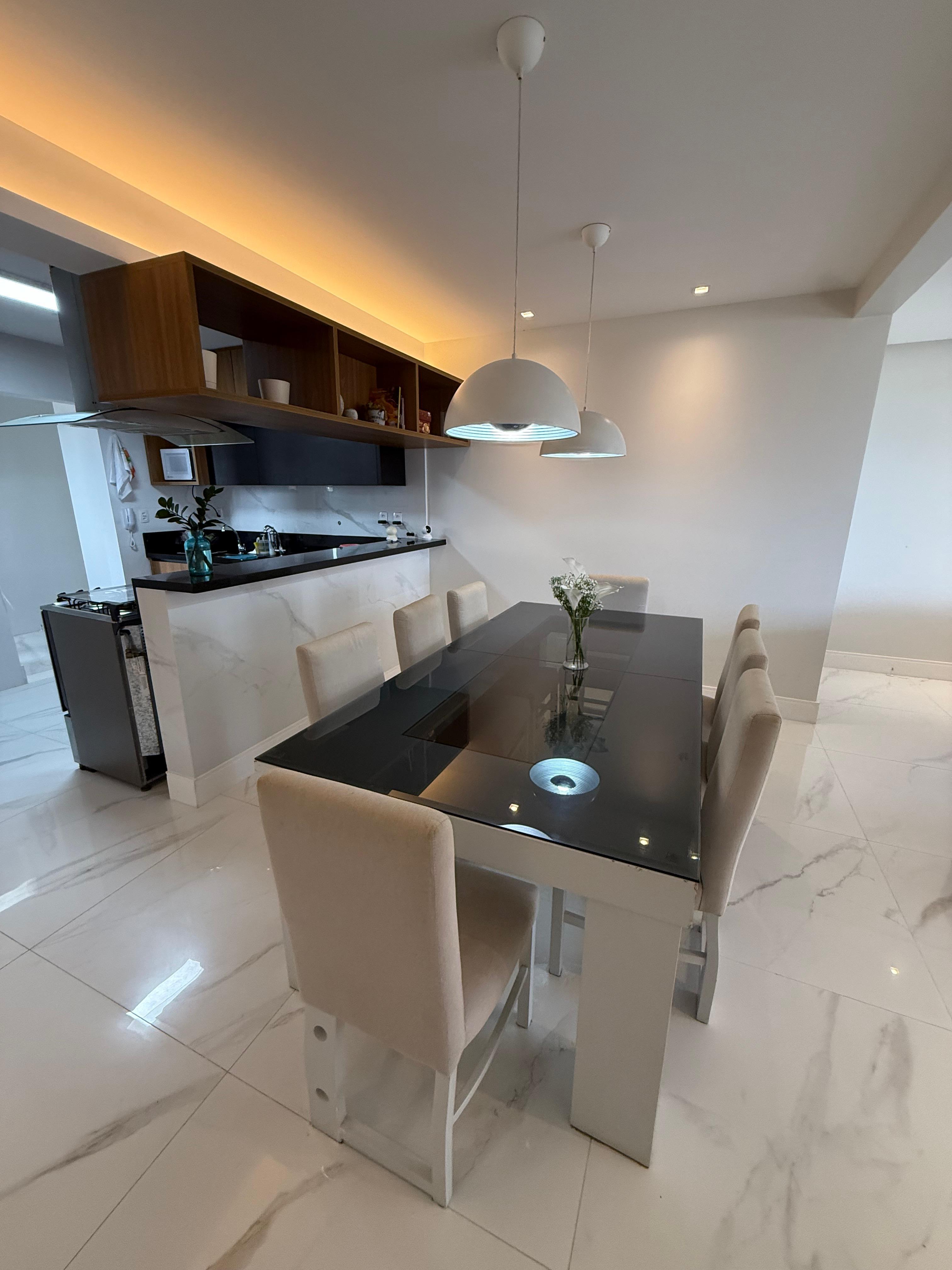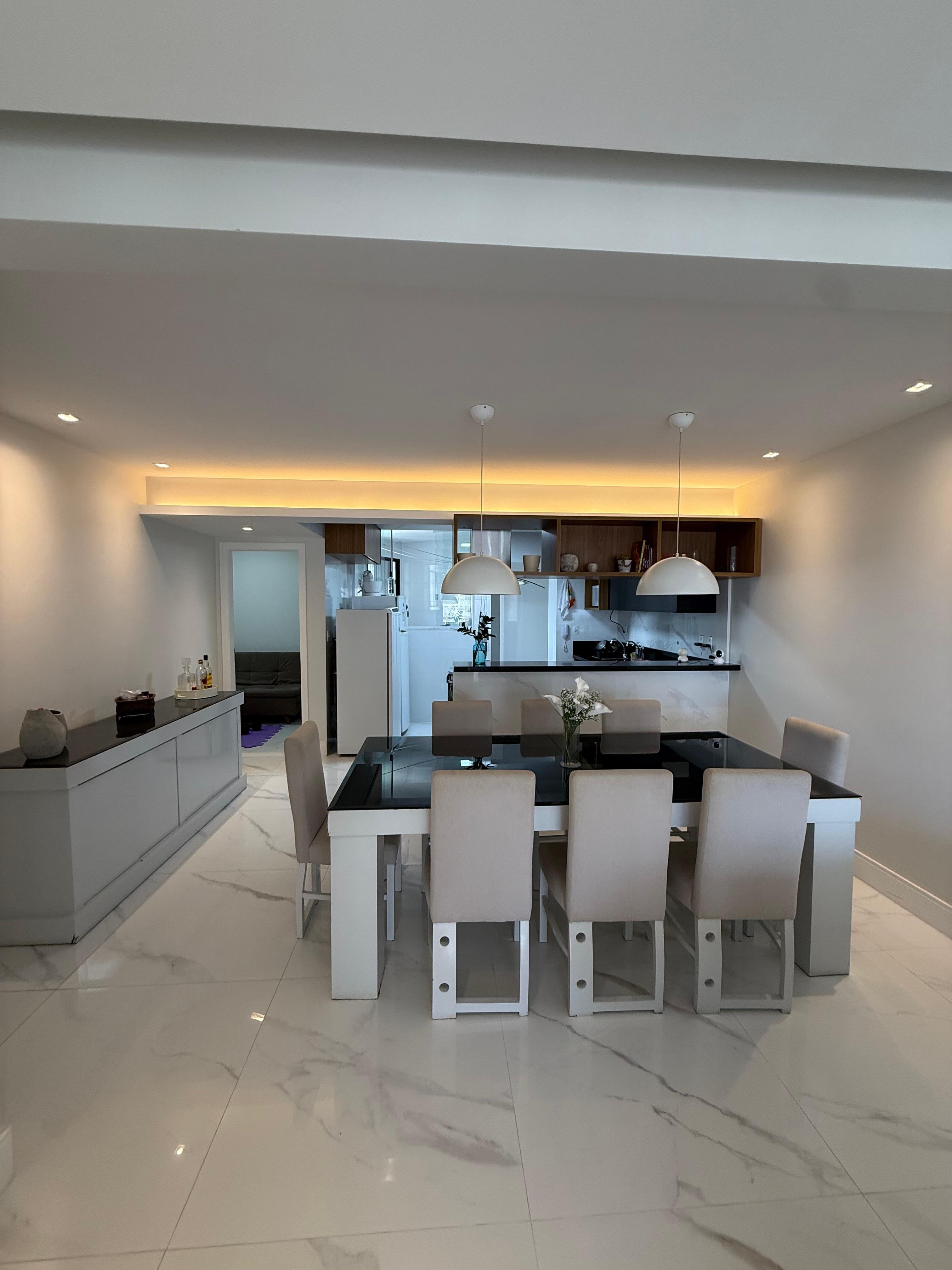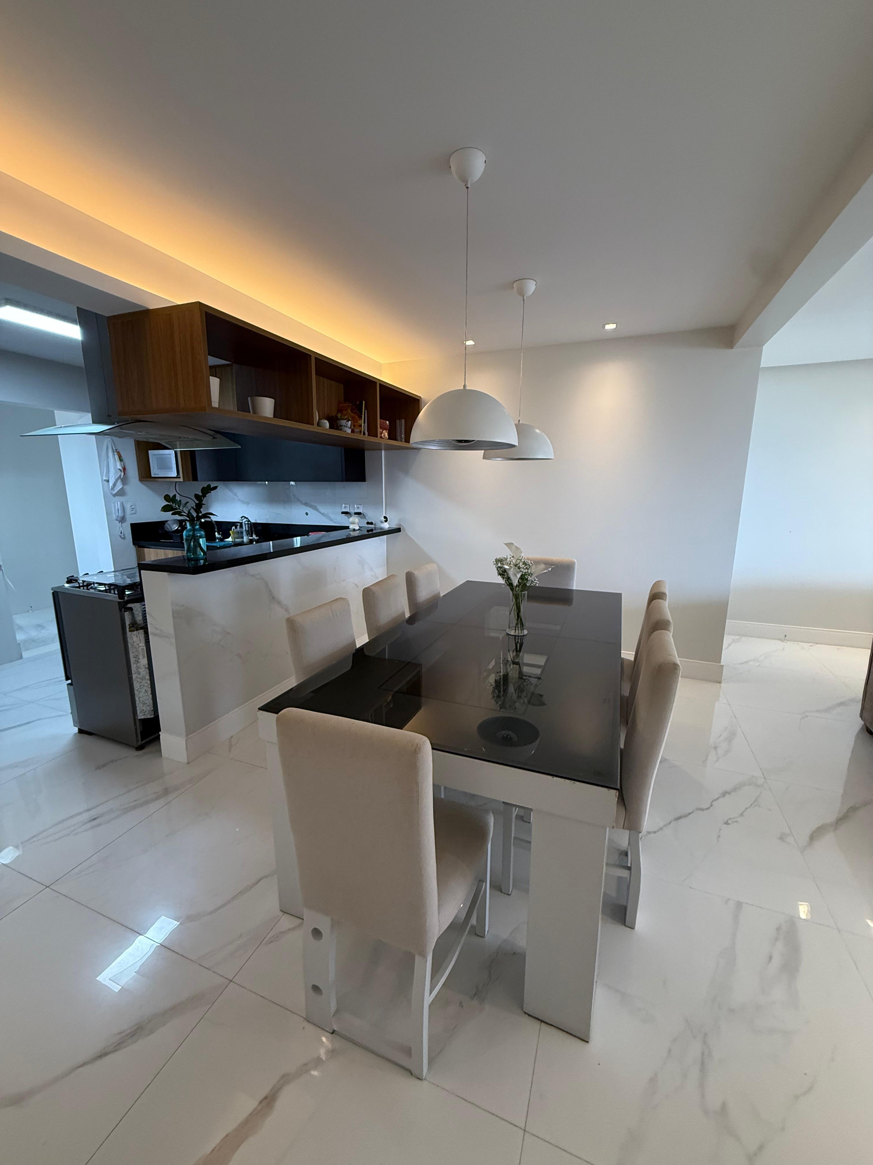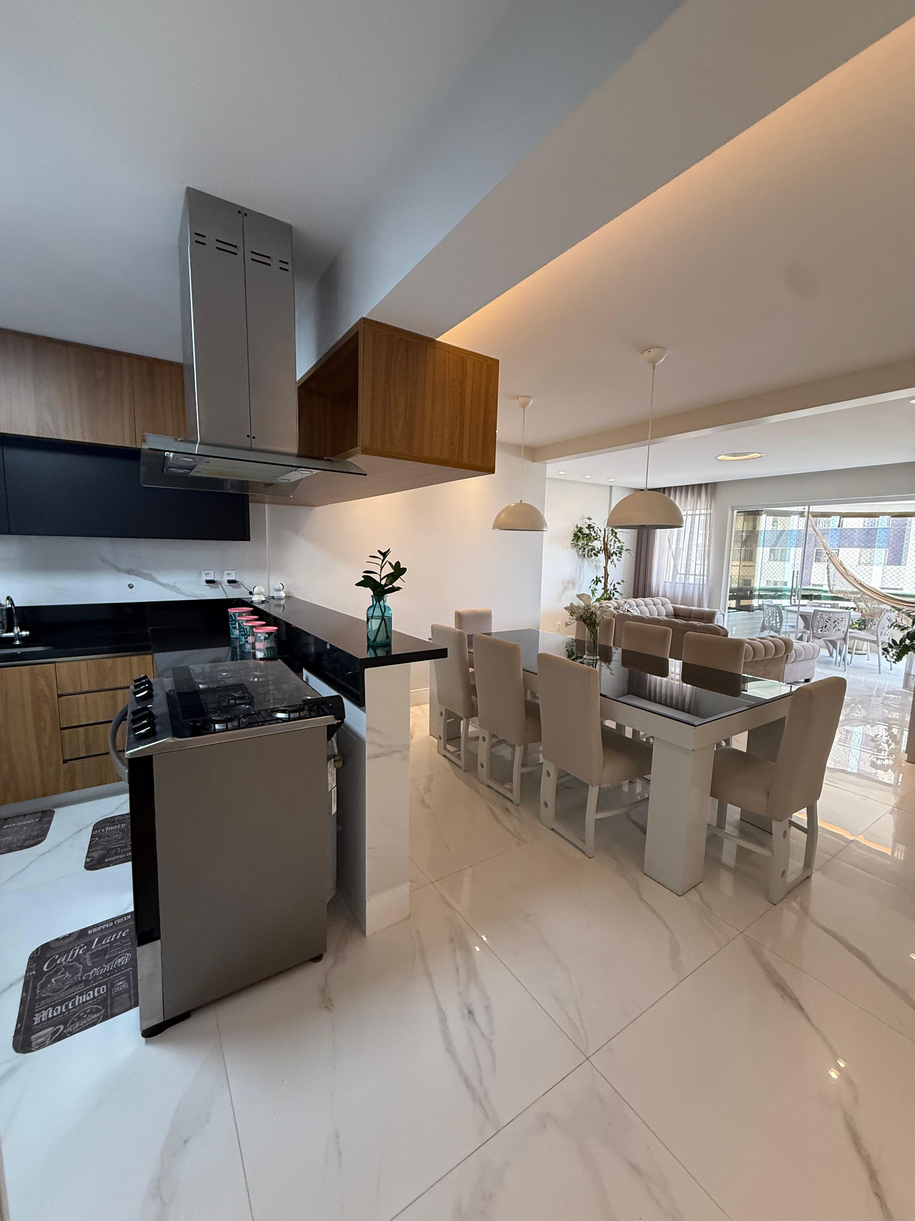 4 quartos , 2 suítes , vista mar ,nascente, dependência completa de empregada , quartos amplos , 133 m2, 2 vagas de garagem soltas , armários planejadas , projeto arquitetônico, decorado ,climatizado .