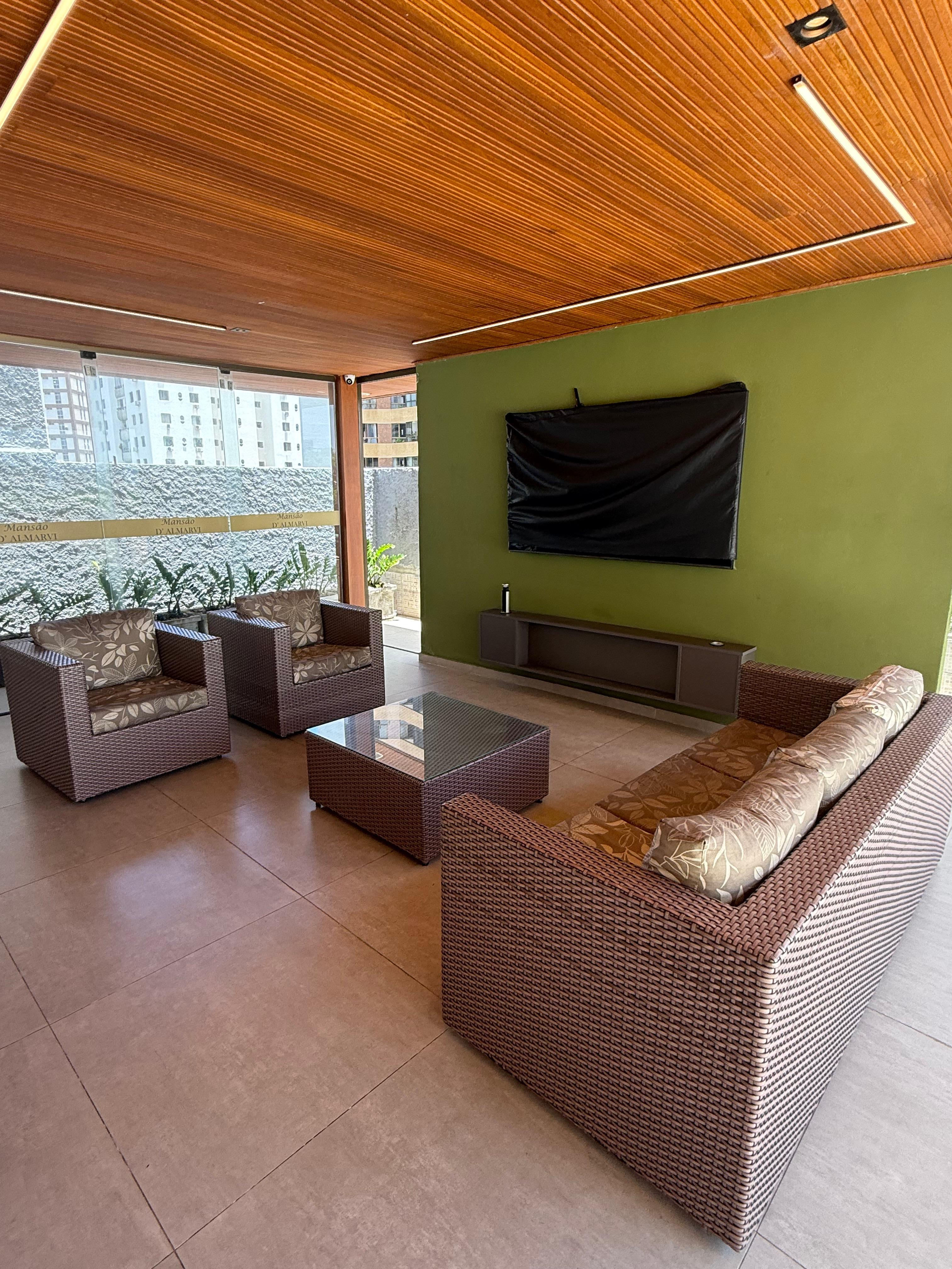 o prédio conta com infraestrutura de lazer como : salão de festas, academia, quadra , piscina , espaço gourmet com churrasqueira , salão de jogos , parque infantil , portaria 24 horas .