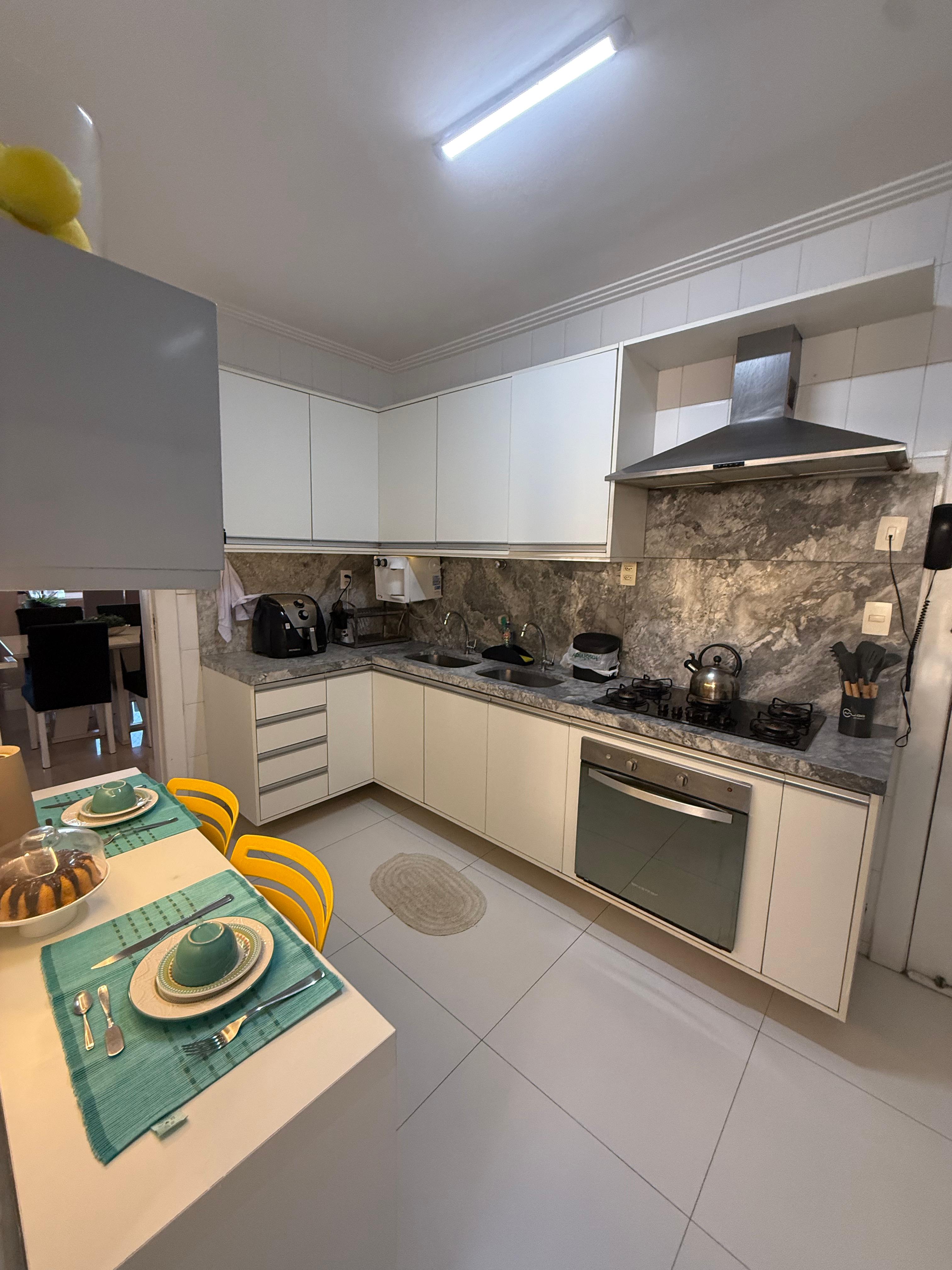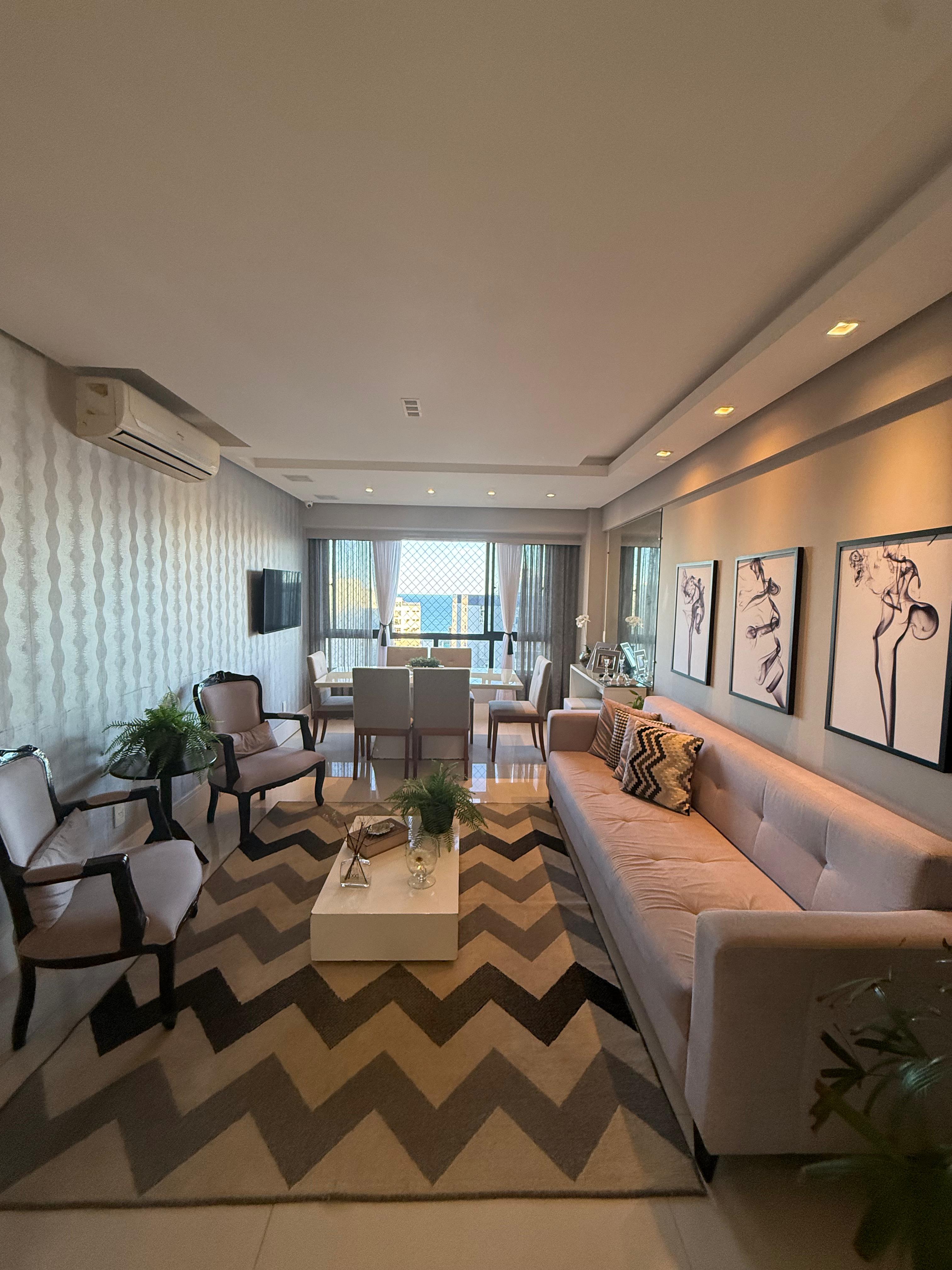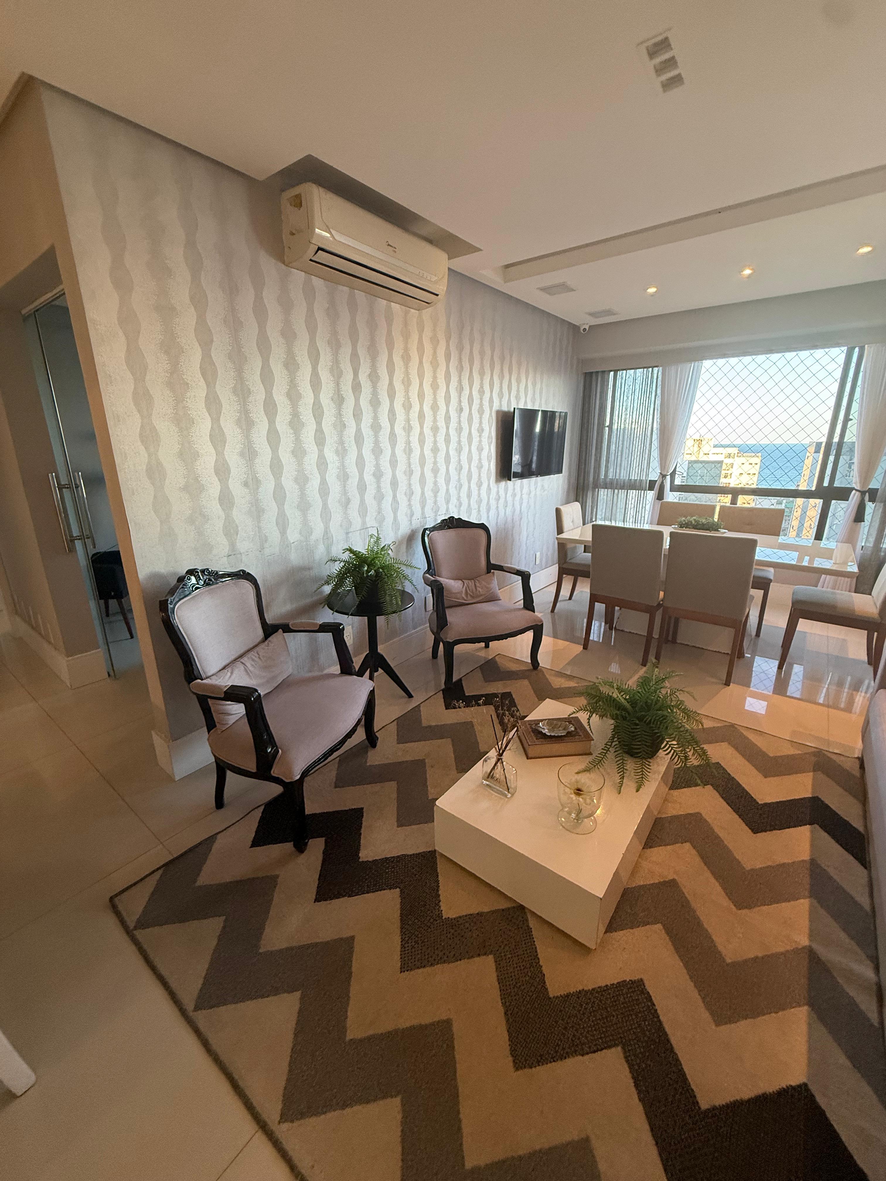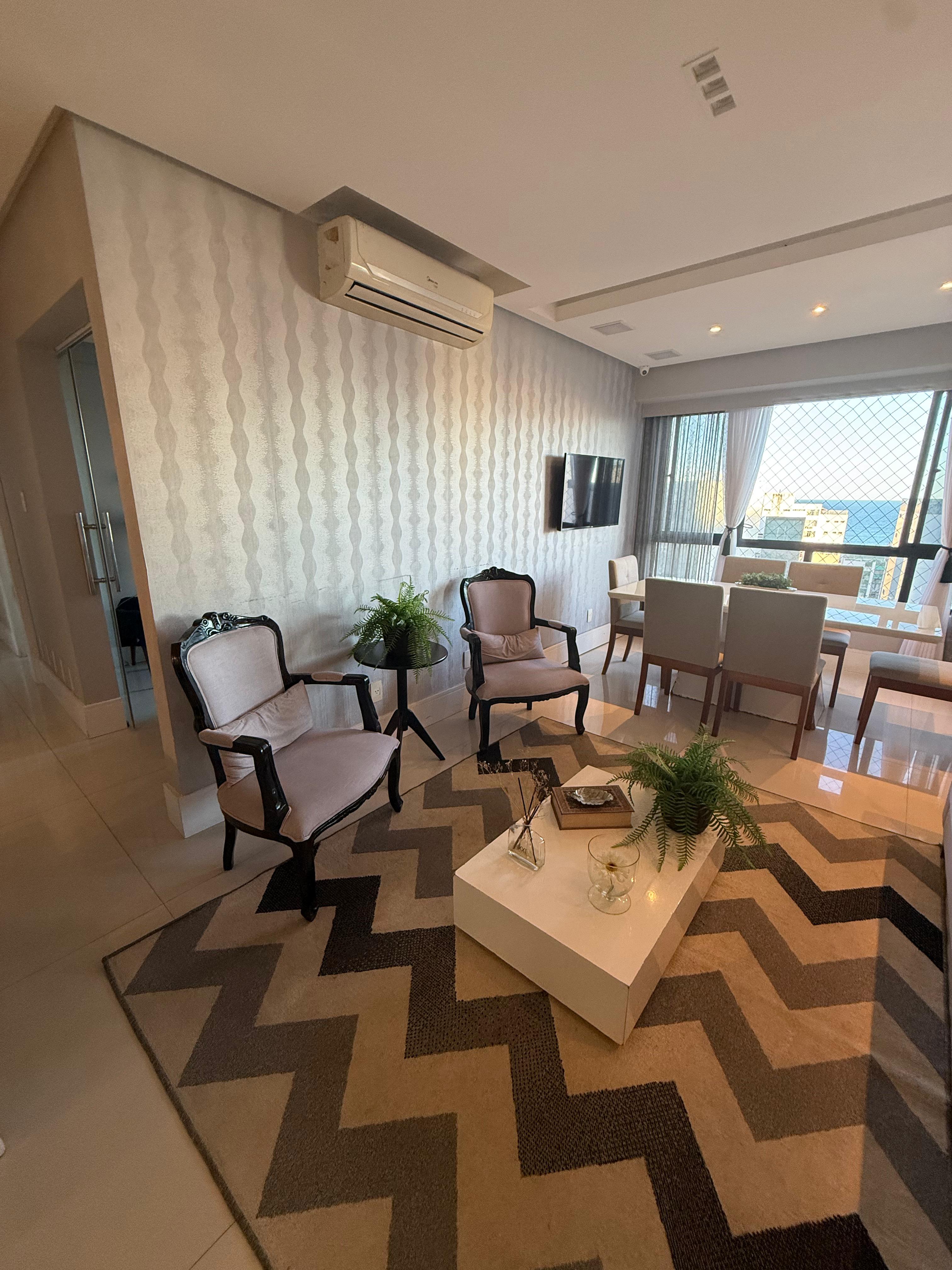 4 quartos , 3 suites , vista mar ,nascente, dependência completa de empregada , quartos amplos , andar alto , 120 m2, 2 vagas de garagem, armários planejadas , projeto arquitetônico, decorado ,climatizado .