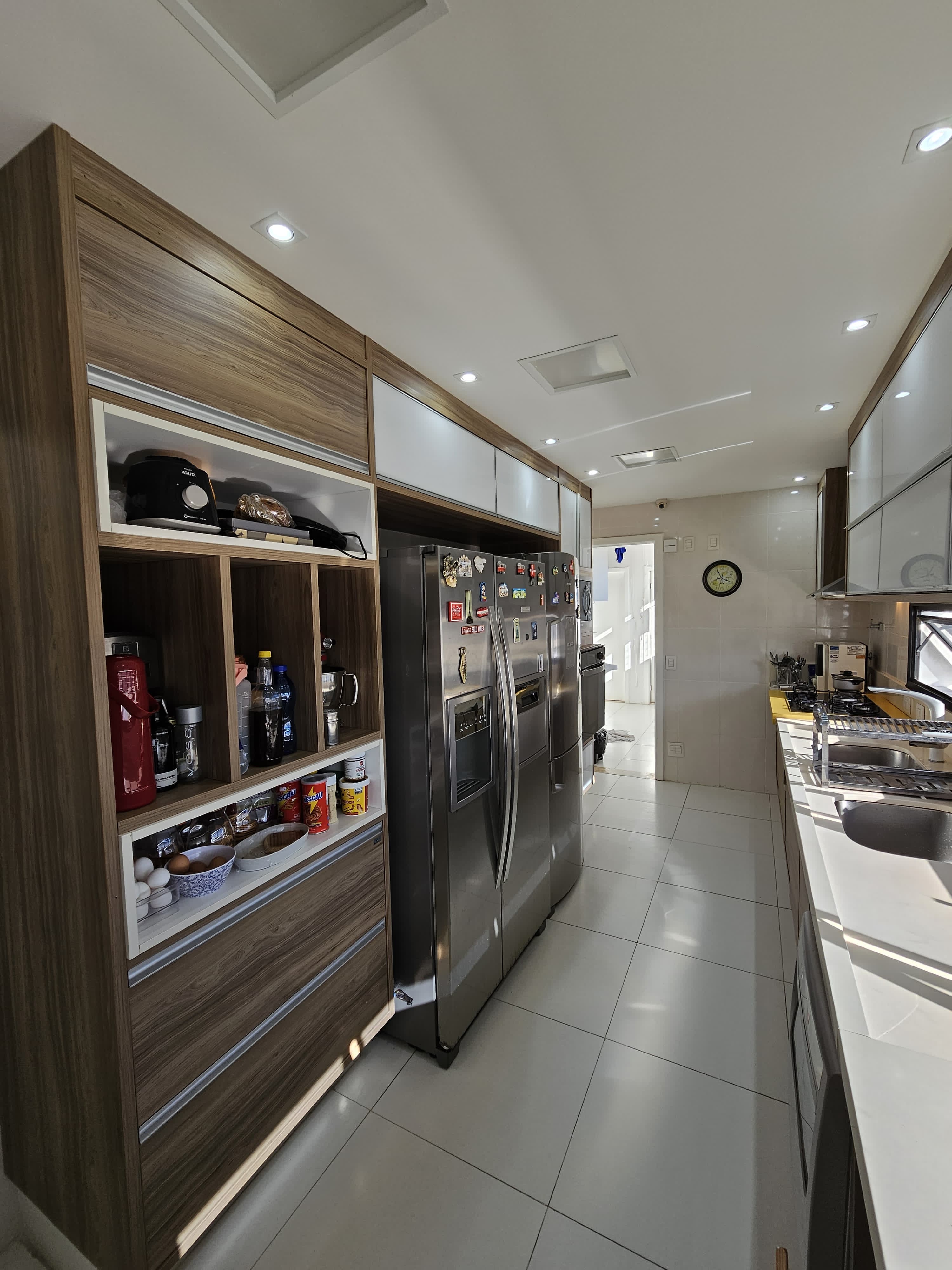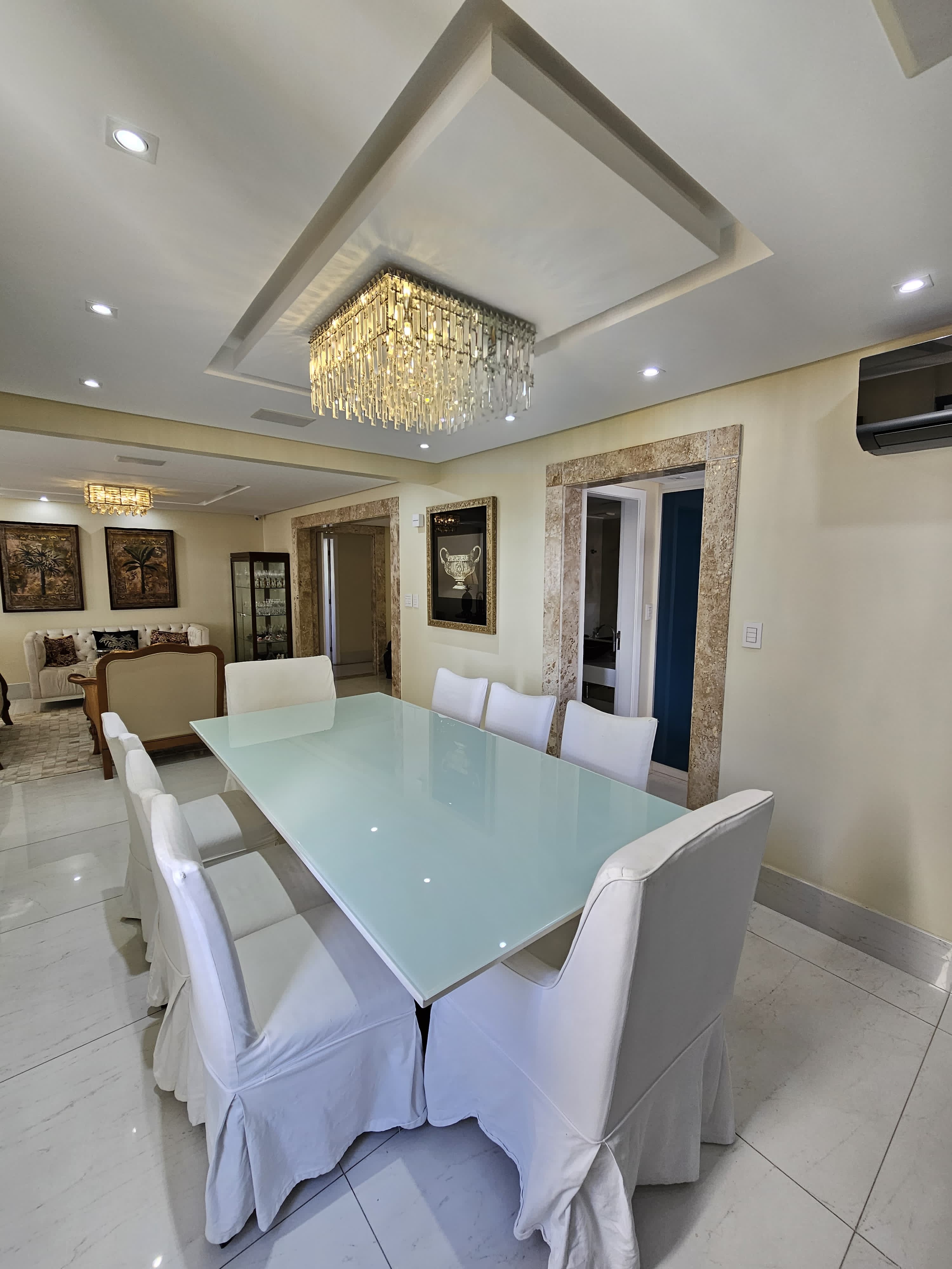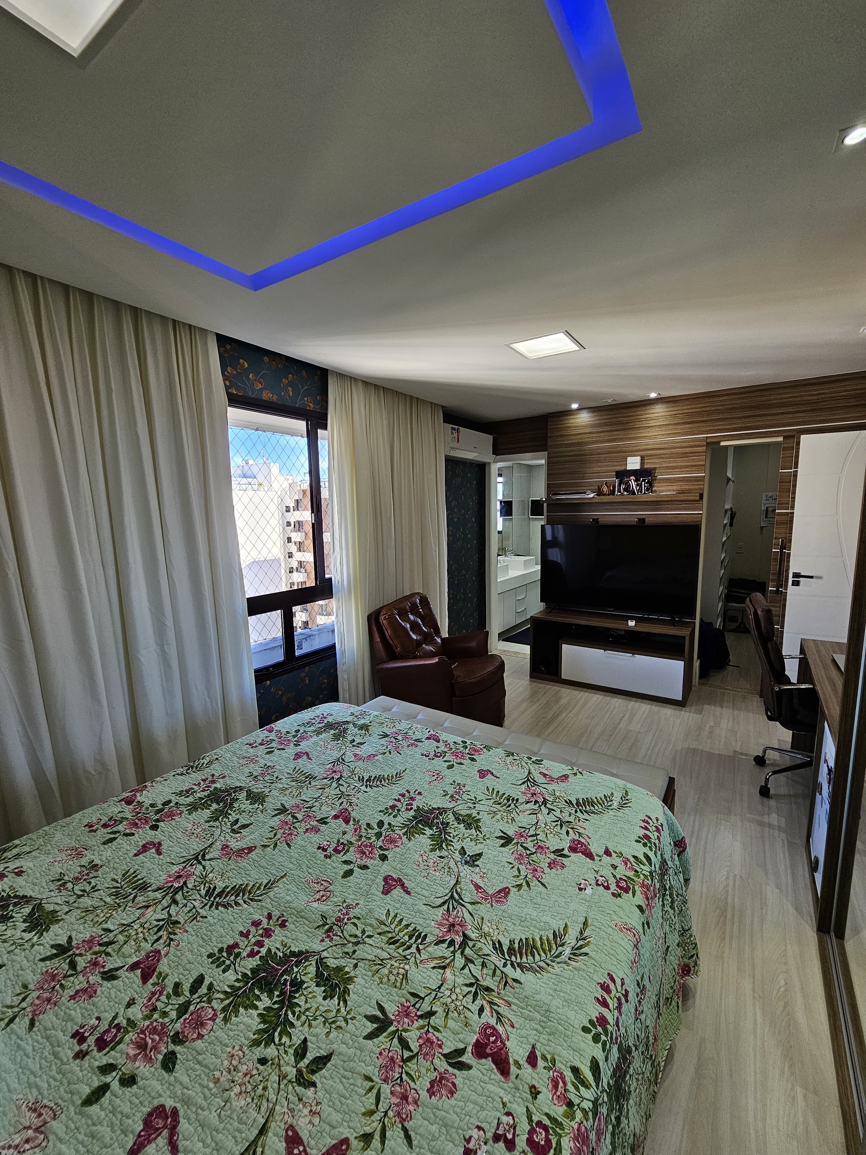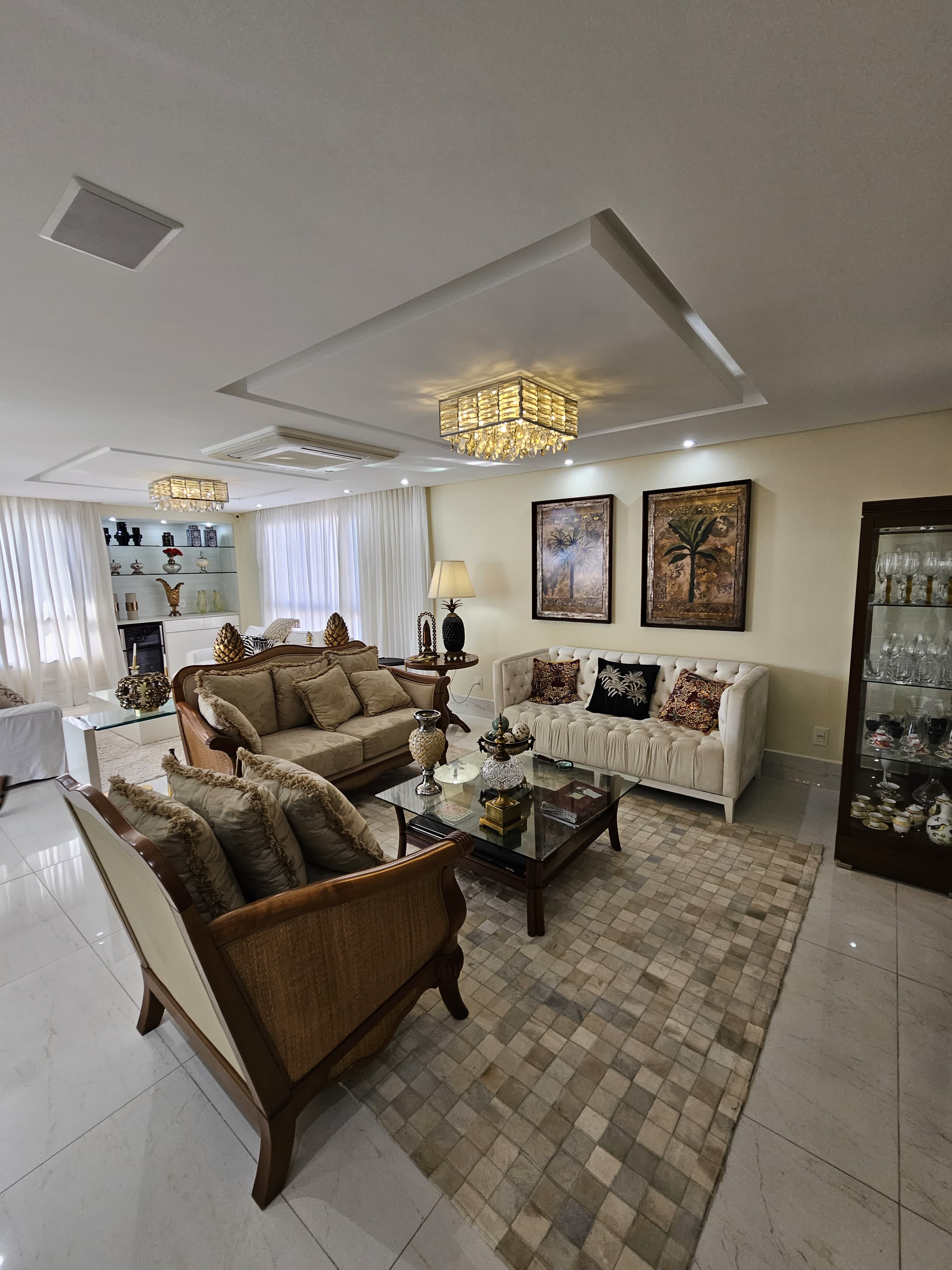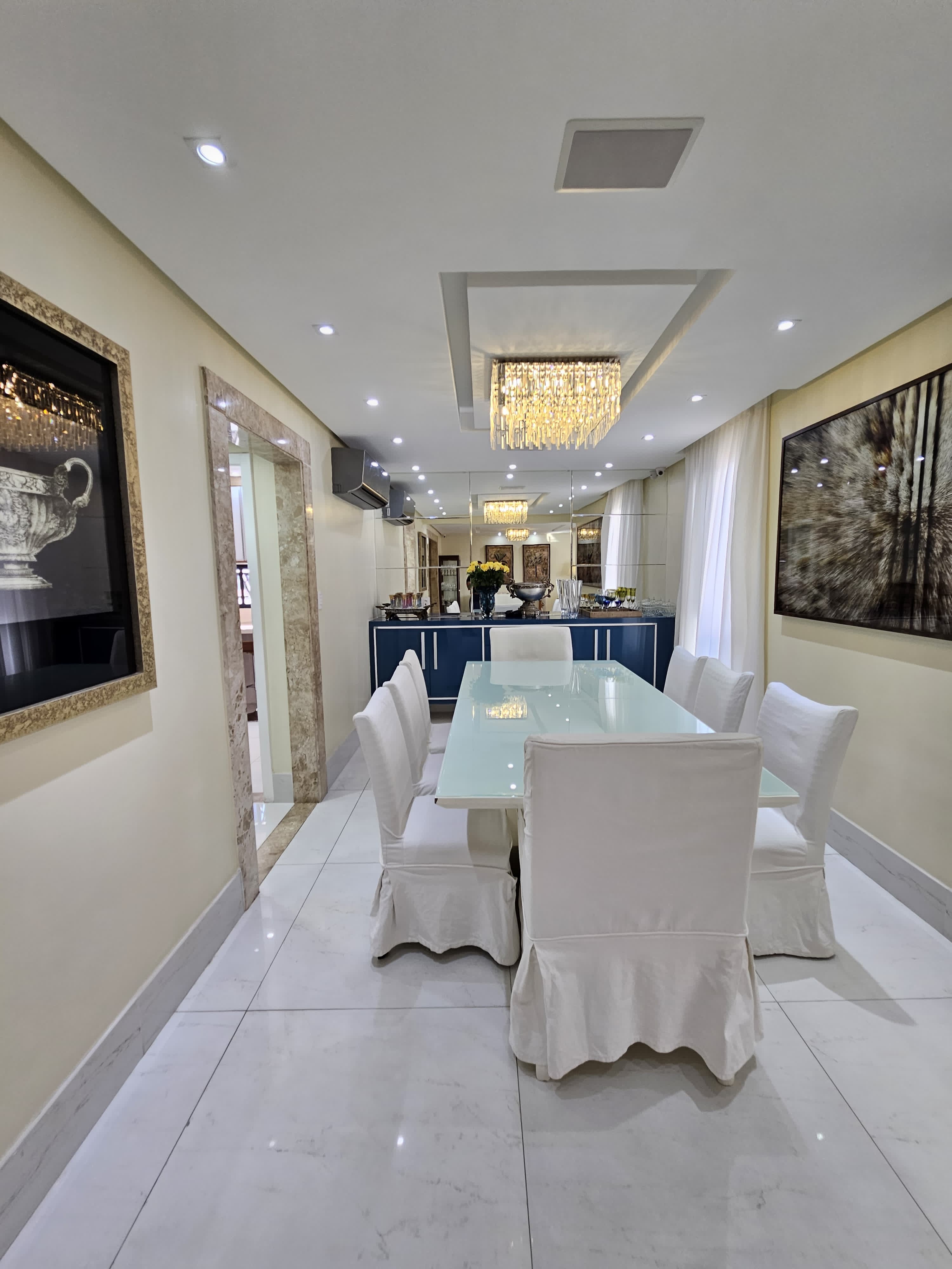 4 suítes, 225m², lavabo, dependência completa, decorado, despensa, bancadas em nanoglass, roupeiro, armários Idelle, sala de TV, todo climatizado, ventilado, andar alto, 1 apartamento por andar, 3 vagas de garagem soltas com armários, dependência completa.