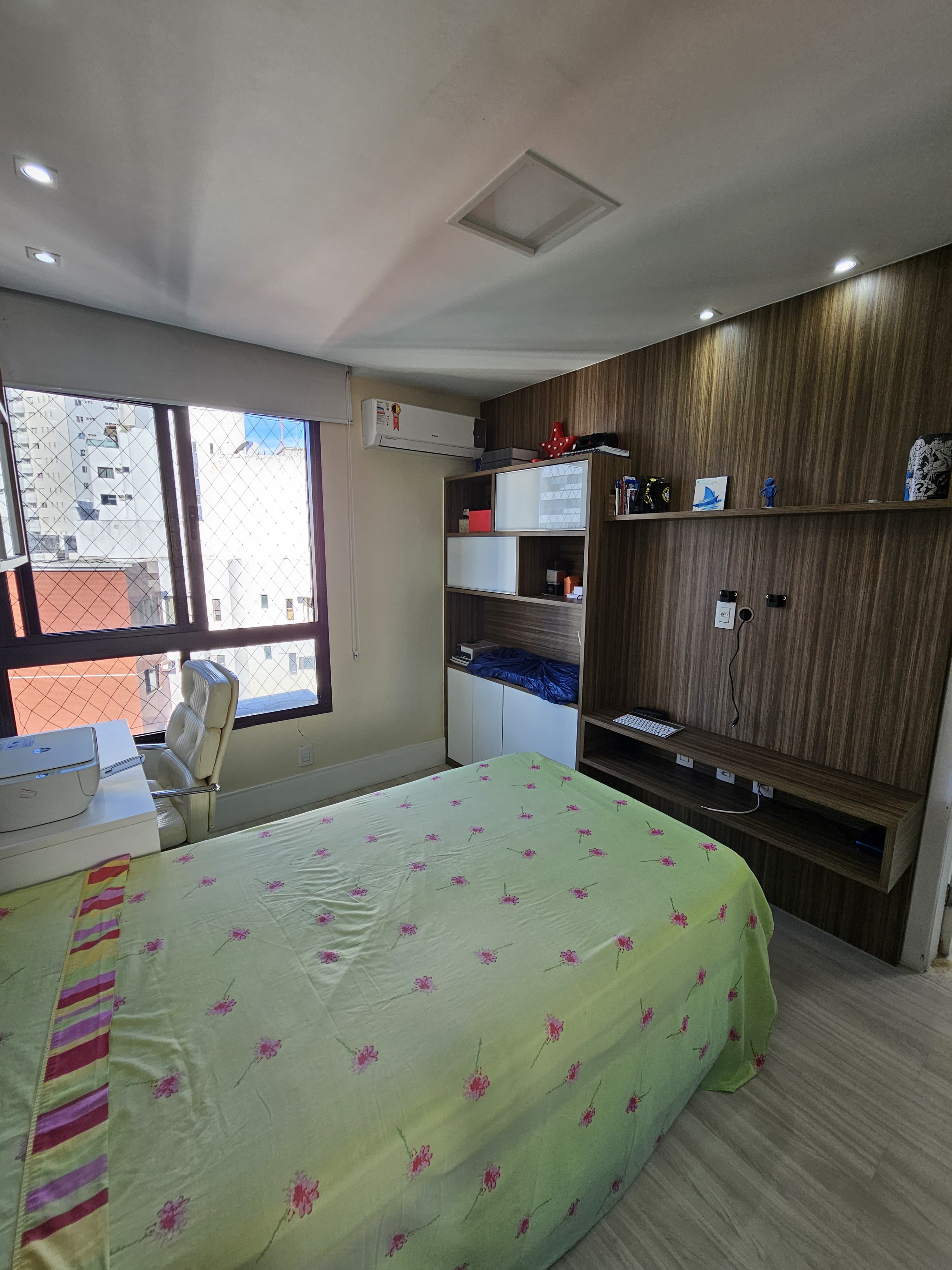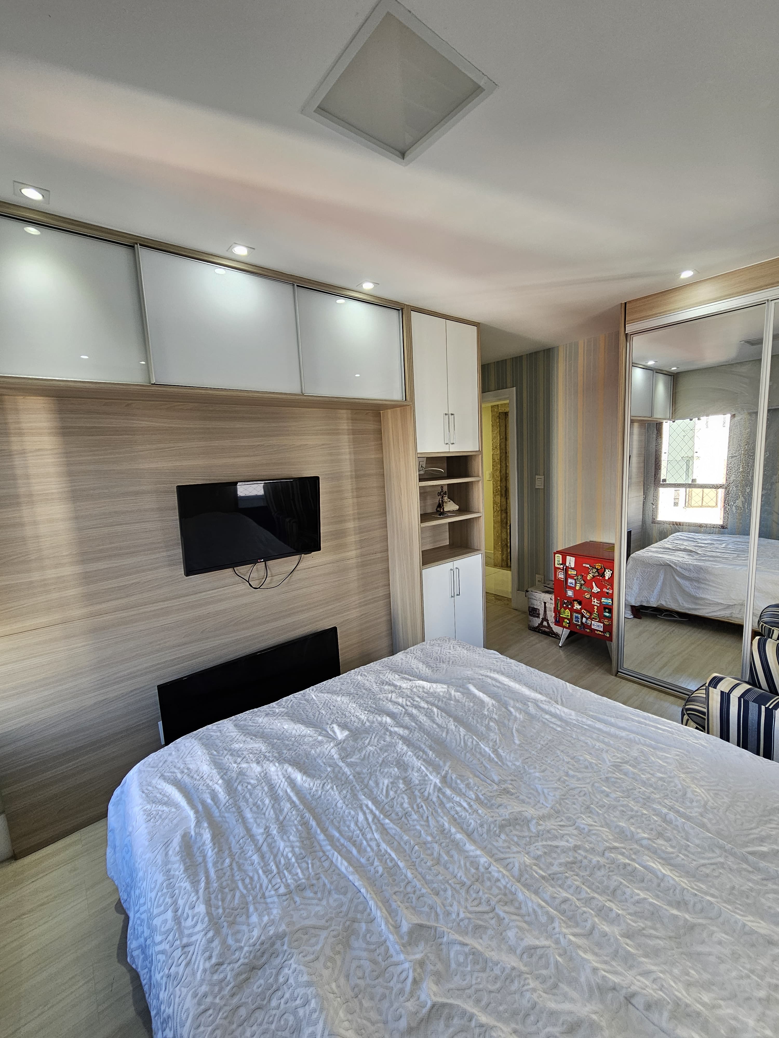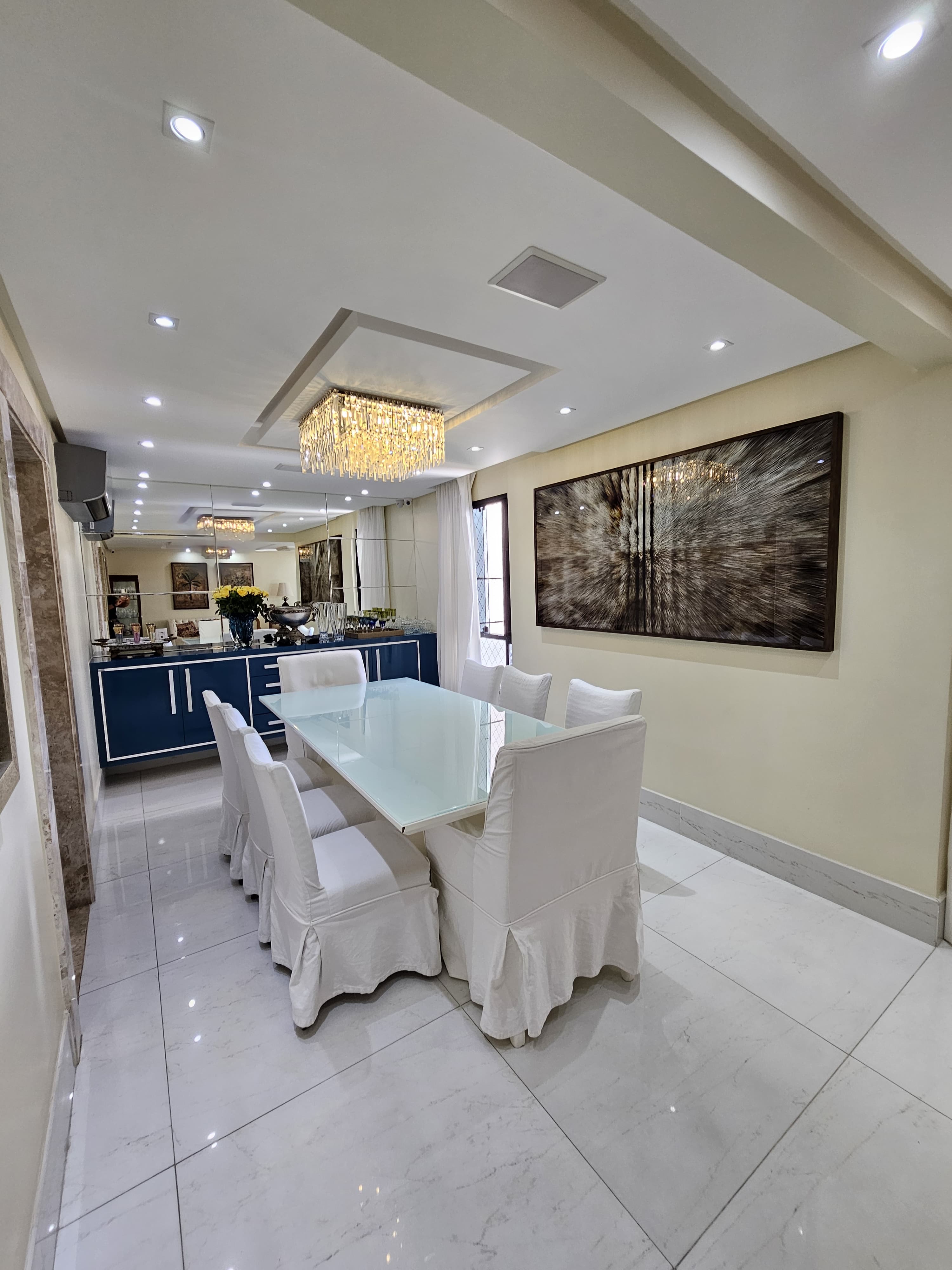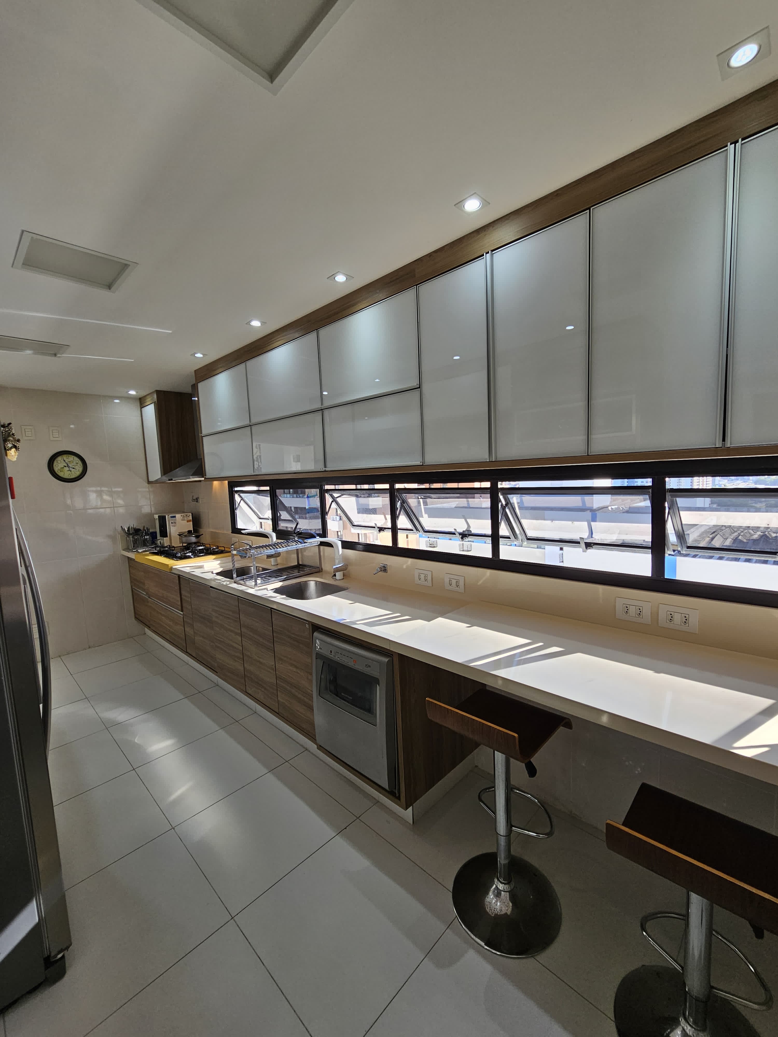 4 suítes, 225m², lavabo, dependência completa, decorado, despensa, bancadas em nanoglass, roupeiro, armários Idelle, sala de TV, todo climatizado, ventilado, andar alto, 1 apartamento por andar, 3 vagas de garagem soltas com armários, dependência completa.
