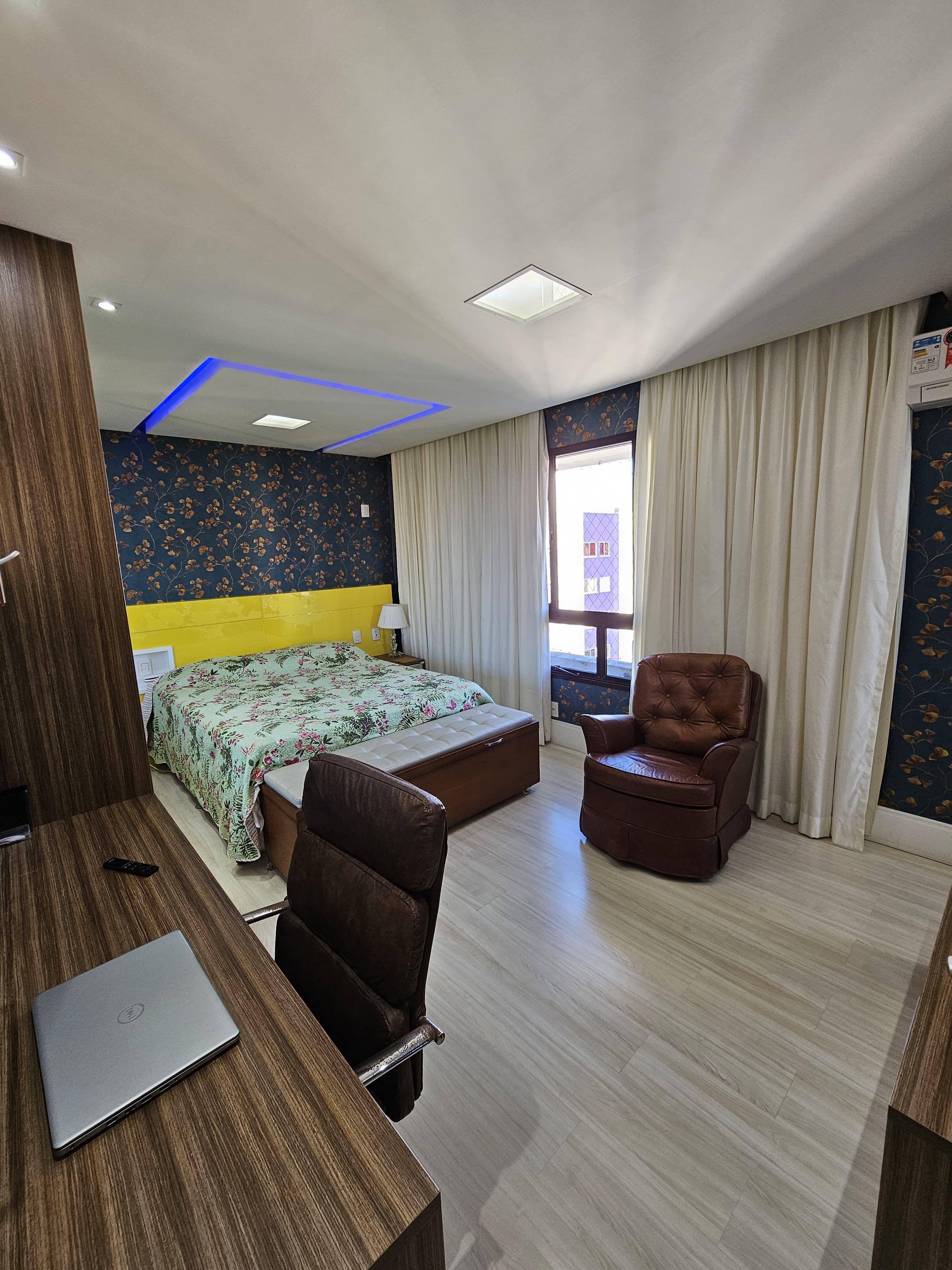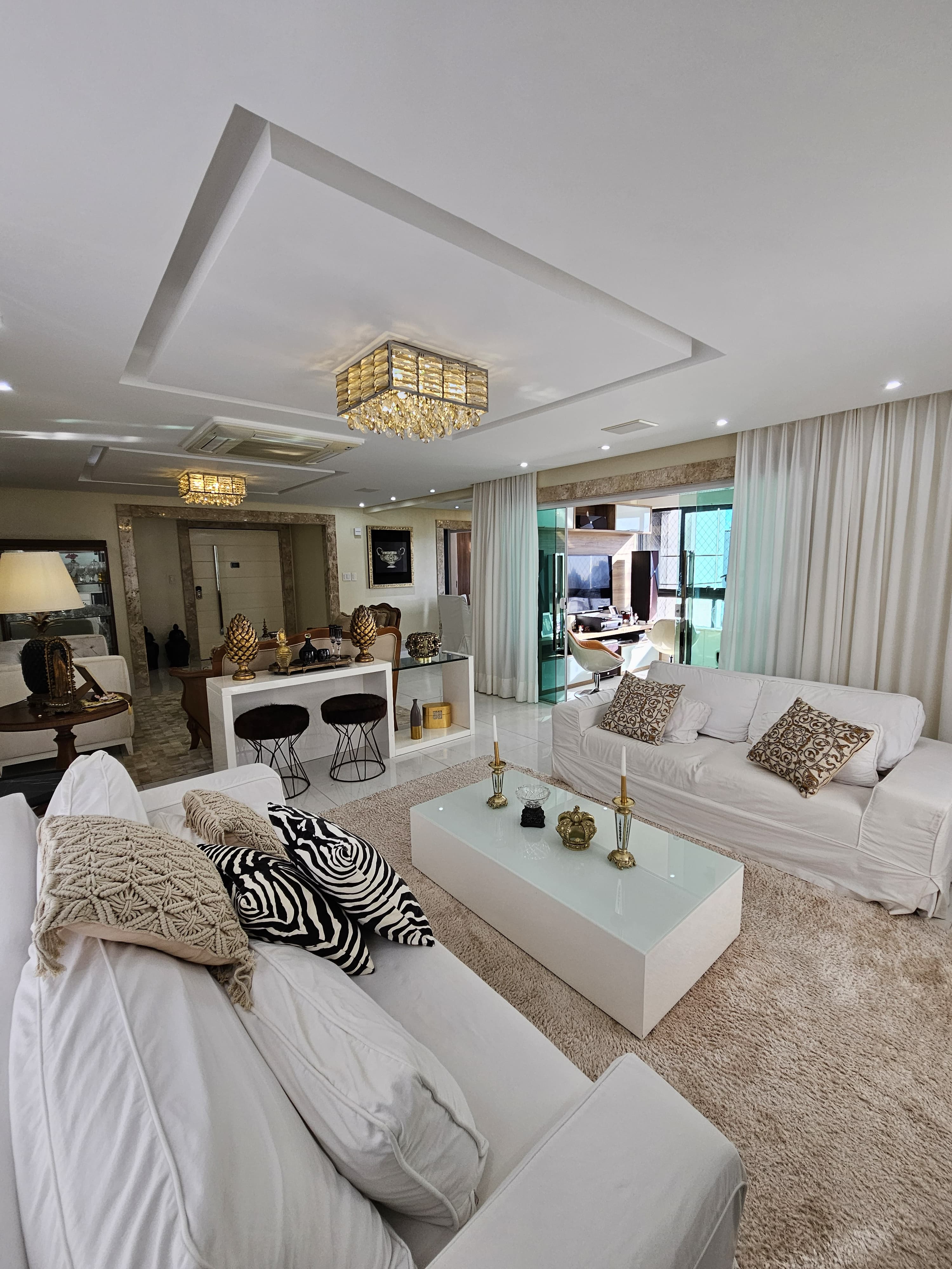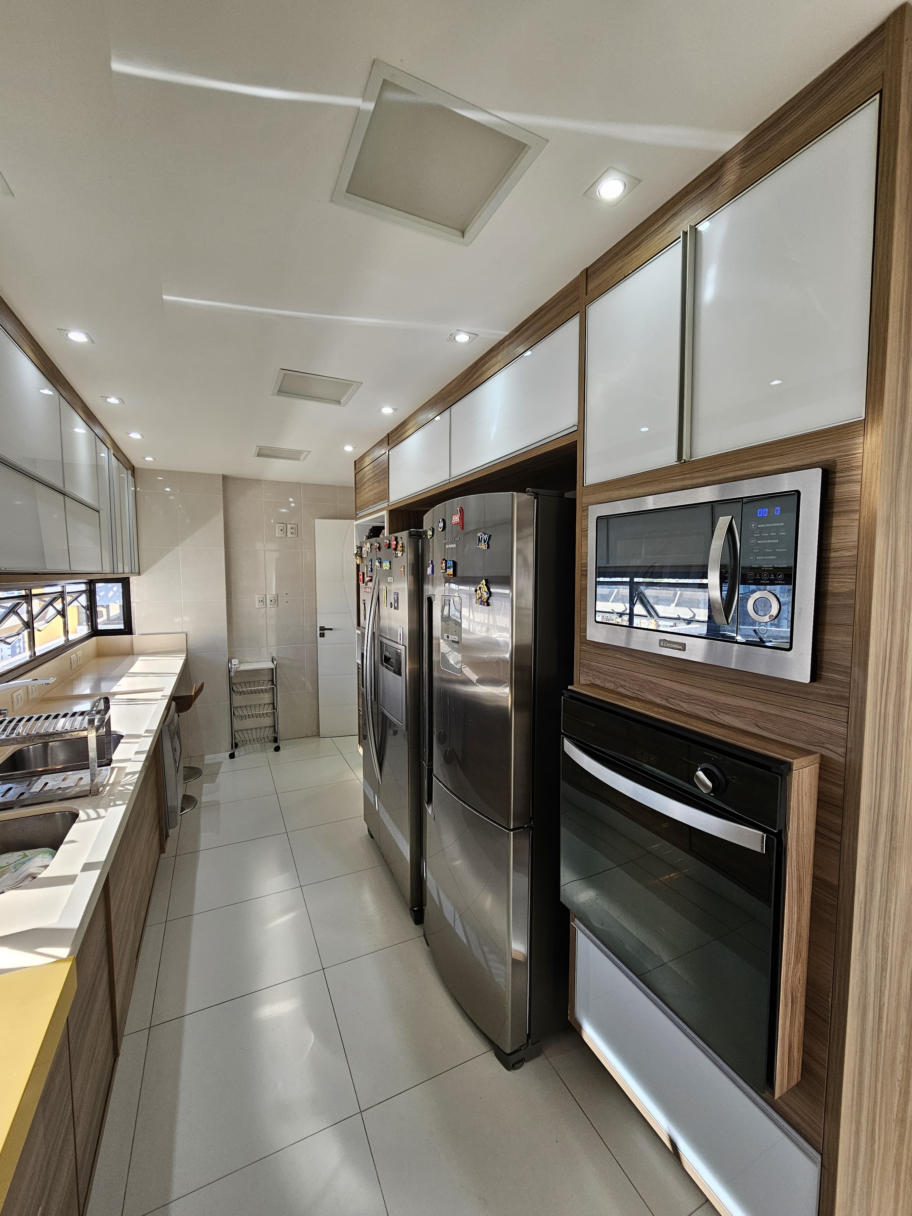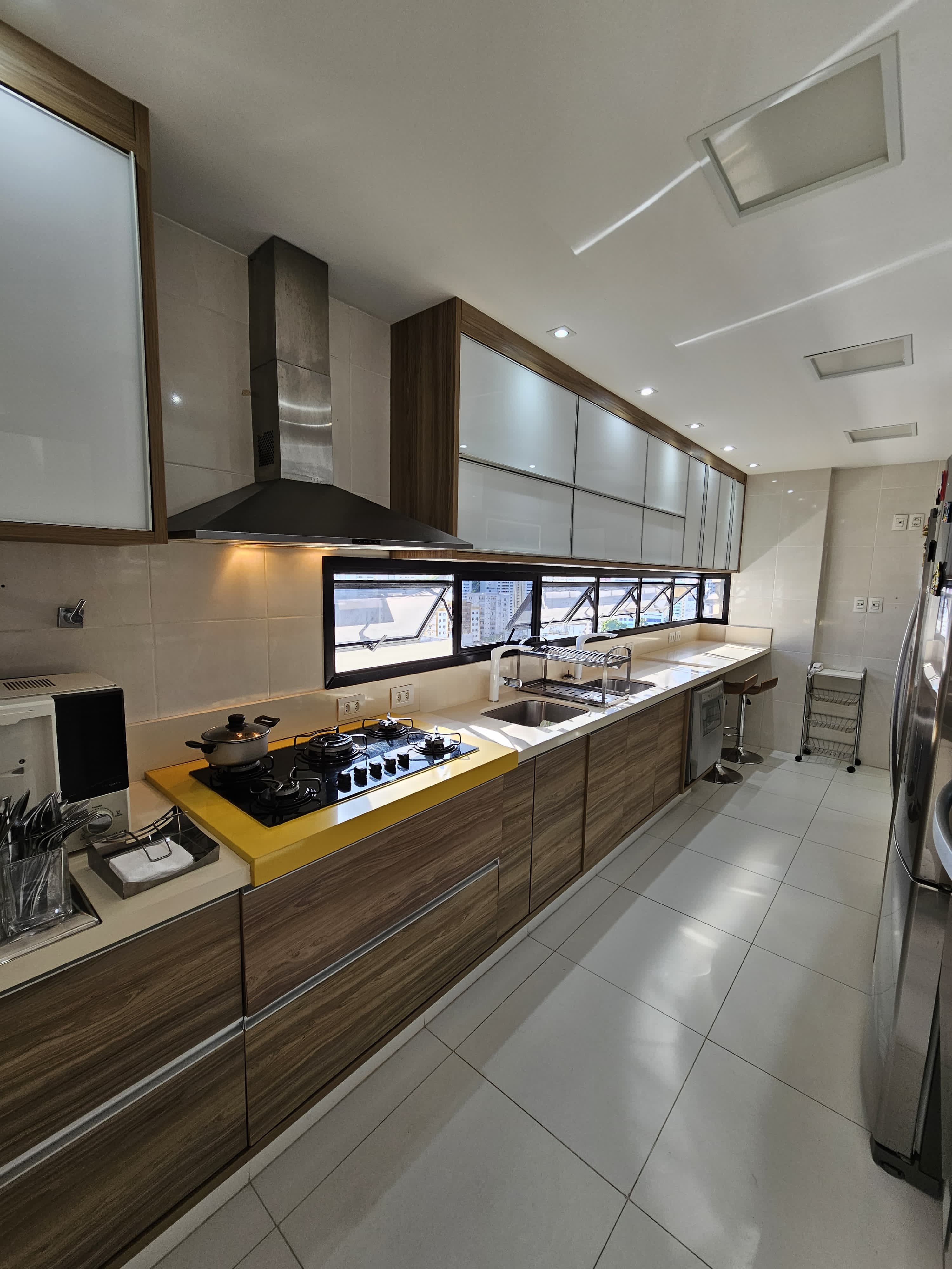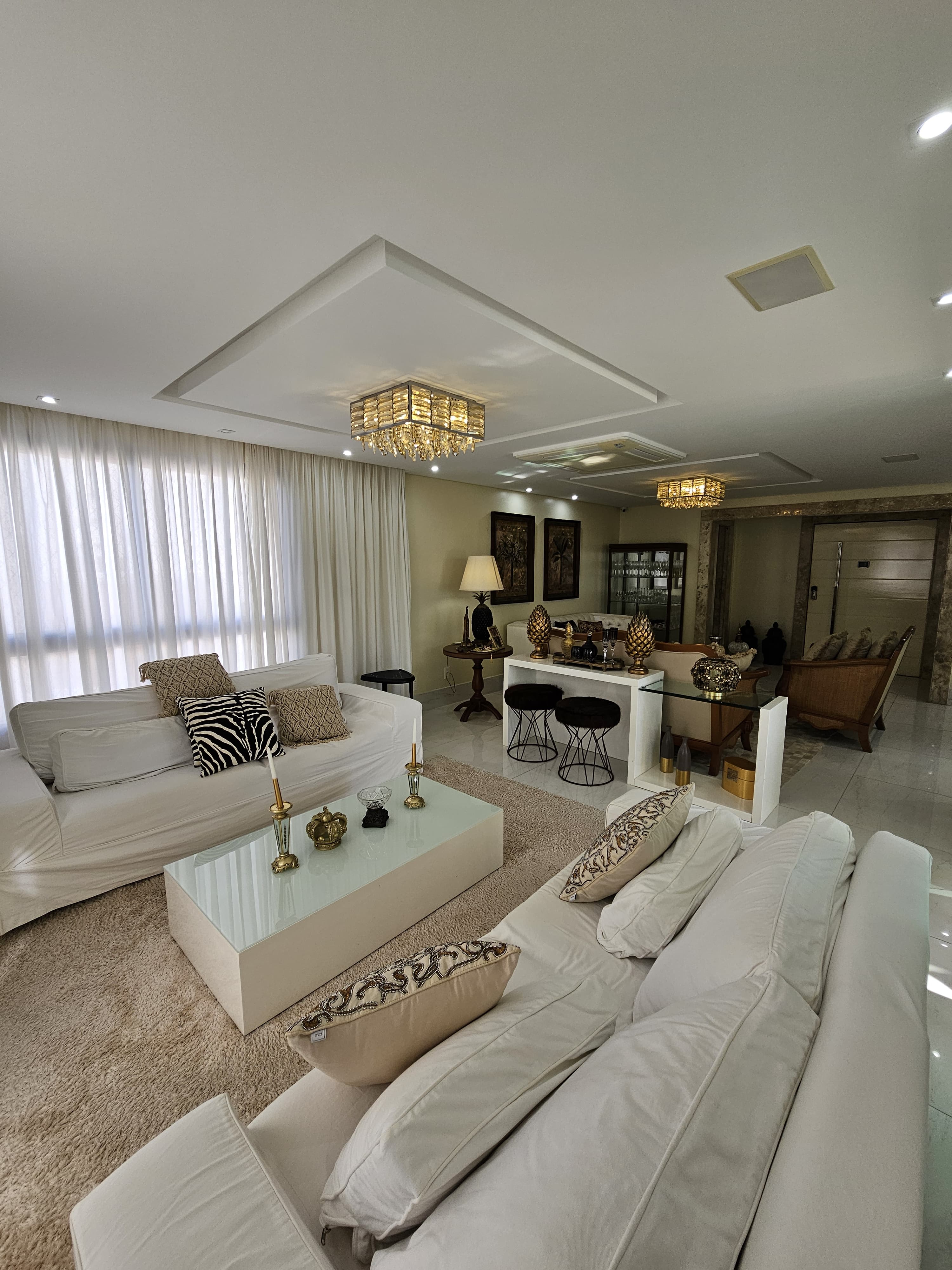 4 suítes, 225m², lavabo, dependência completa, decorado, despensa, bancadas em nanoglass, roupeiro, armários Idelle, sala de TV, todo climatizado, ventilado, andar alto, 1 apartamento por andar, 3 vagas de garagem soltas com armários, dependência completa.