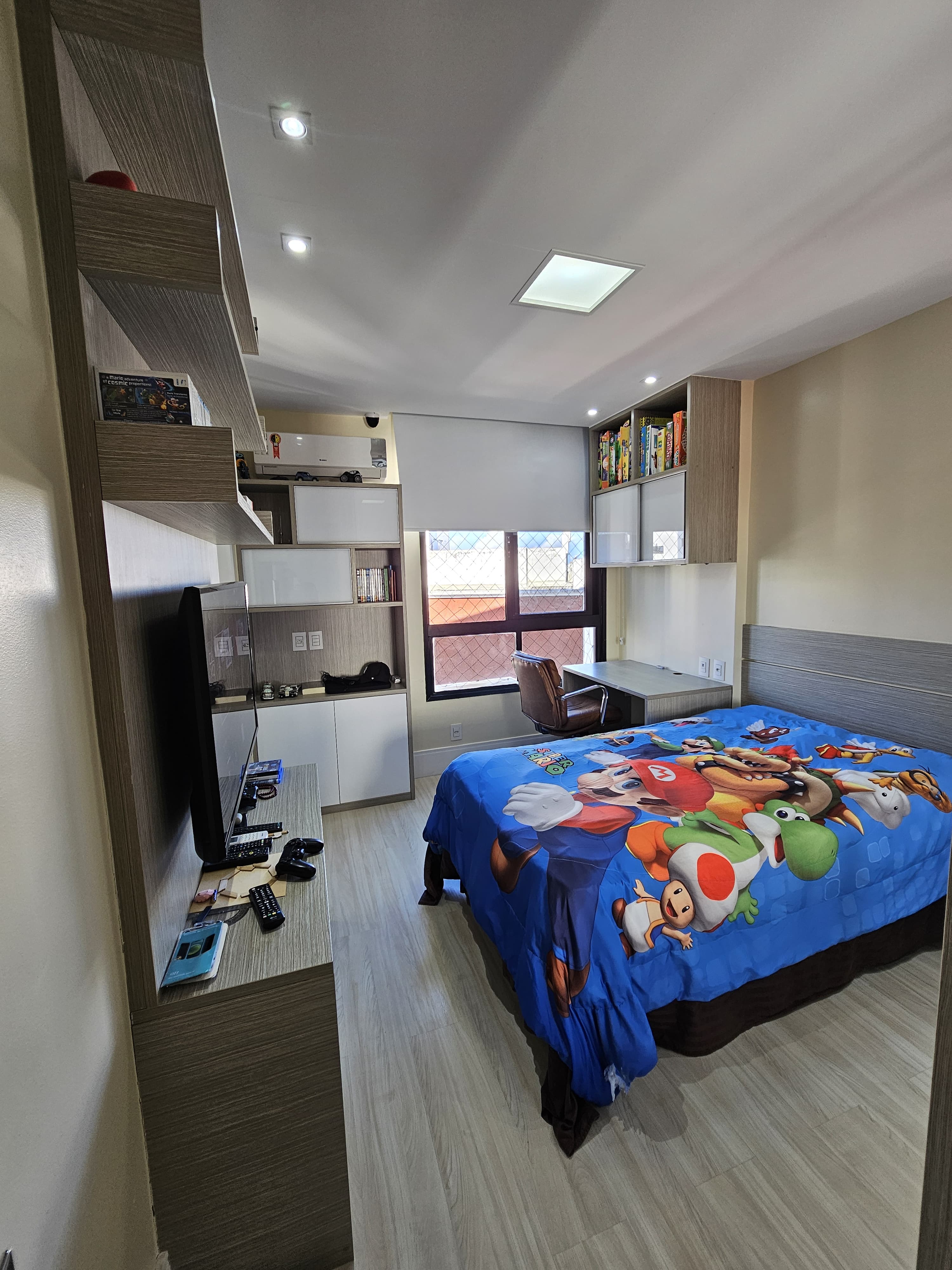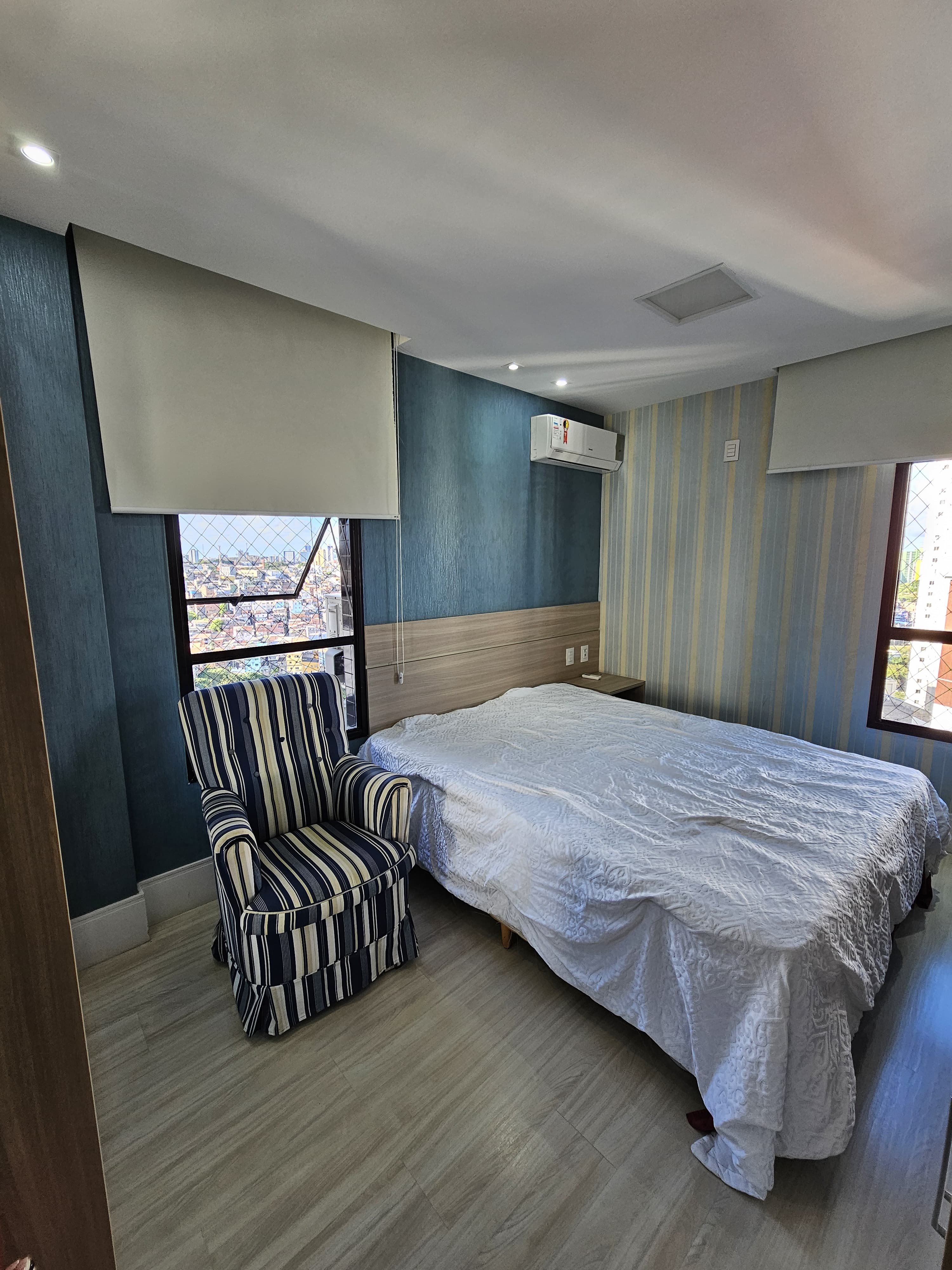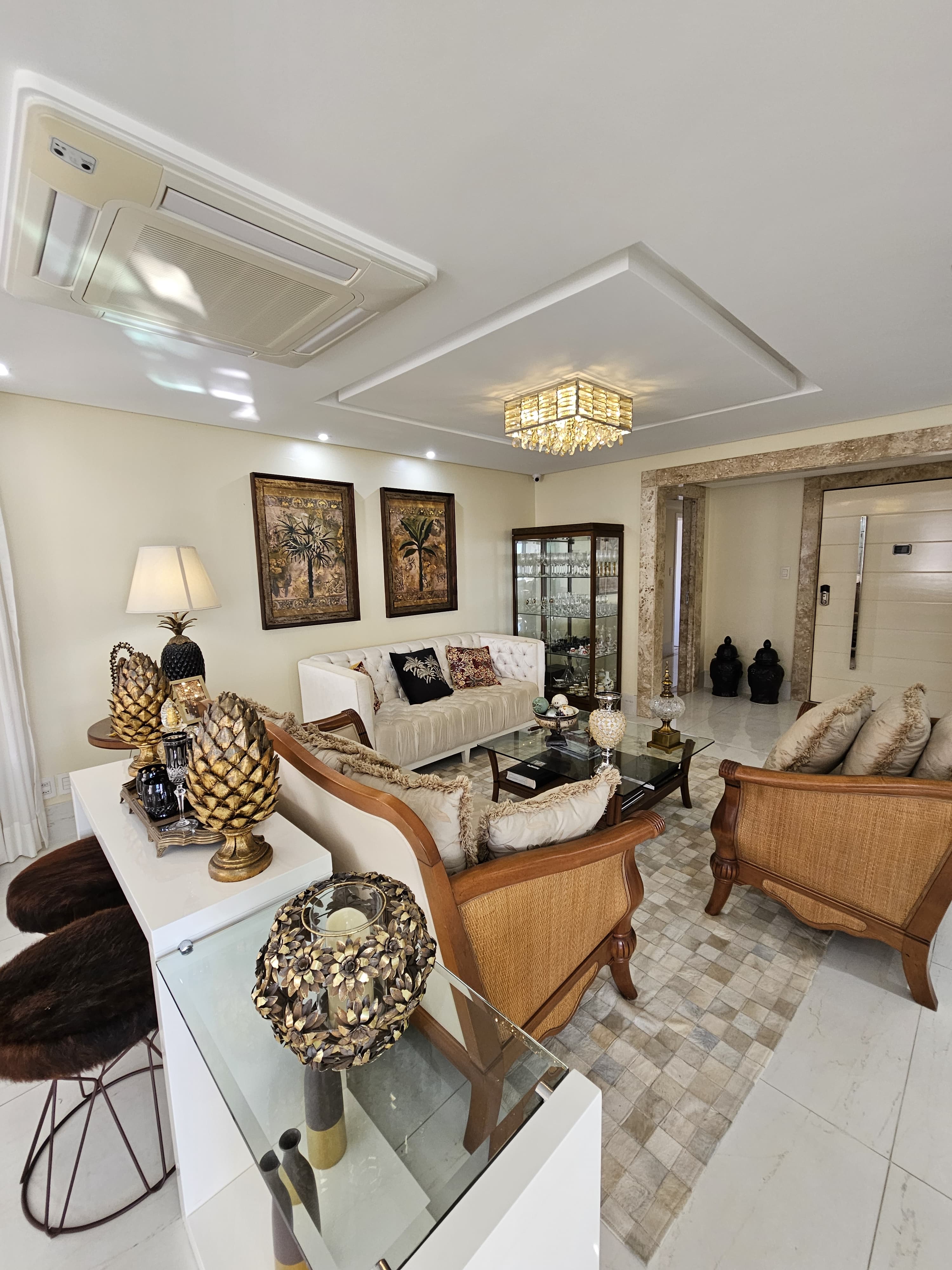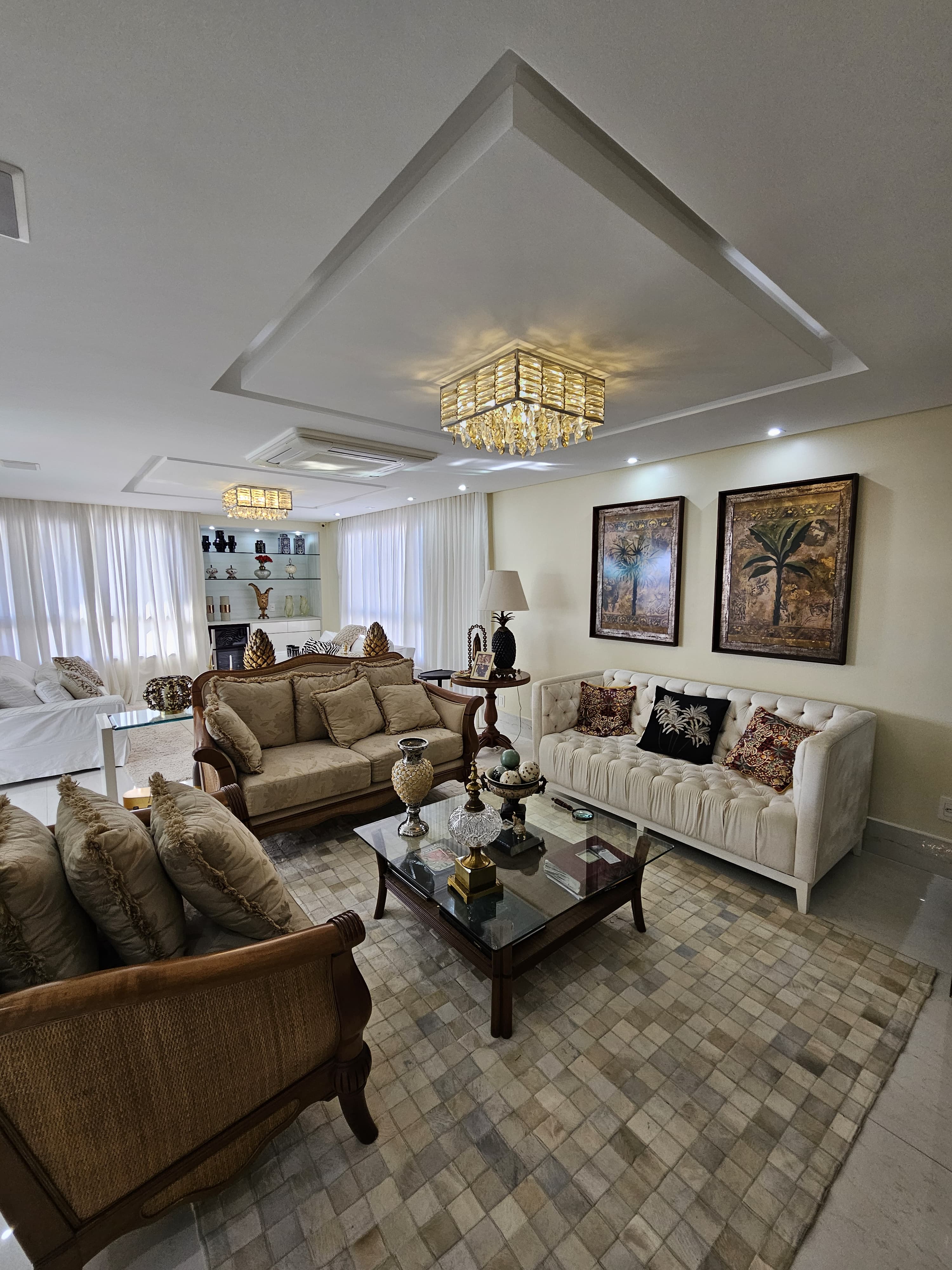 4 suítes, 225m², lavabo, dependência completa, decorado, despensa, bancadas em nanoglass, roupeiro, armários Idelle, sala de TV, todo climatizado, ventilado, andar alto, 1 apartamento por andar, 3 vagas de garagem soltas com armários, dependência completa.