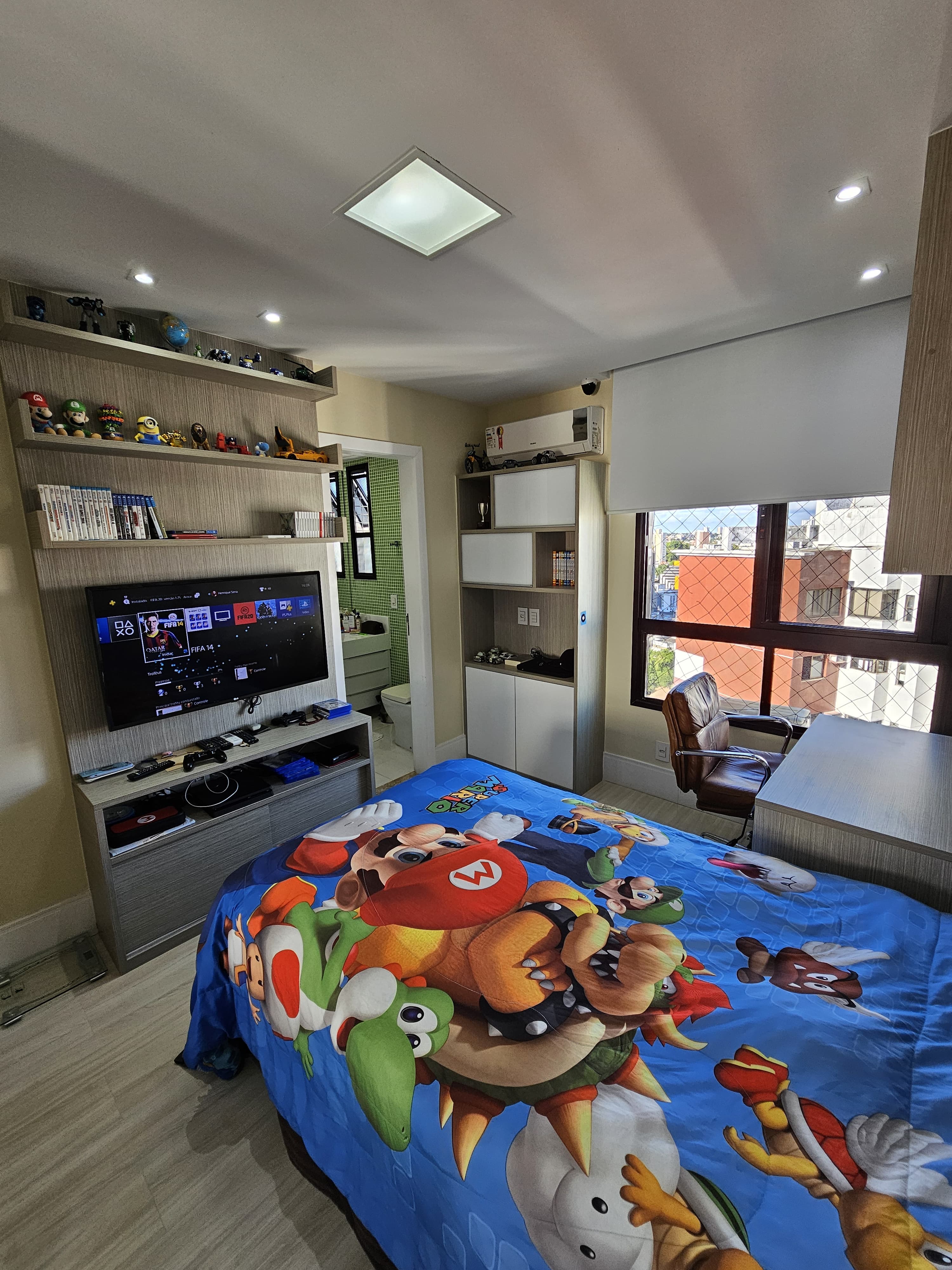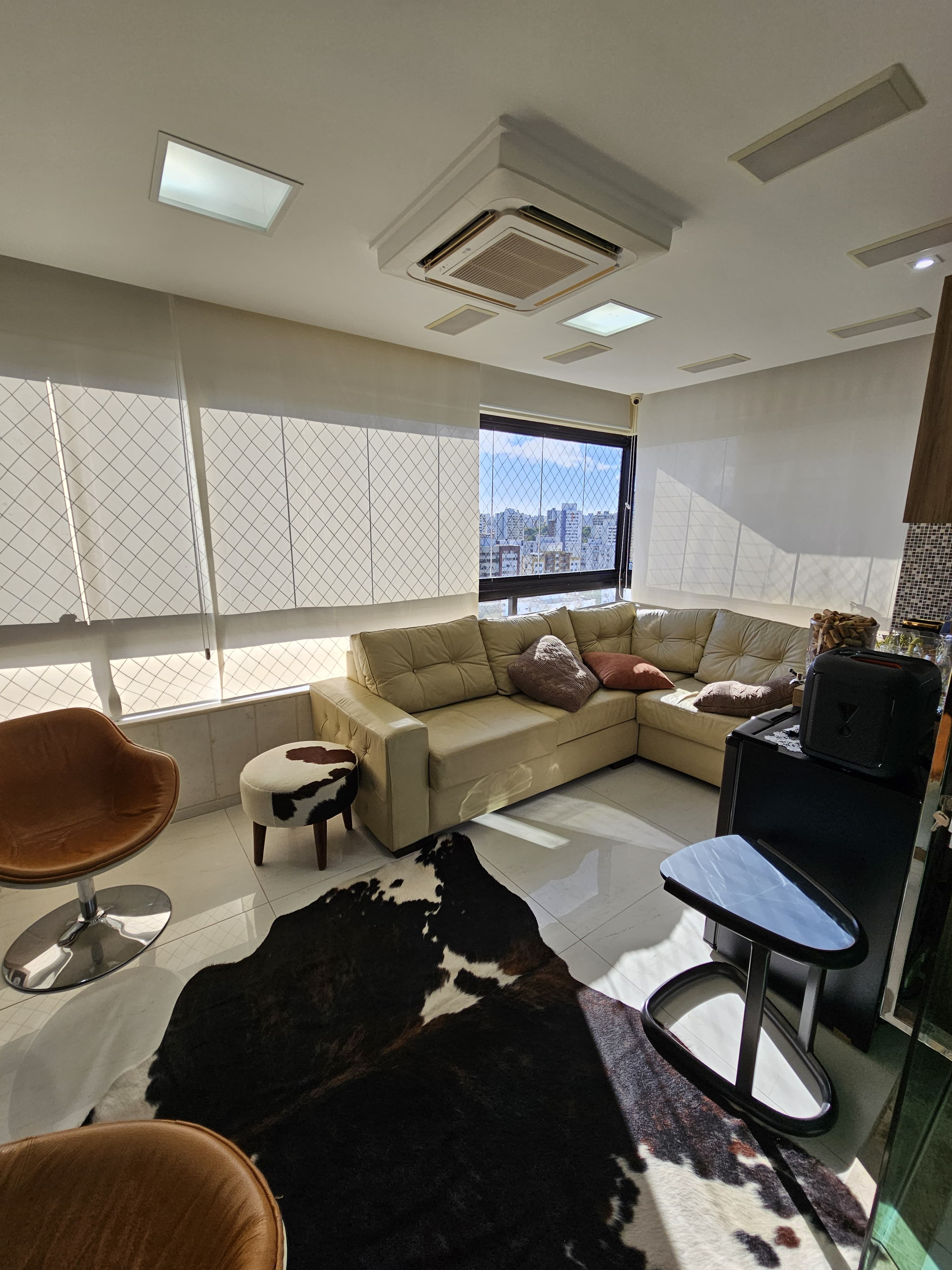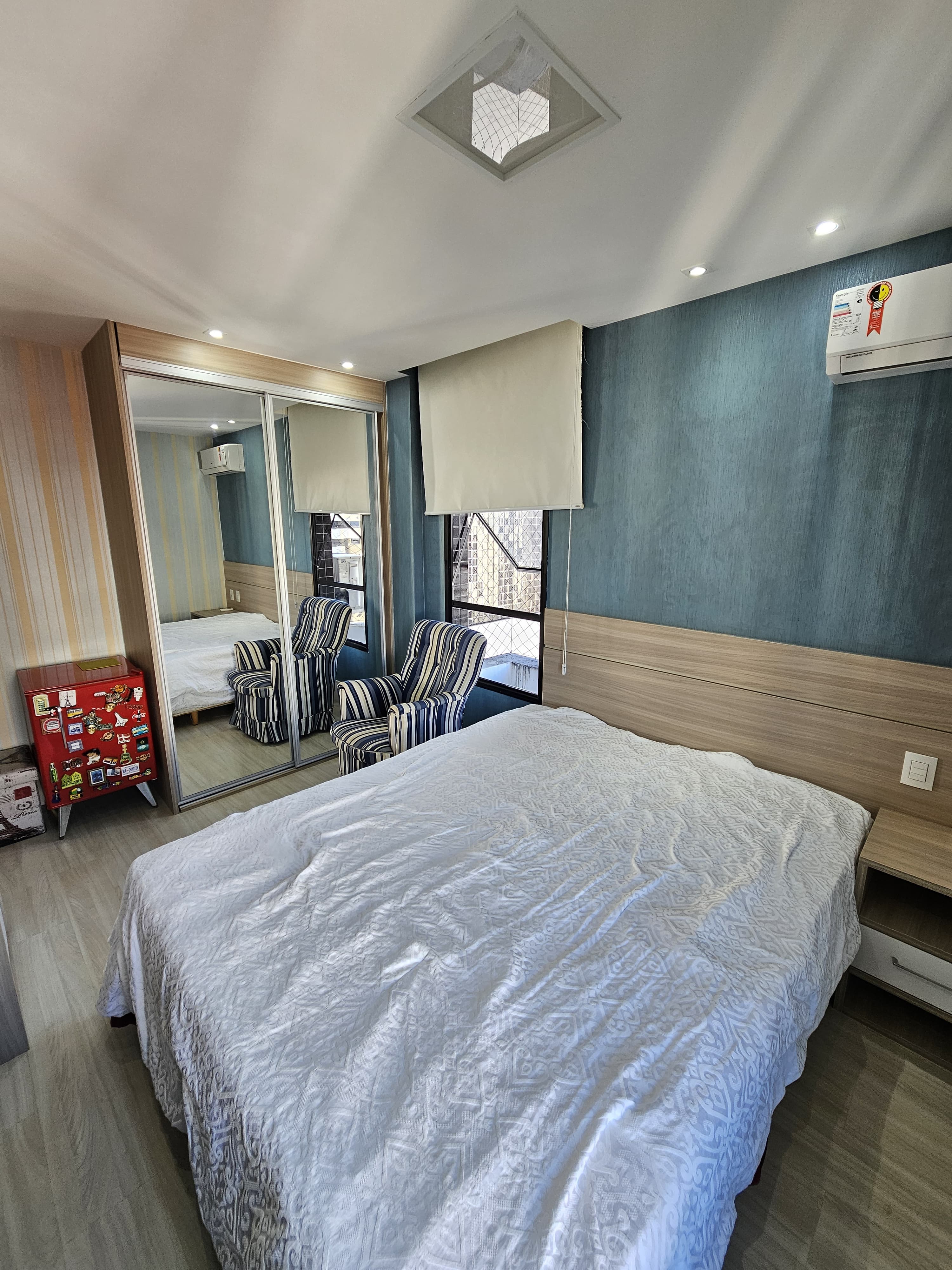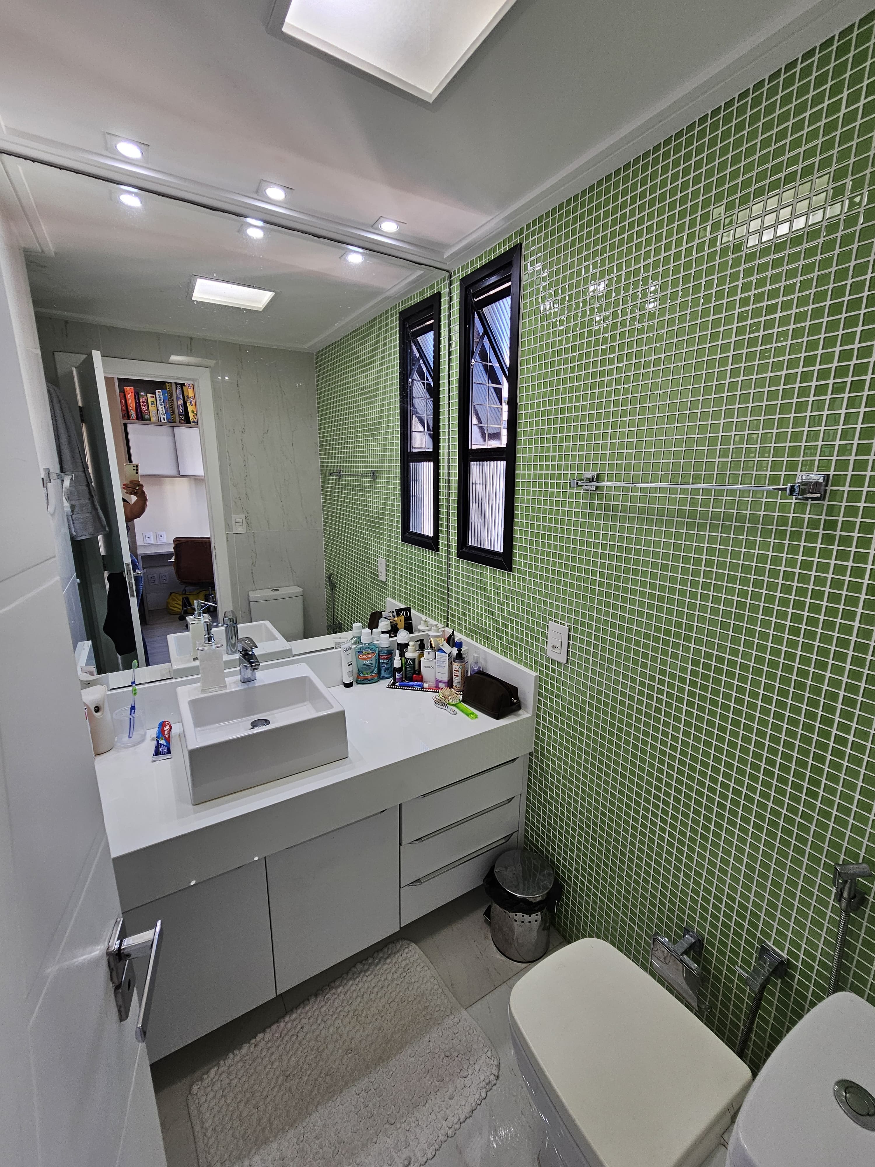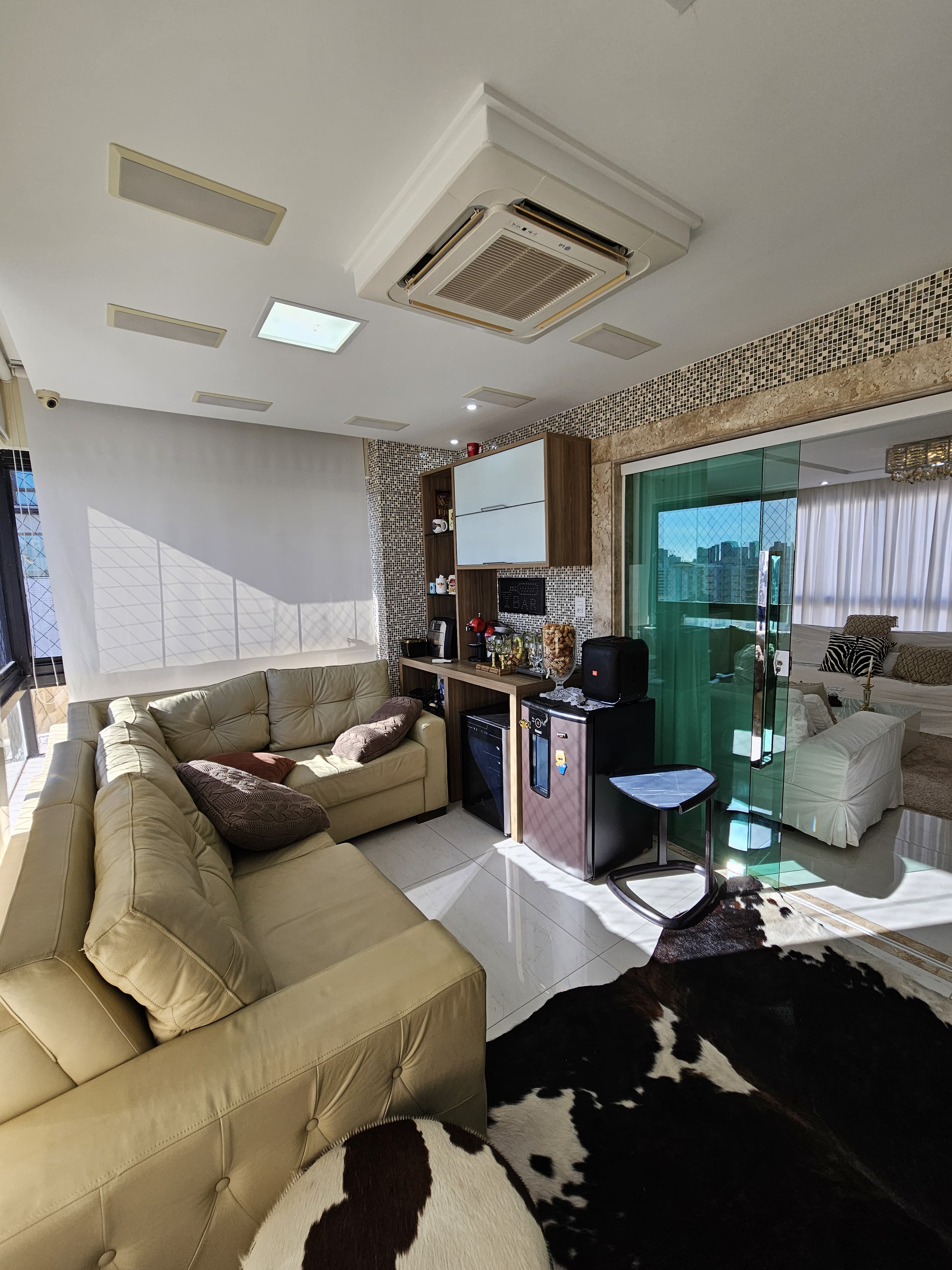 4 suítes, 225m², lavabo, dependência completa, decorado, despensa, bancadas em nanoglass, roupeiro, armários Idelle, sala de TV, todo climatizado, ventilado, andar alto, 1 apartamento por andar, 3 vagas de garagem soltas com armários, dependência completa.