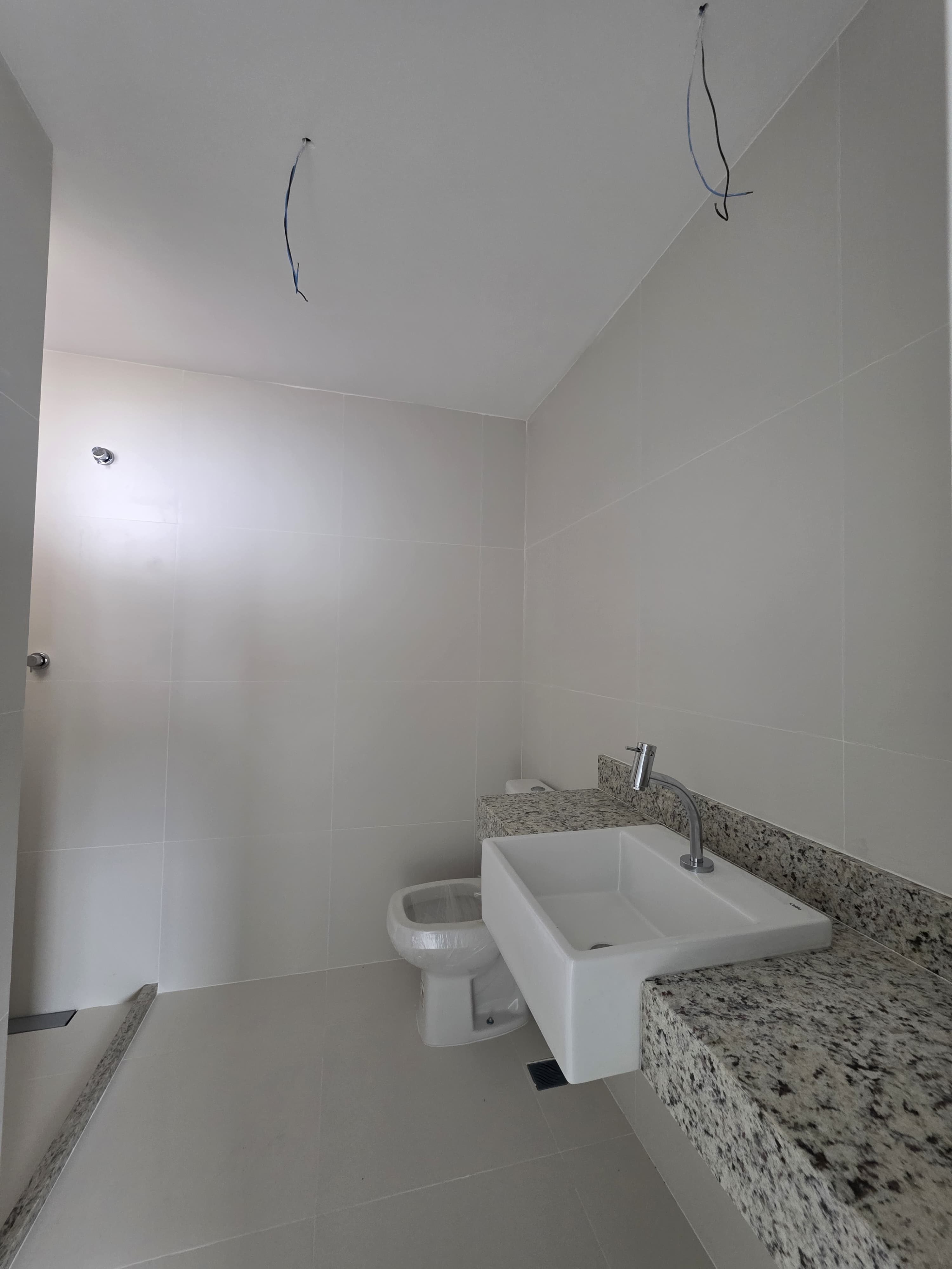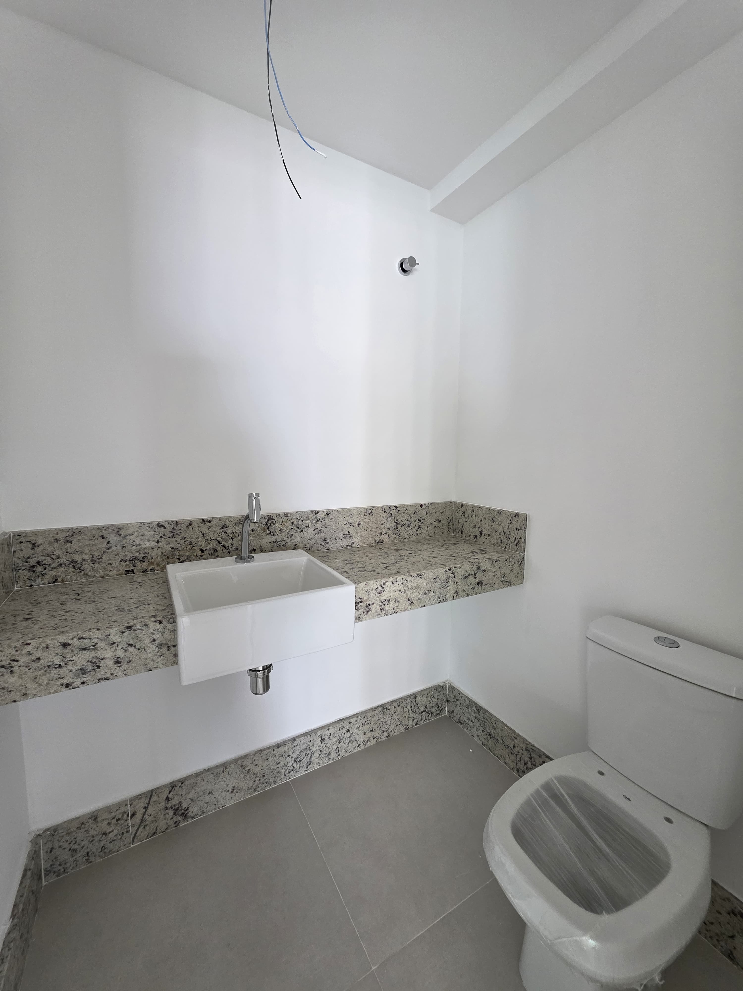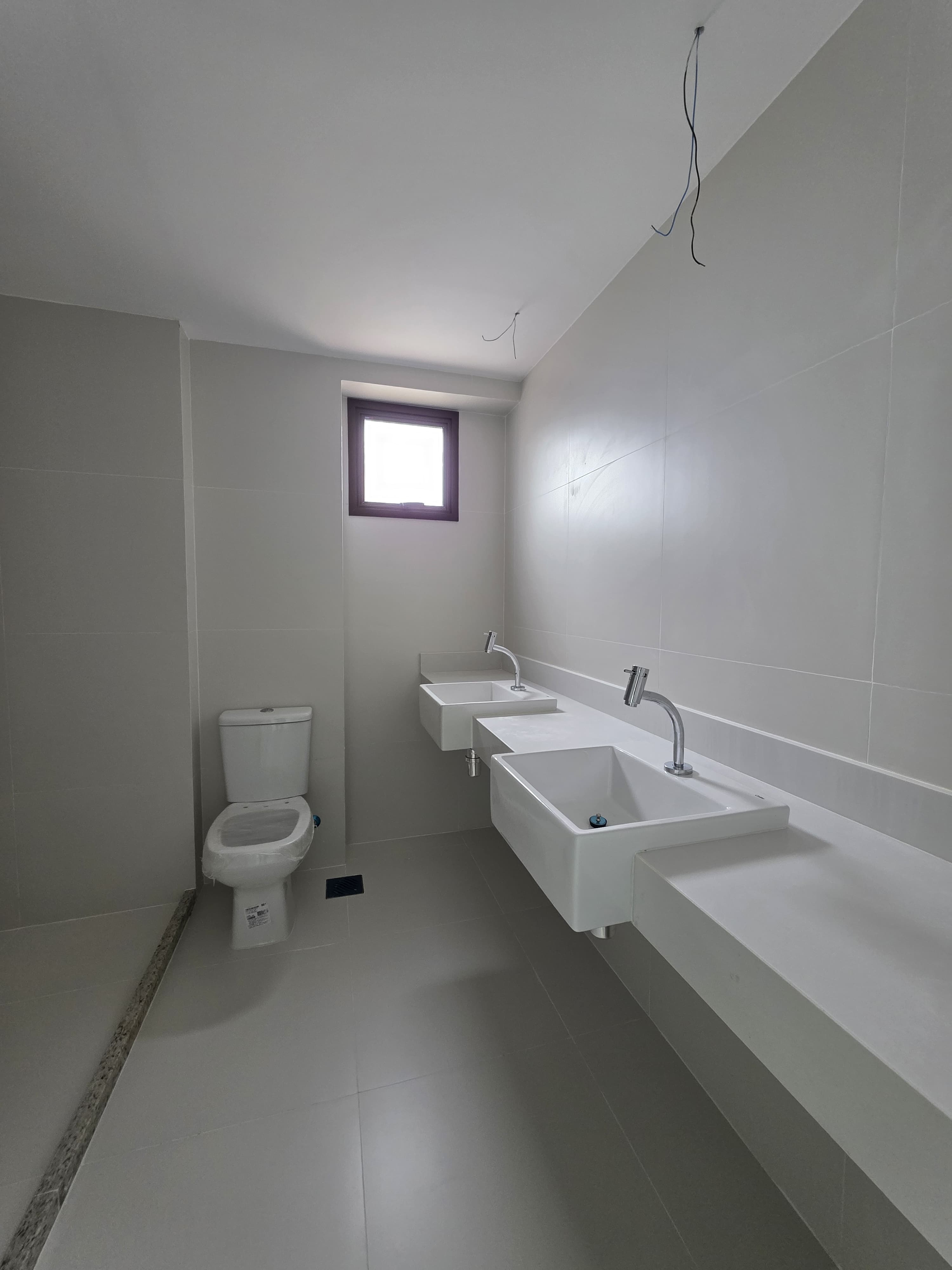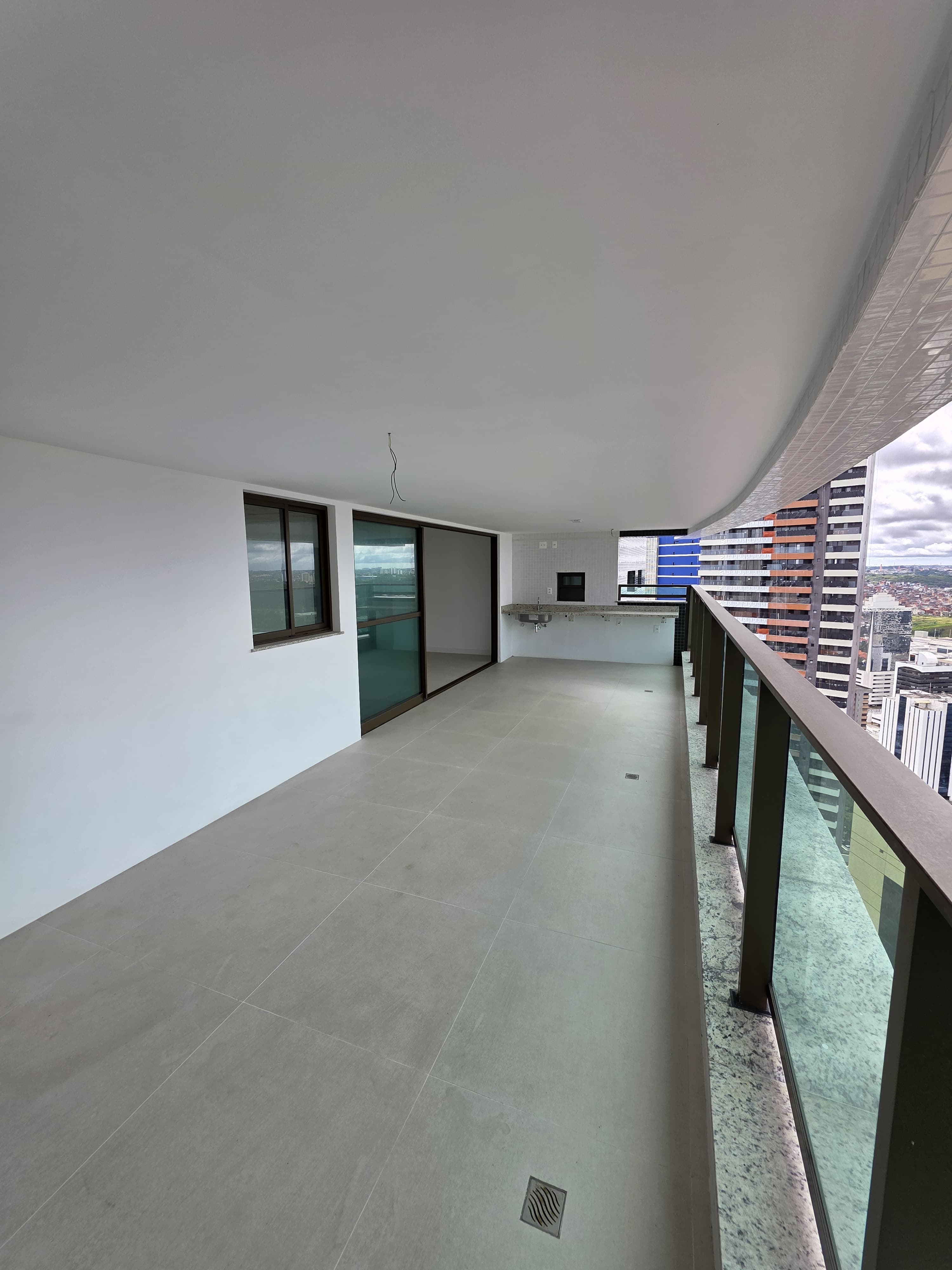 Sala ampla com lavabo e varanda gourmet