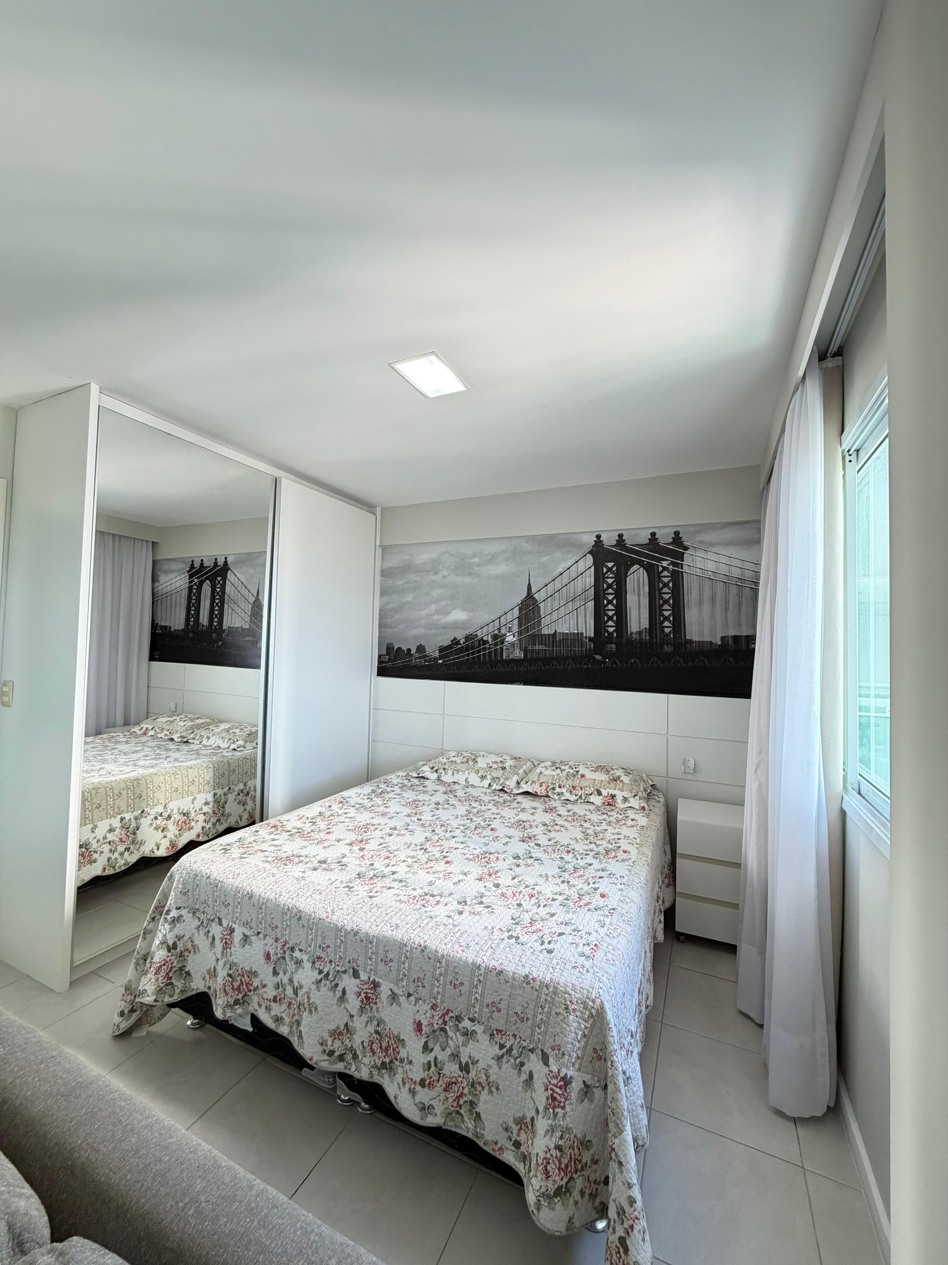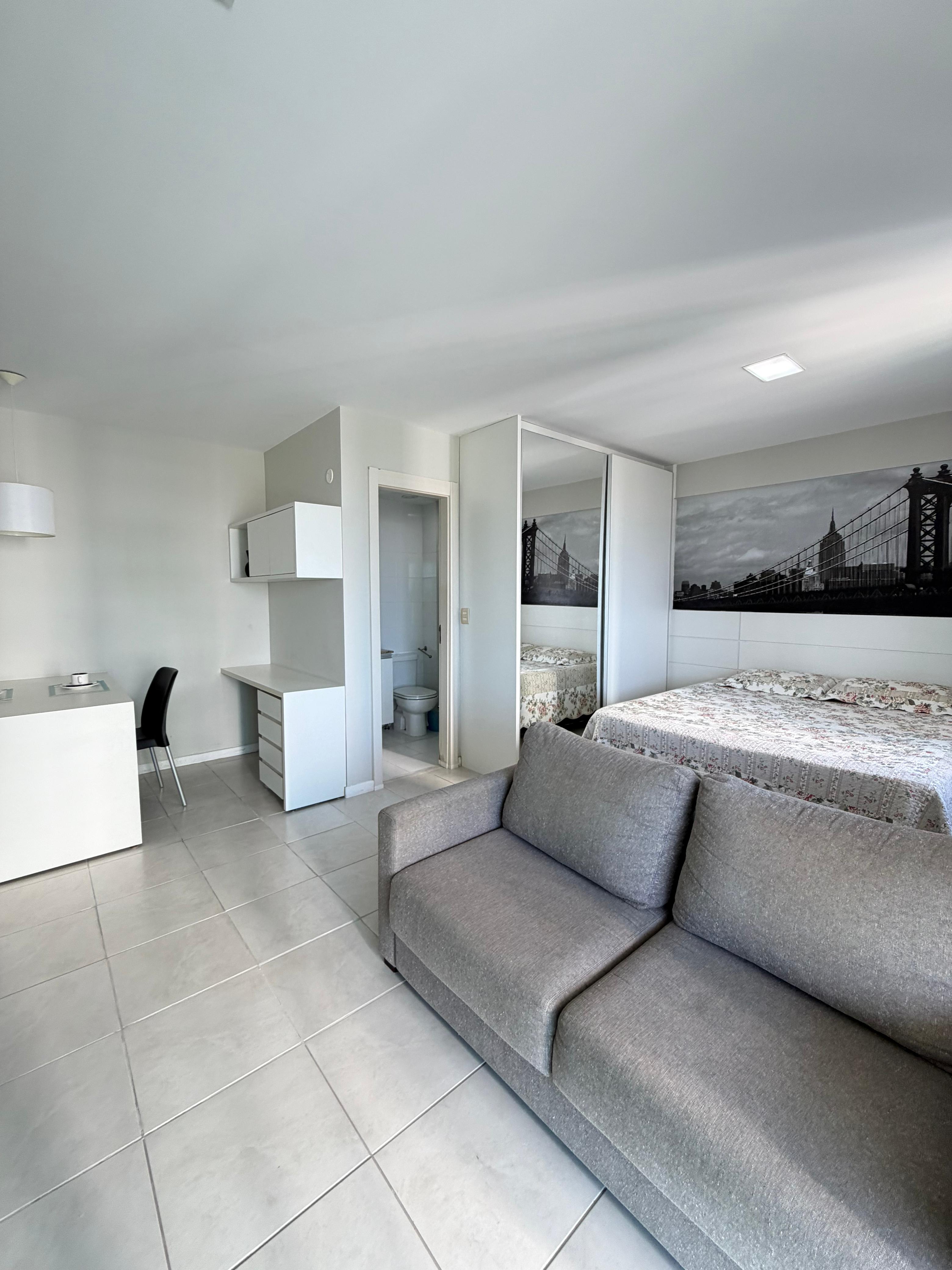 Quarto e sala , 54 m2, varanda, nascente total , andar intermediário, 1 vaga de garagem.