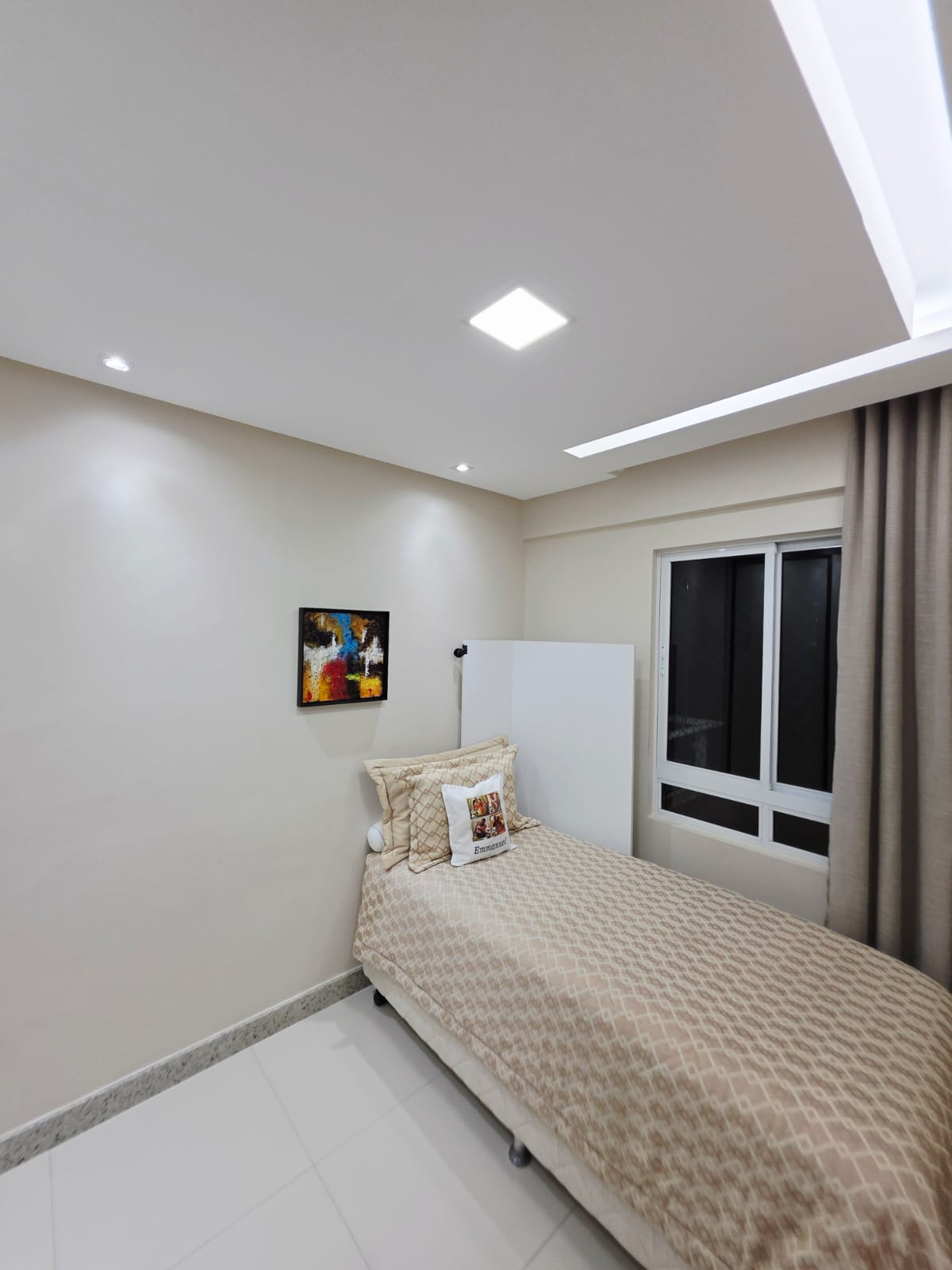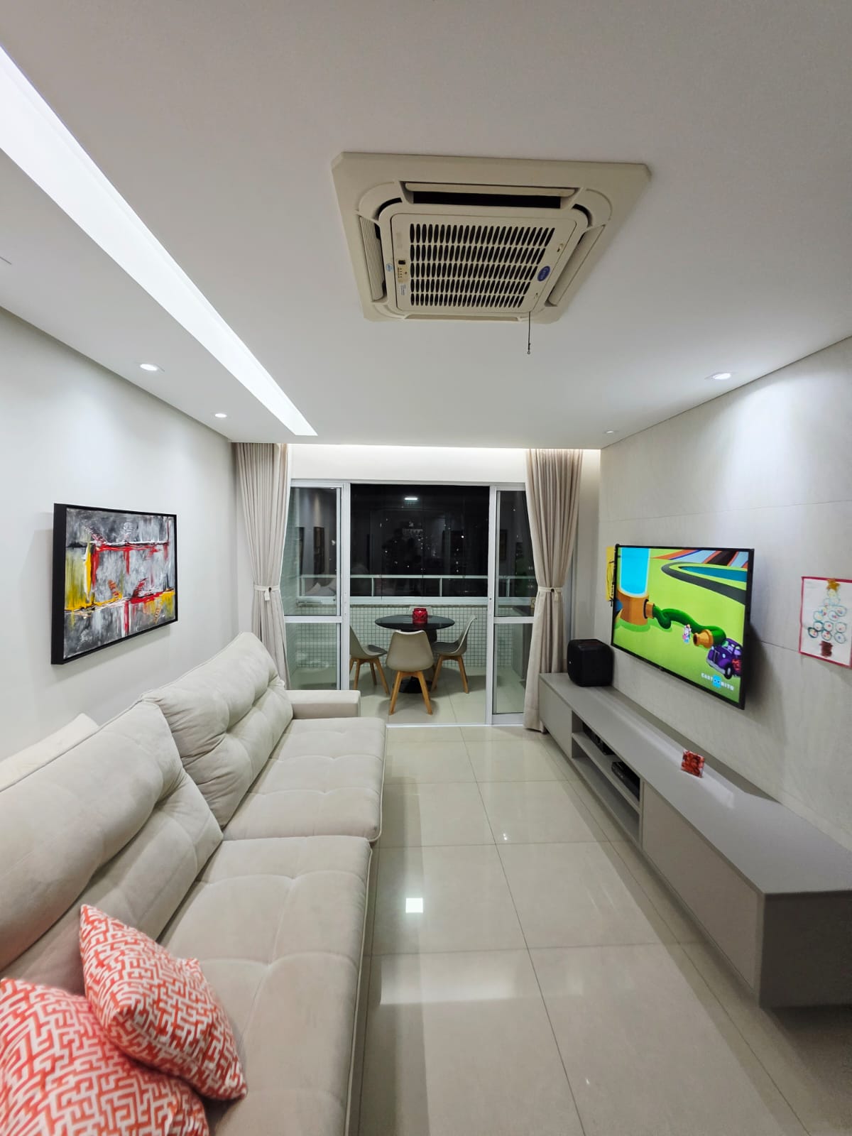 3/4 sendo 2 suites, ar condicionado K7 na sala, banheiro de servico transformado em deposito, armários planejados em todo apartamento, nascente total.