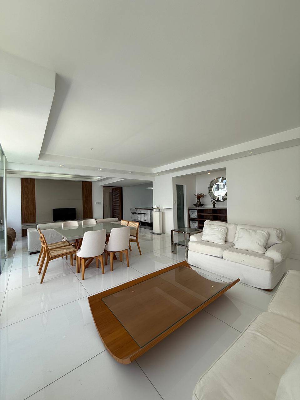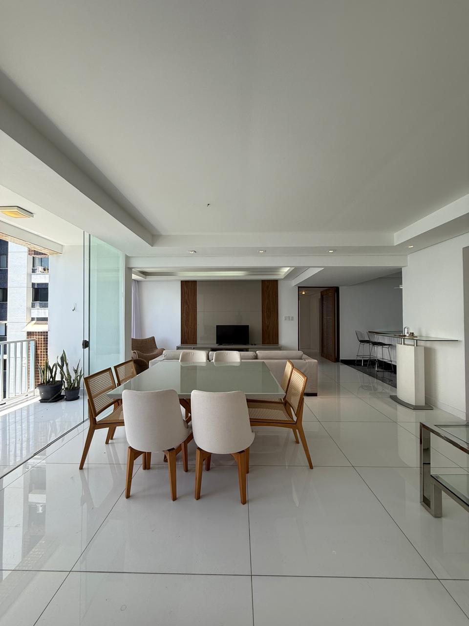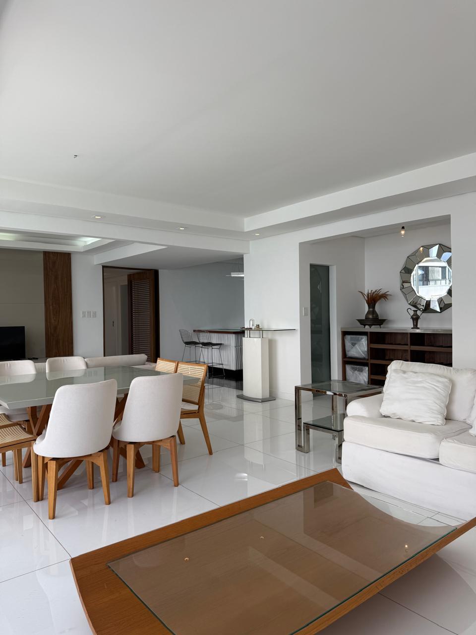 São 3/4 amplos, suíte, 328m2 de área privativa, lavabo, sala com três ambientes, varanda, cozinha americana, área de serviço dependencia completa.