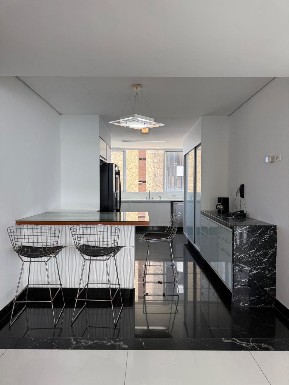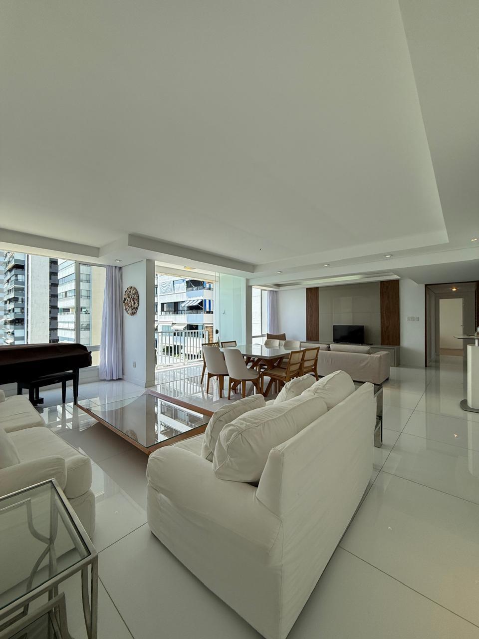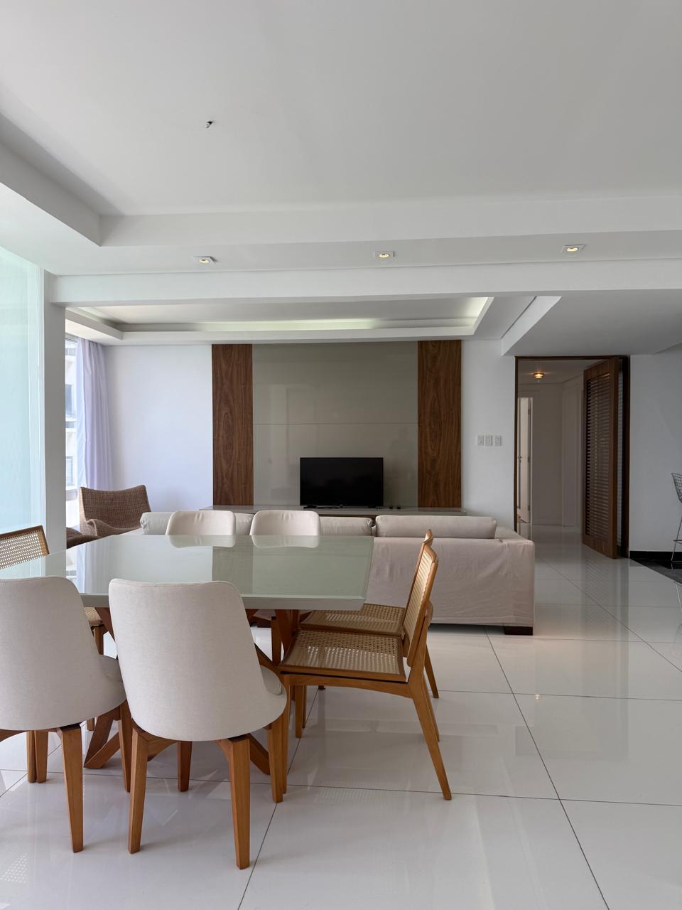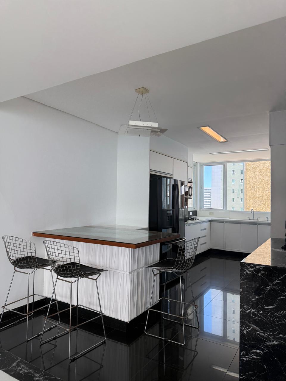 São 3/4 amplos, suíte, 328m2 de área privativa, lavabo, sala com três ambientes, varanda, cozinha americana, área de serviço dependencia completa.