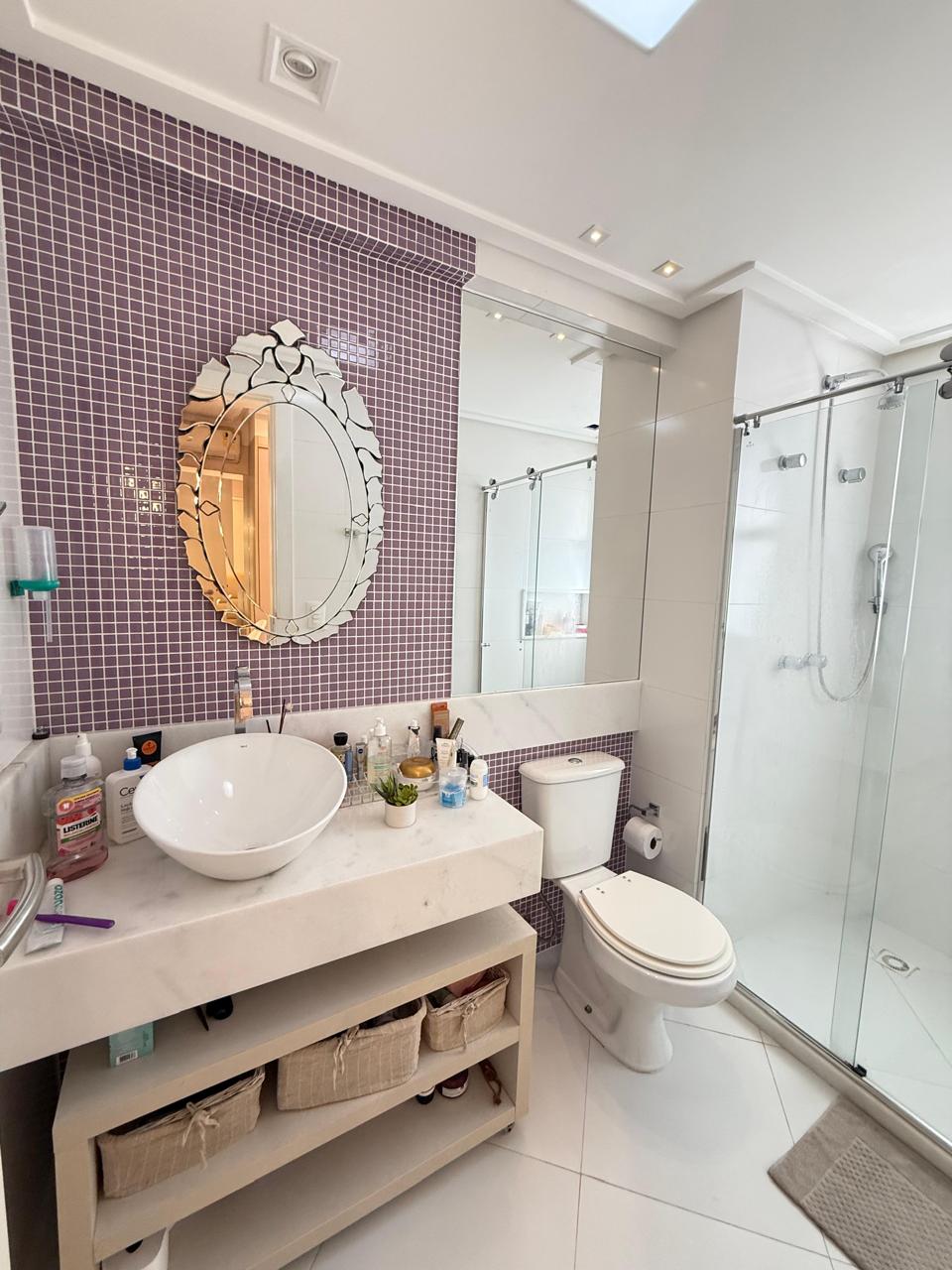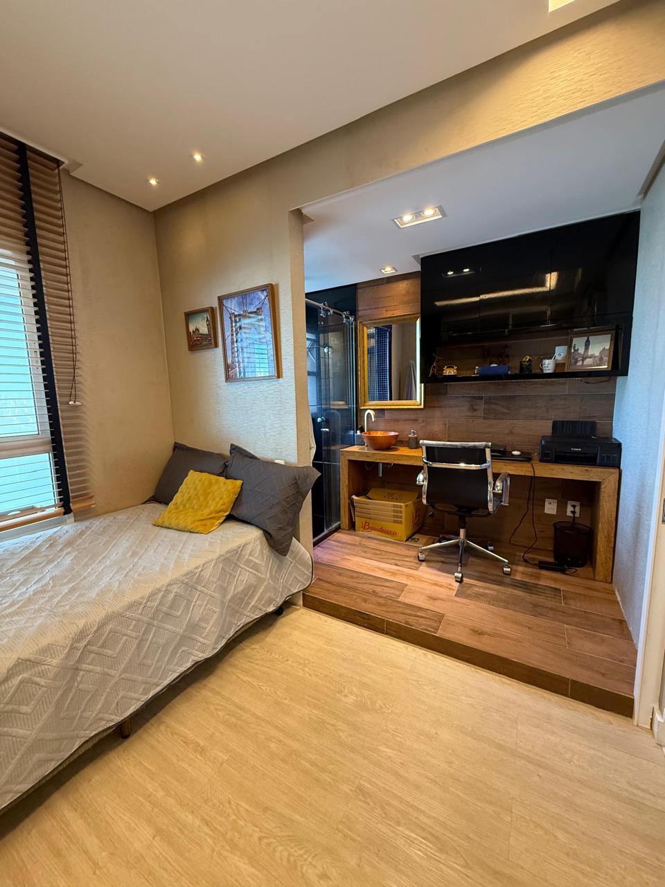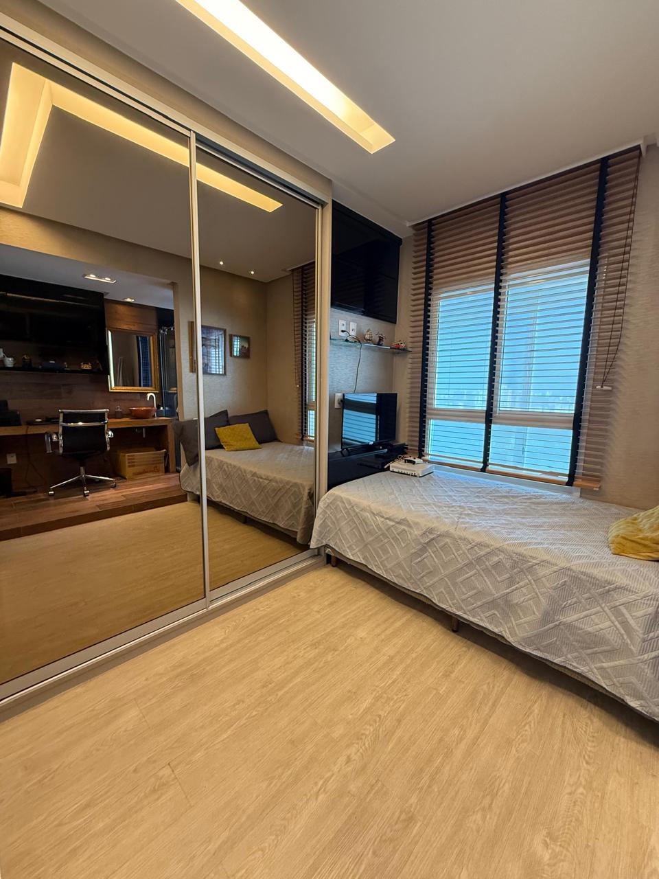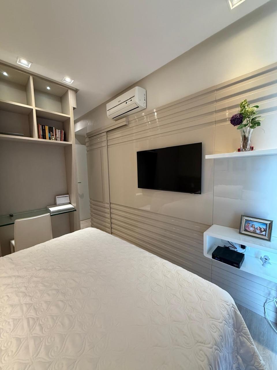 143 m2 Andar alto 4 suítes Closet Lavabo Varanda Gourmet Sala Ampla Ar condicionado nas 4 suítes Cortina em todos os ambientes Projeto de iluminação Armários Planejados Dependência Completa 3 vagas de garagem.