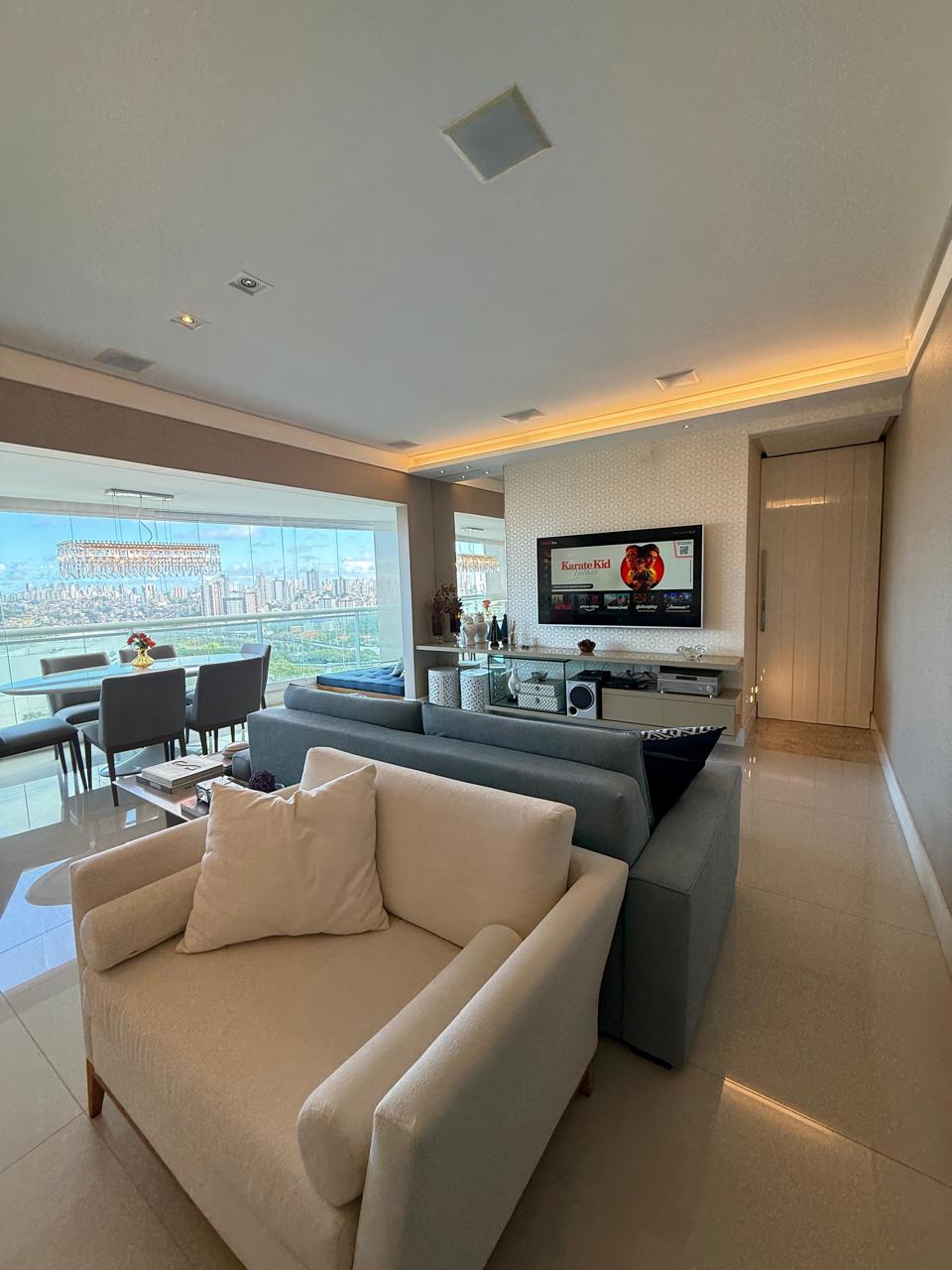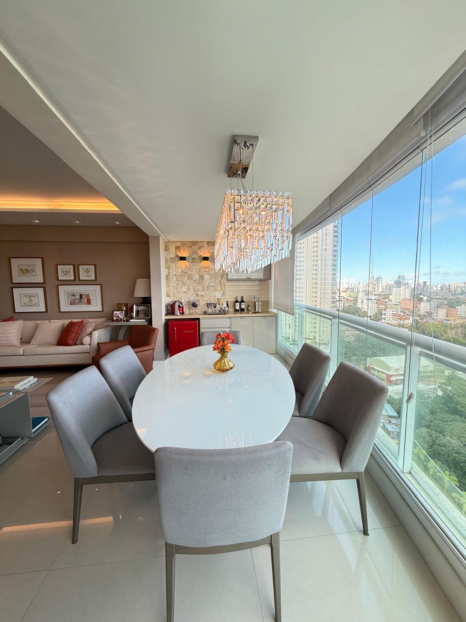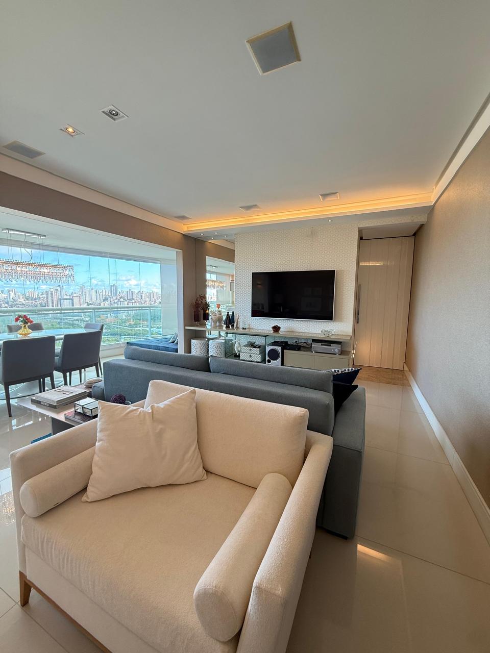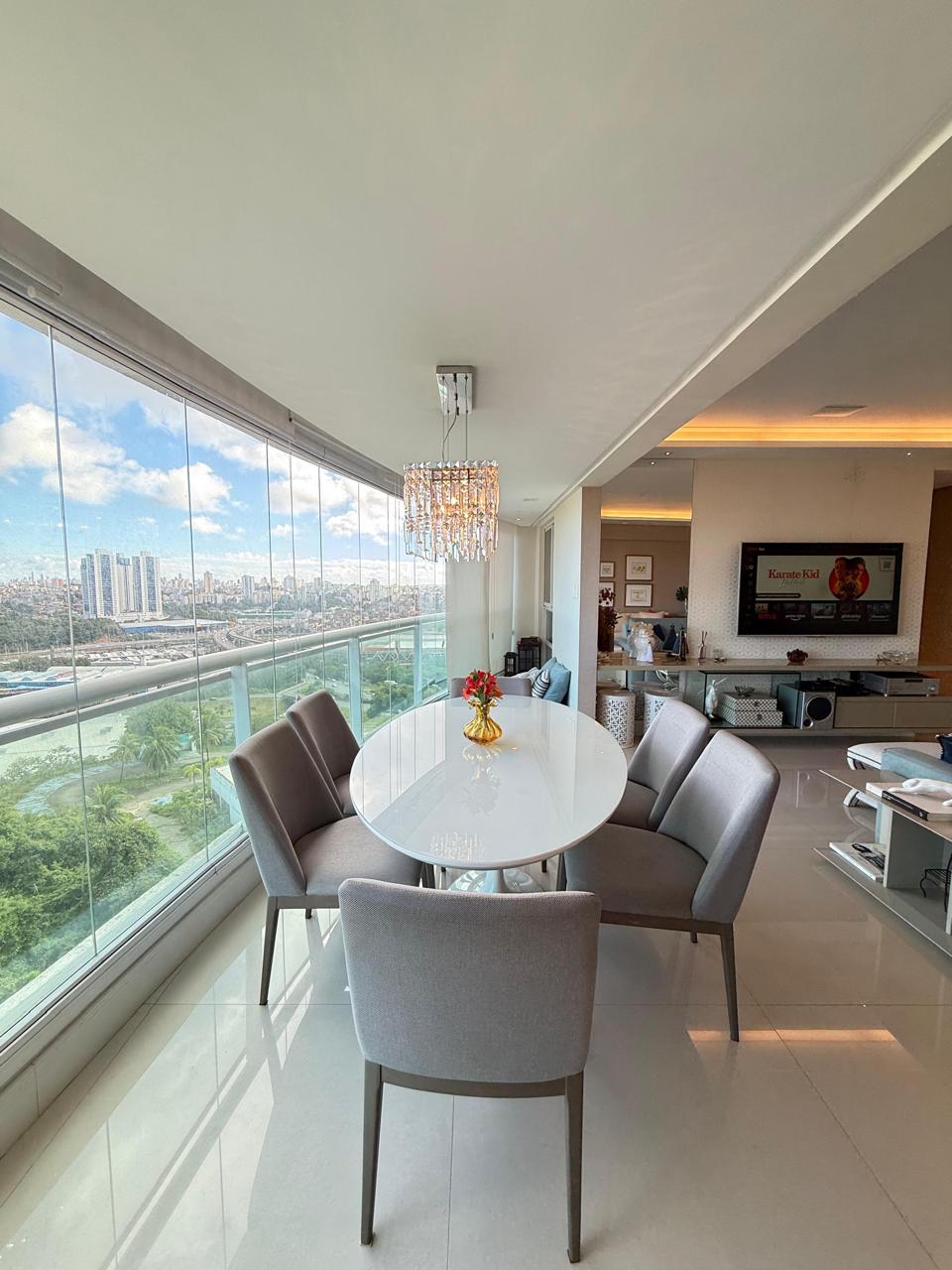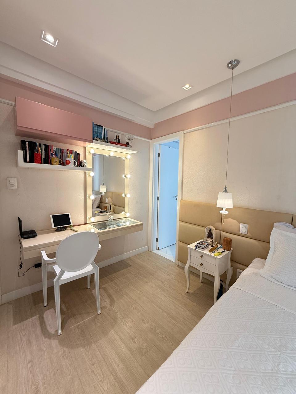 143 m2 Andar alto 4 suítes Closet Lavabo Varanda Gourmet Sala Ampla Ar condicionado nas 4 suítes Cortina em todos os ambientes Projeto de iluminação Armários Planejados Dependência Completa 3 vagas de garagem.