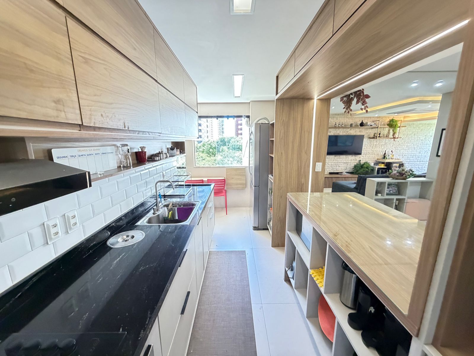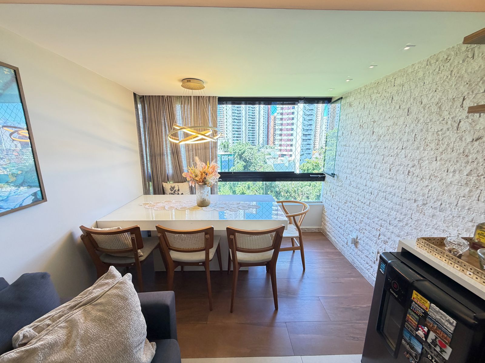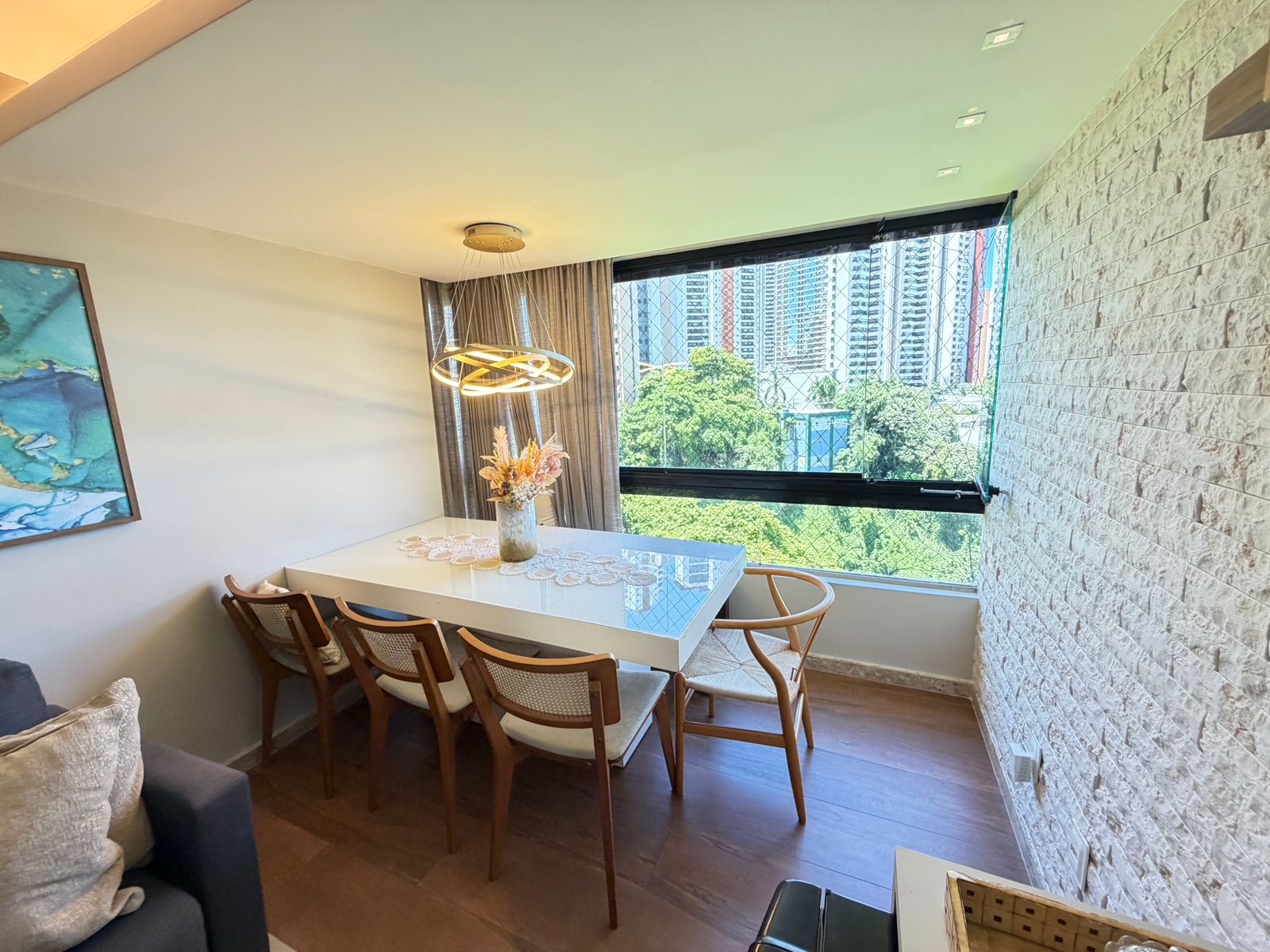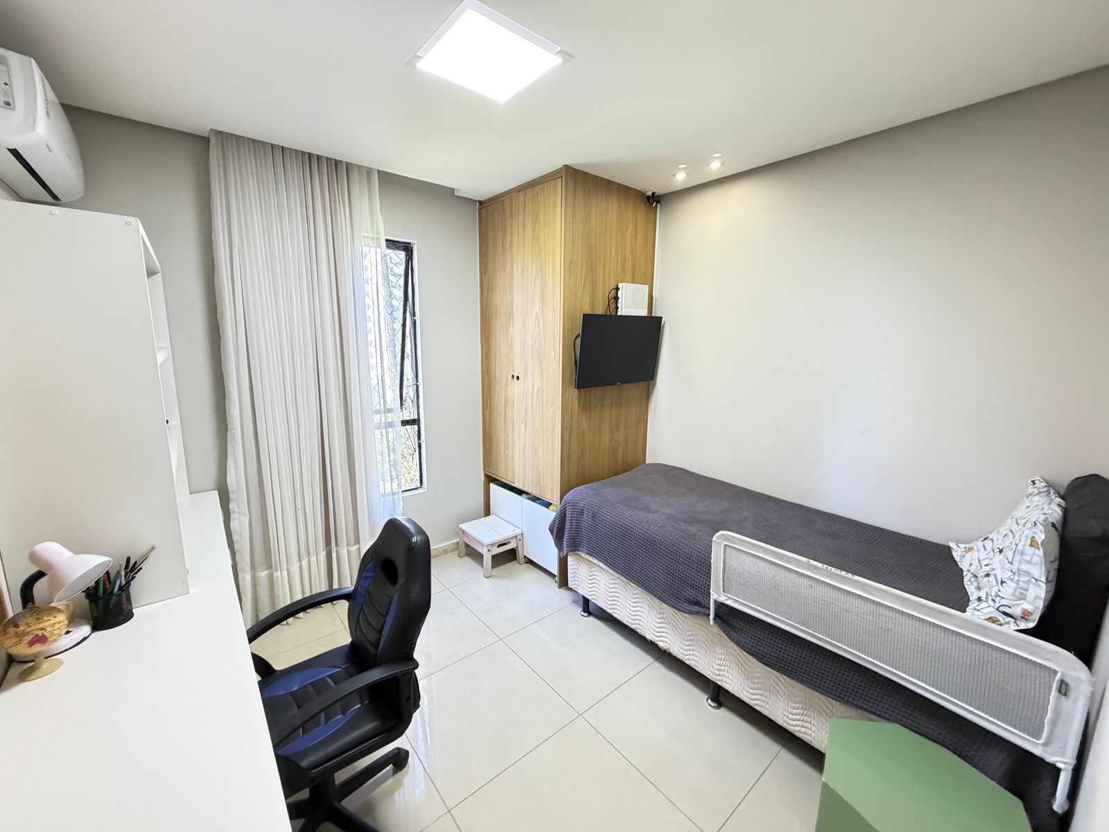 Apartamento com planta confortável e ambientes bem distribuídos. Possui varanda incorporada à sala com fechamento em reiki, cozinha americana, banheiro social, área de serviço com banheiro e porta de serviço. Conta ainda com armários em todos os cômodos, ar-condicionado central na sala e nos quartos, rebaixamento em gesso com projeto de iluminação e fechadura eletrônica.