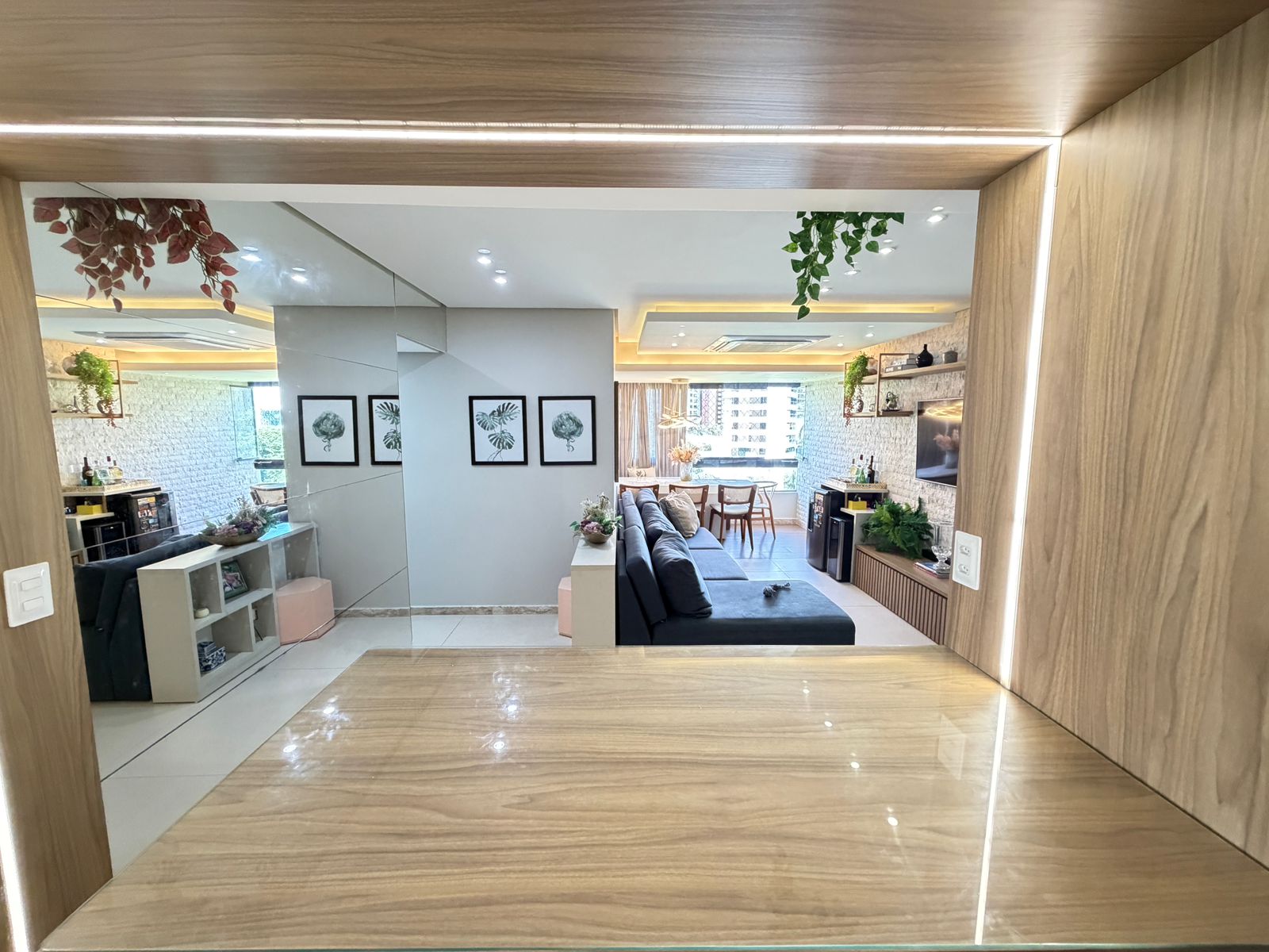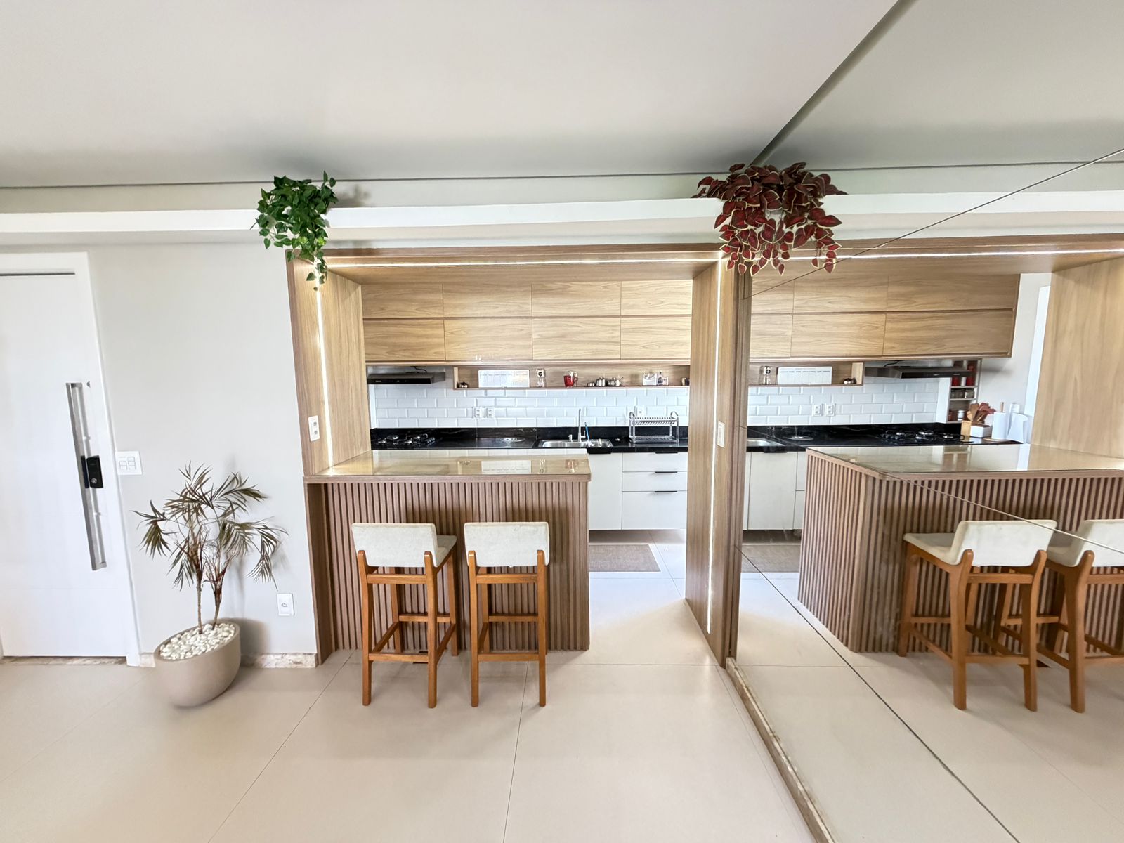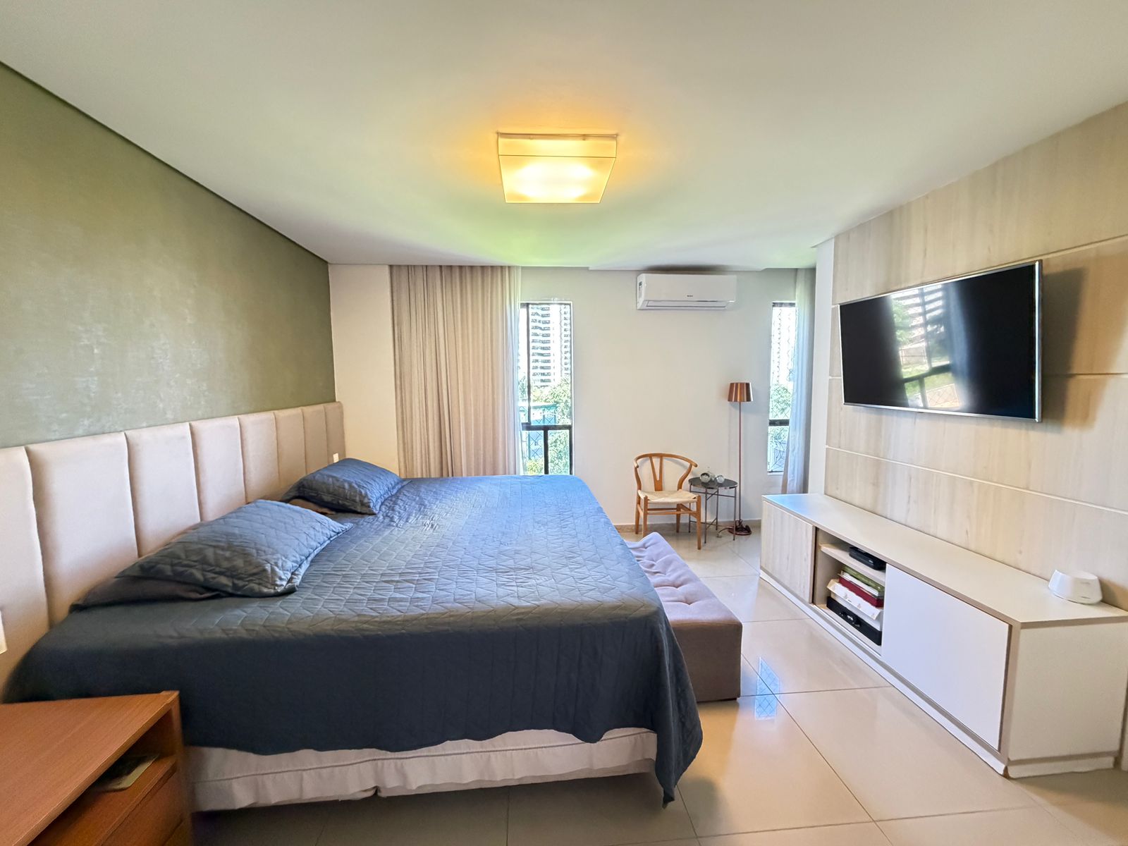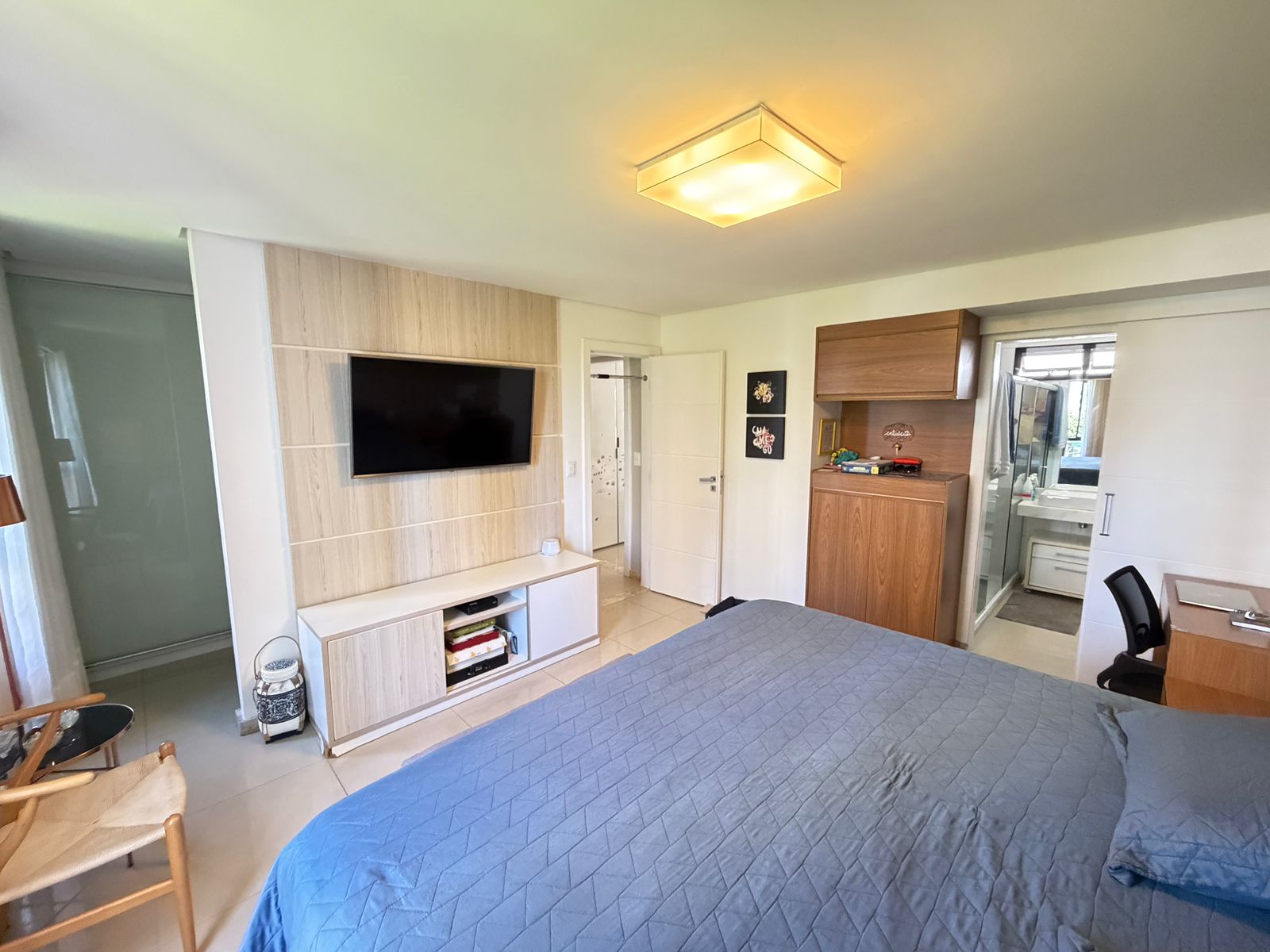 Apartamento com planta confortável e ambientes bem distribuídos. Possui varanda incorporada à sala com fechamento em reiki, cozinha americana, banheiro social, área de serviço com banheiro e porta de serviço. Conta ainda com armários em todos os cômodos, ar-condicionado central na sala e nos quartos, rebaixamento em gesso com projeto de iluminação e fechadura eletrônica.