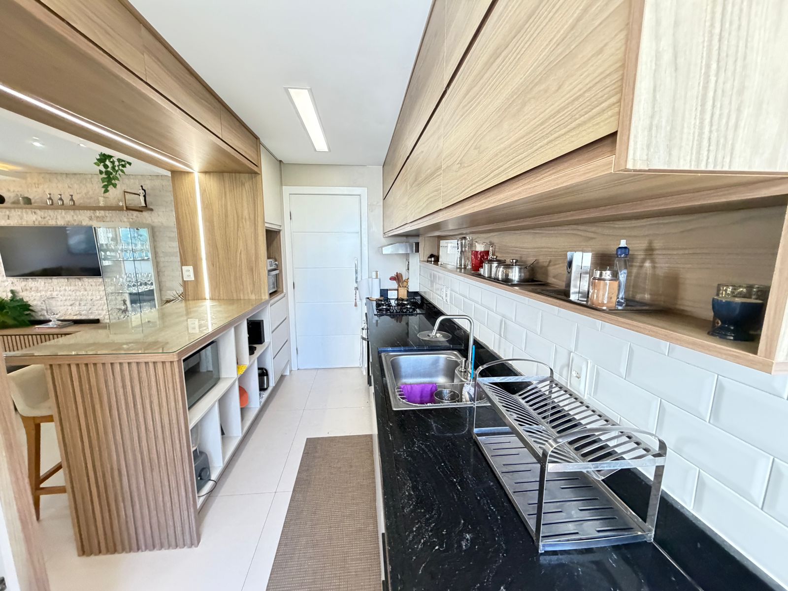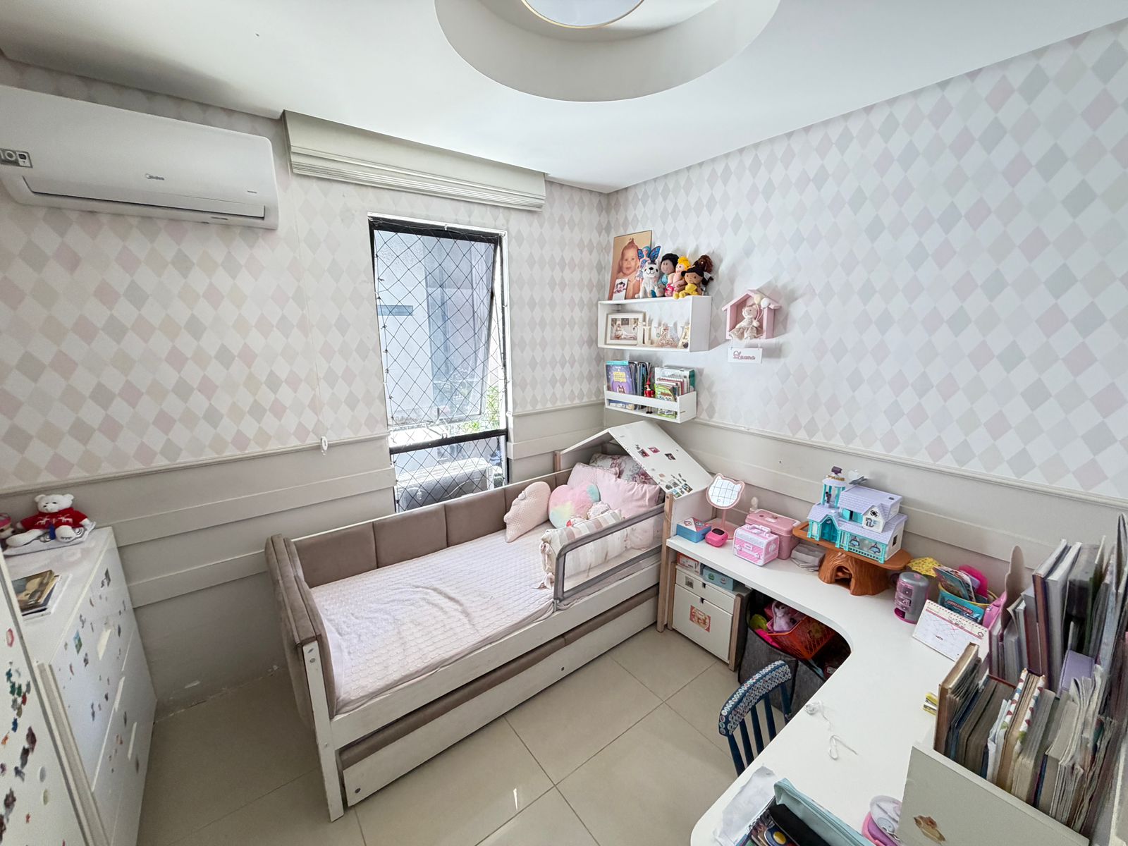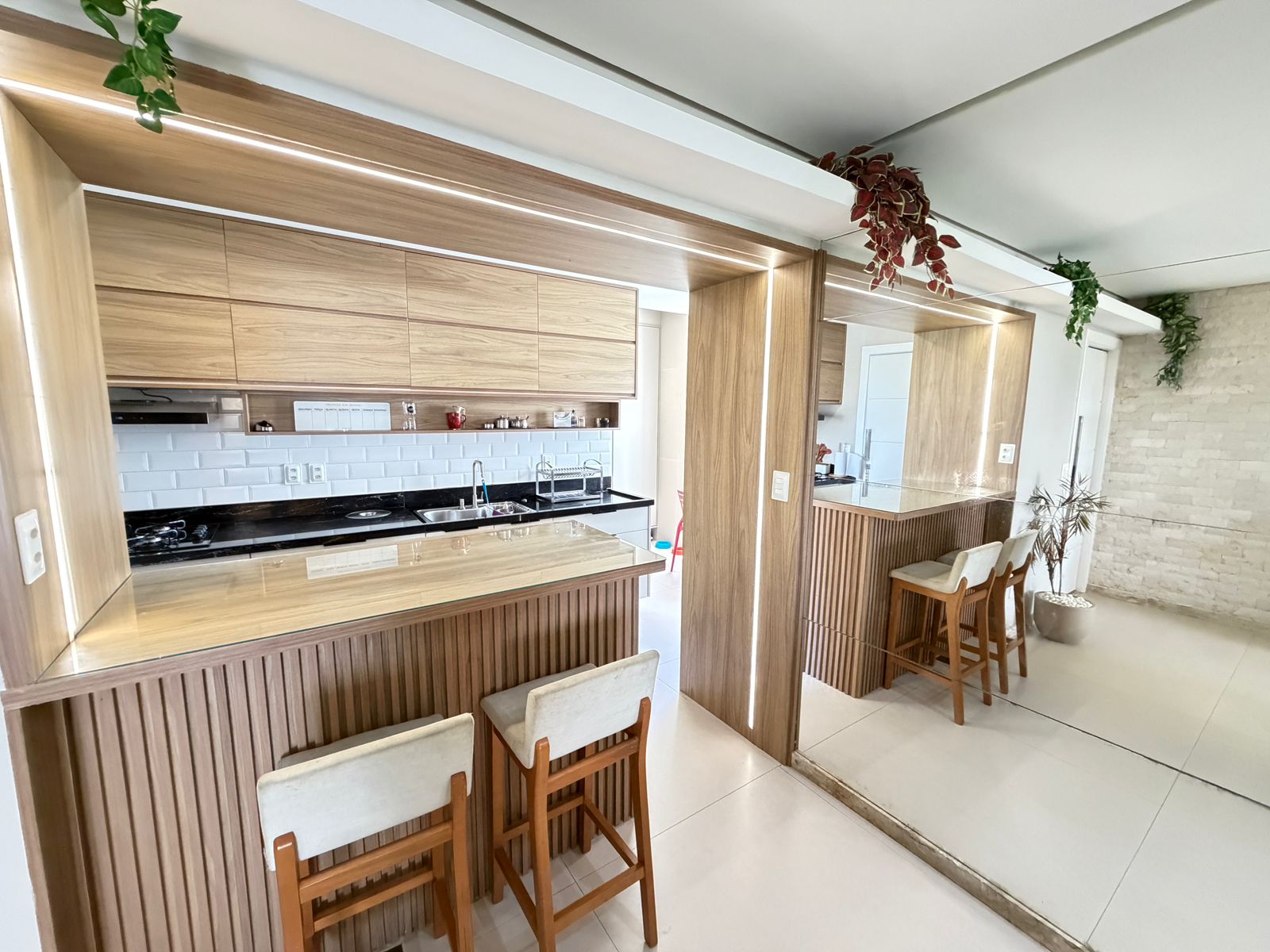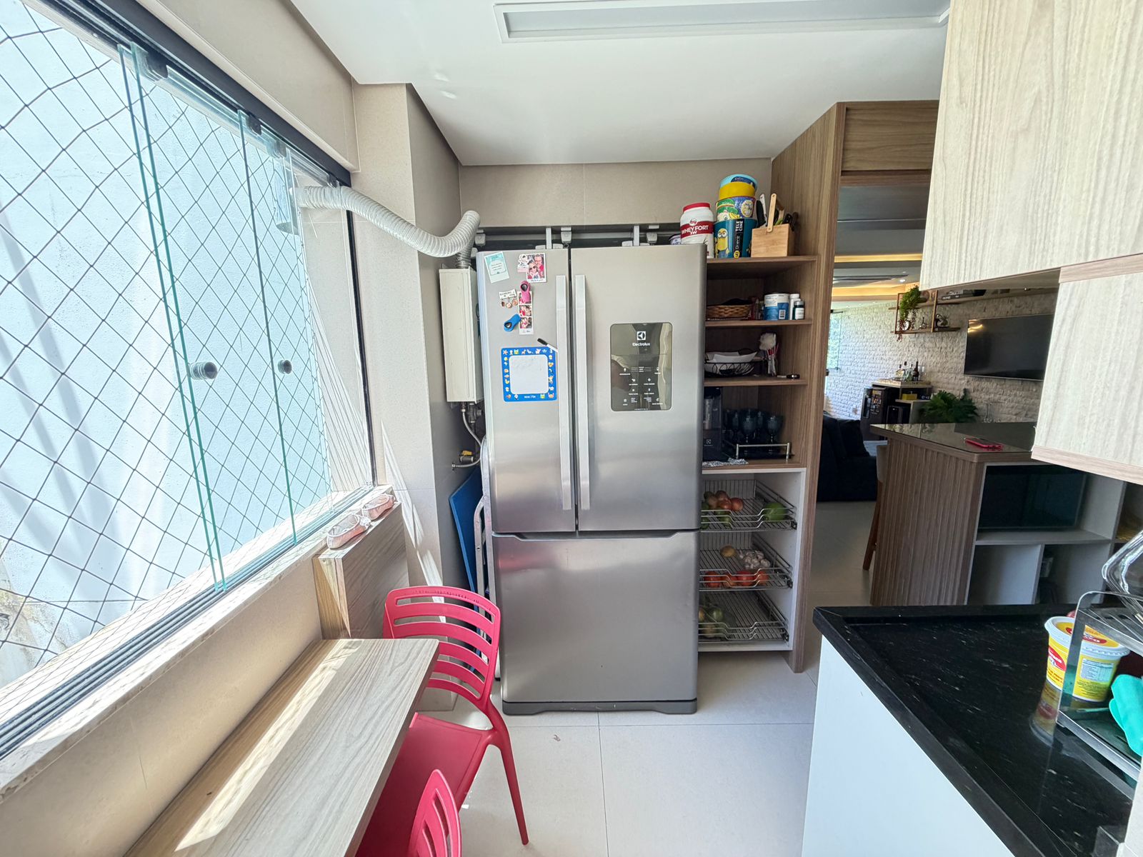Apartamento com planta confortável e ambientes bem distribuídos. Possui varanda incorporada à sala com fechamento em reiki, cozinha americana, banheiro social, área de serviço com banheiro e porta de serviço. Conta ainda com armários em todos os cômodos, ar-condicionado central na sala e nos quartos, rebaixamento em gesso com projeto de iluminação e fechadura eletrônica.