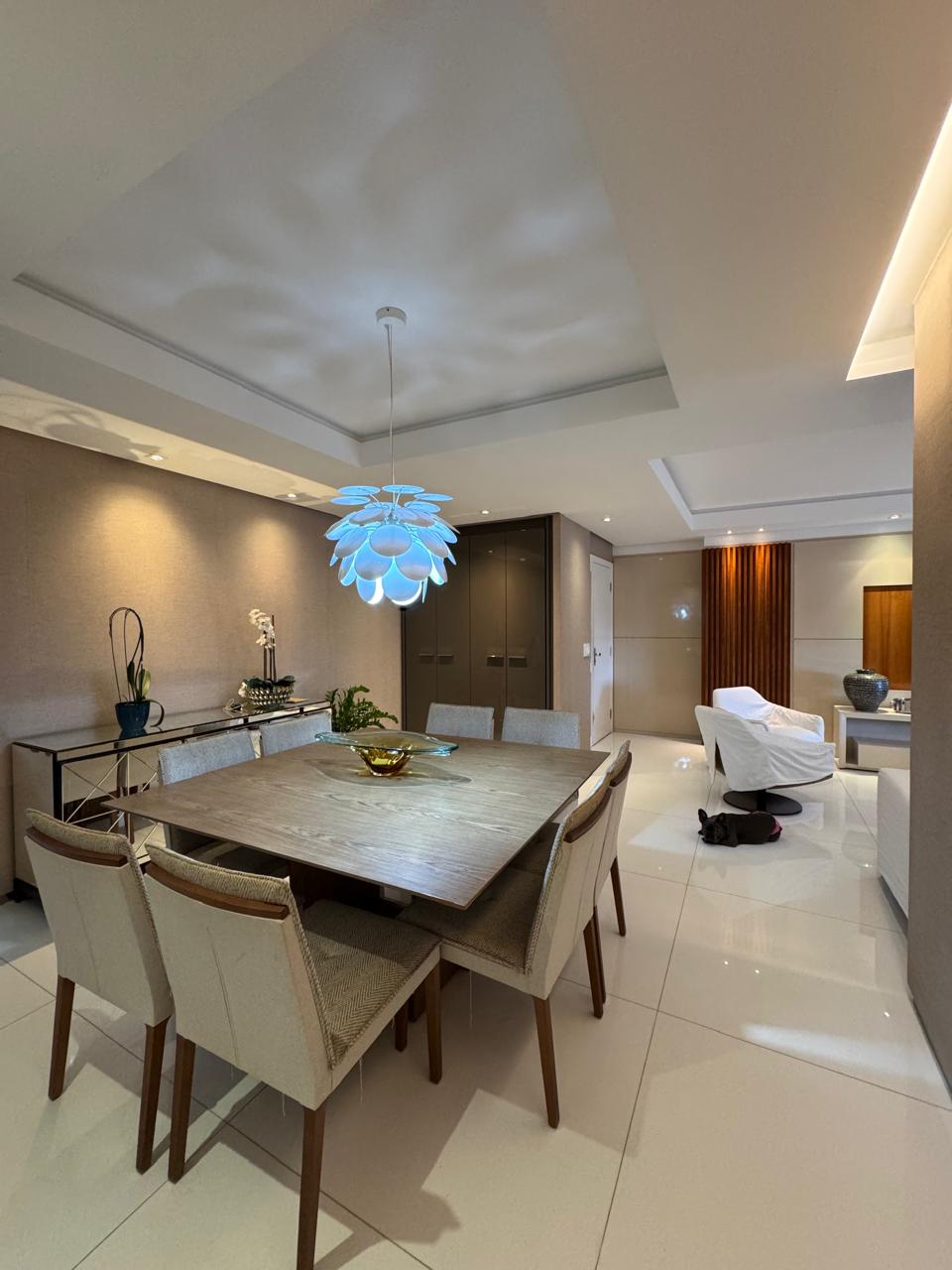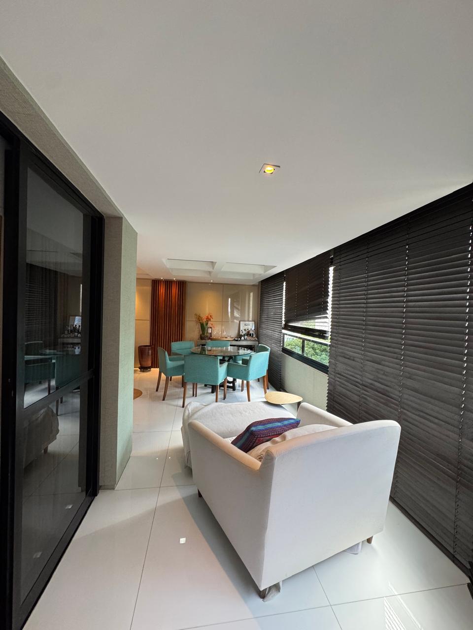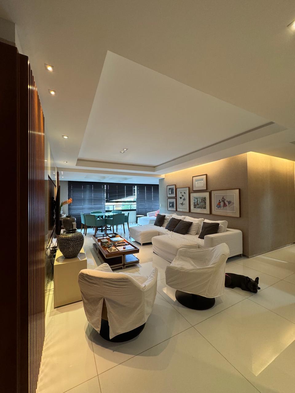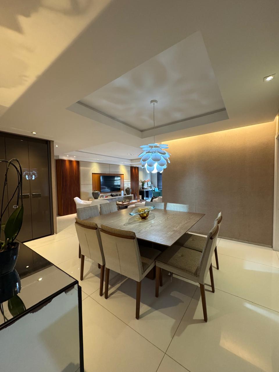 Planta de 4/4 revertida para 3 suítes, master ampliada com closet, varanda incorporada a uma das suítes, varanda gourmet, sala com dois ambientes, cozinha ampliada, área de serviço e dependência completa.