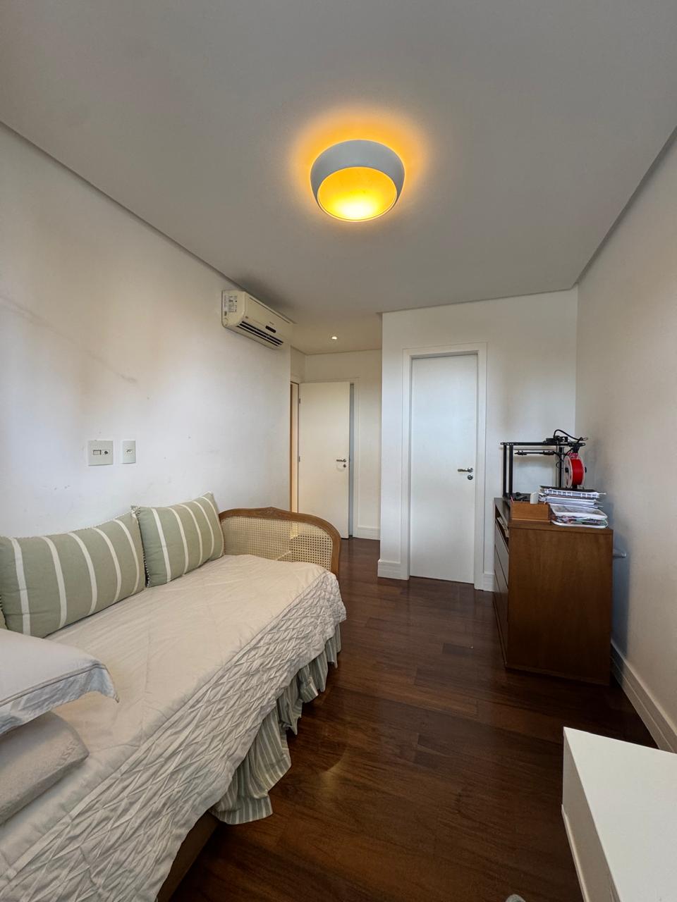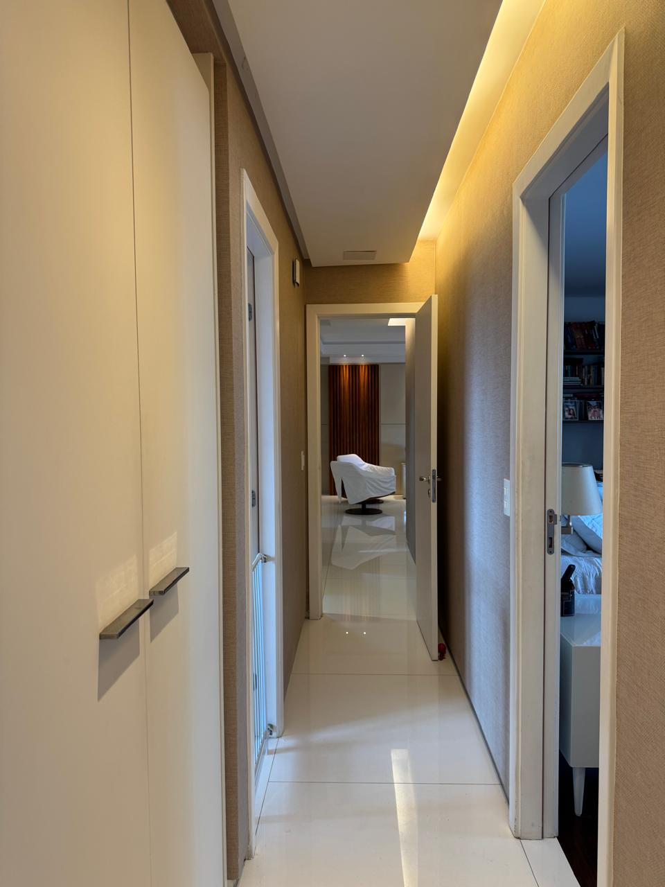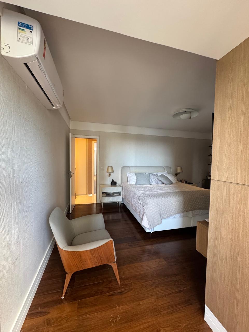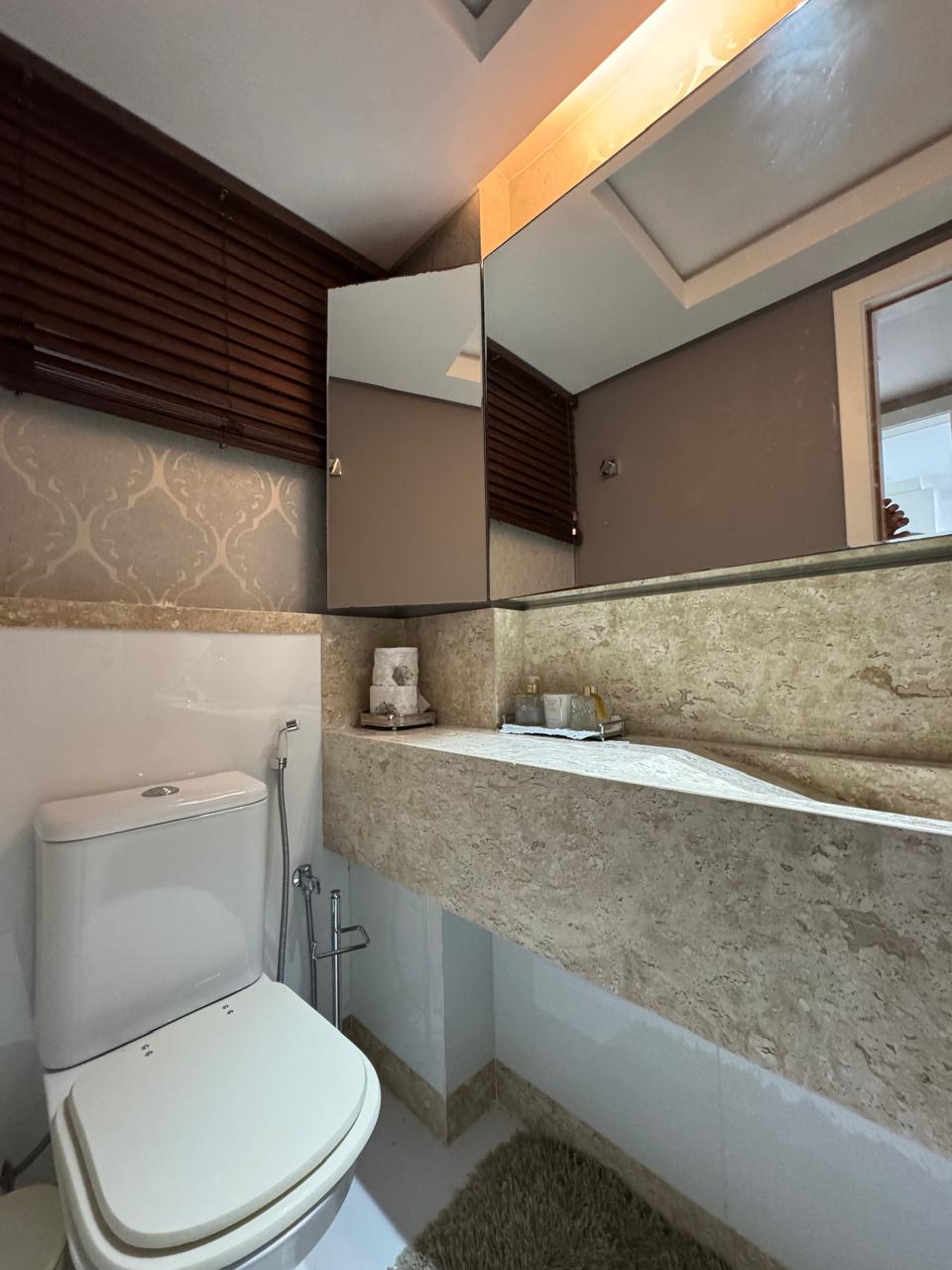 Planta de 4/4 revertida para 3 suítes, master ampliada com closet, varanda incorporada a uma das suítes, varanda gourmet, sala com dois ambientes, cozinha ampliada, área de serviço e dependência completa.