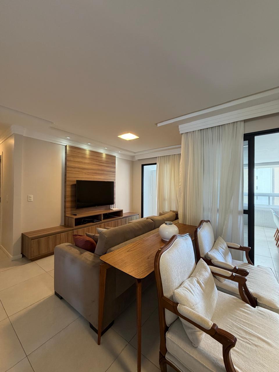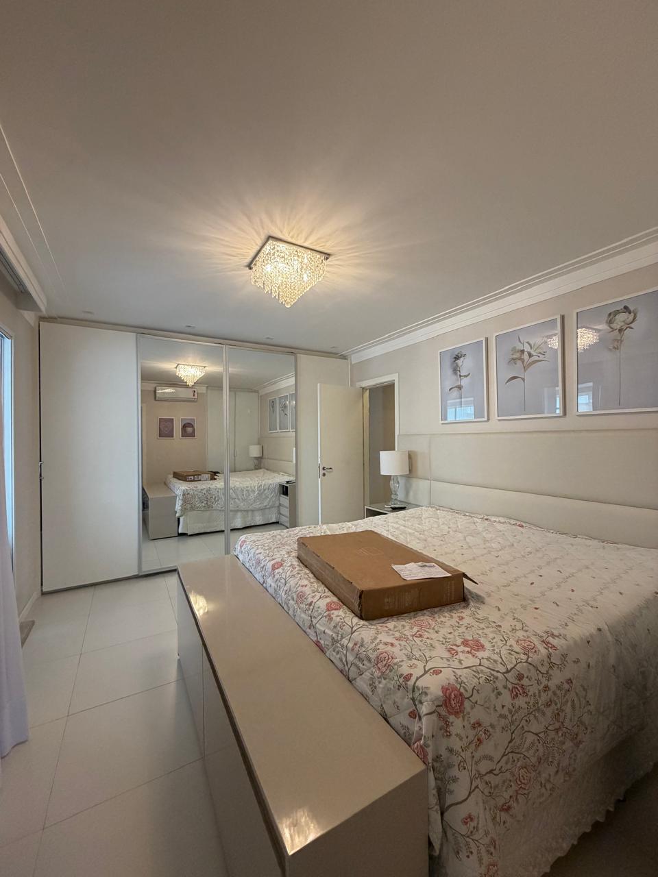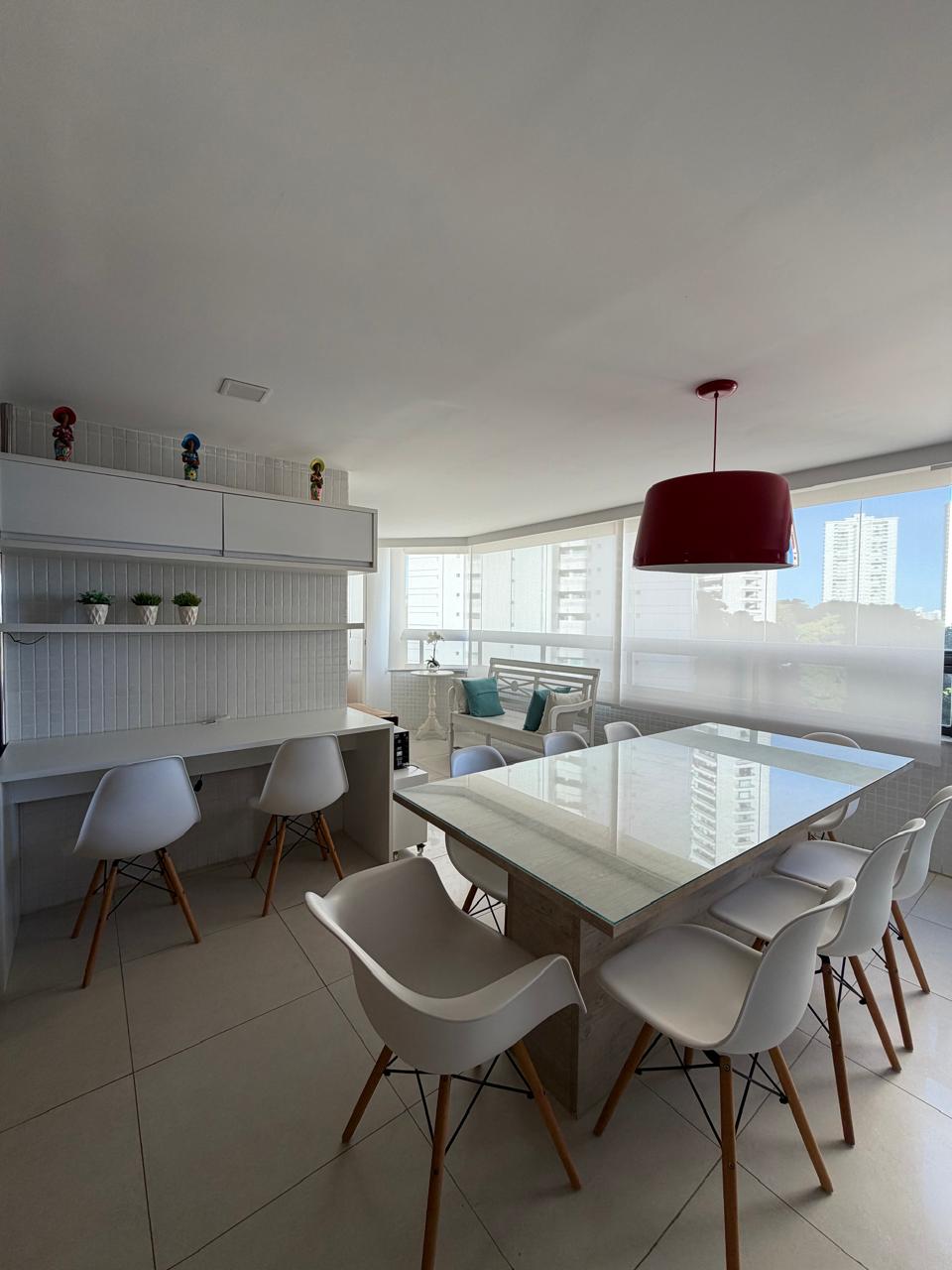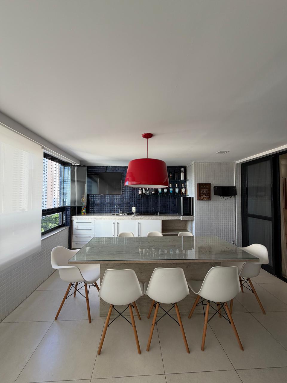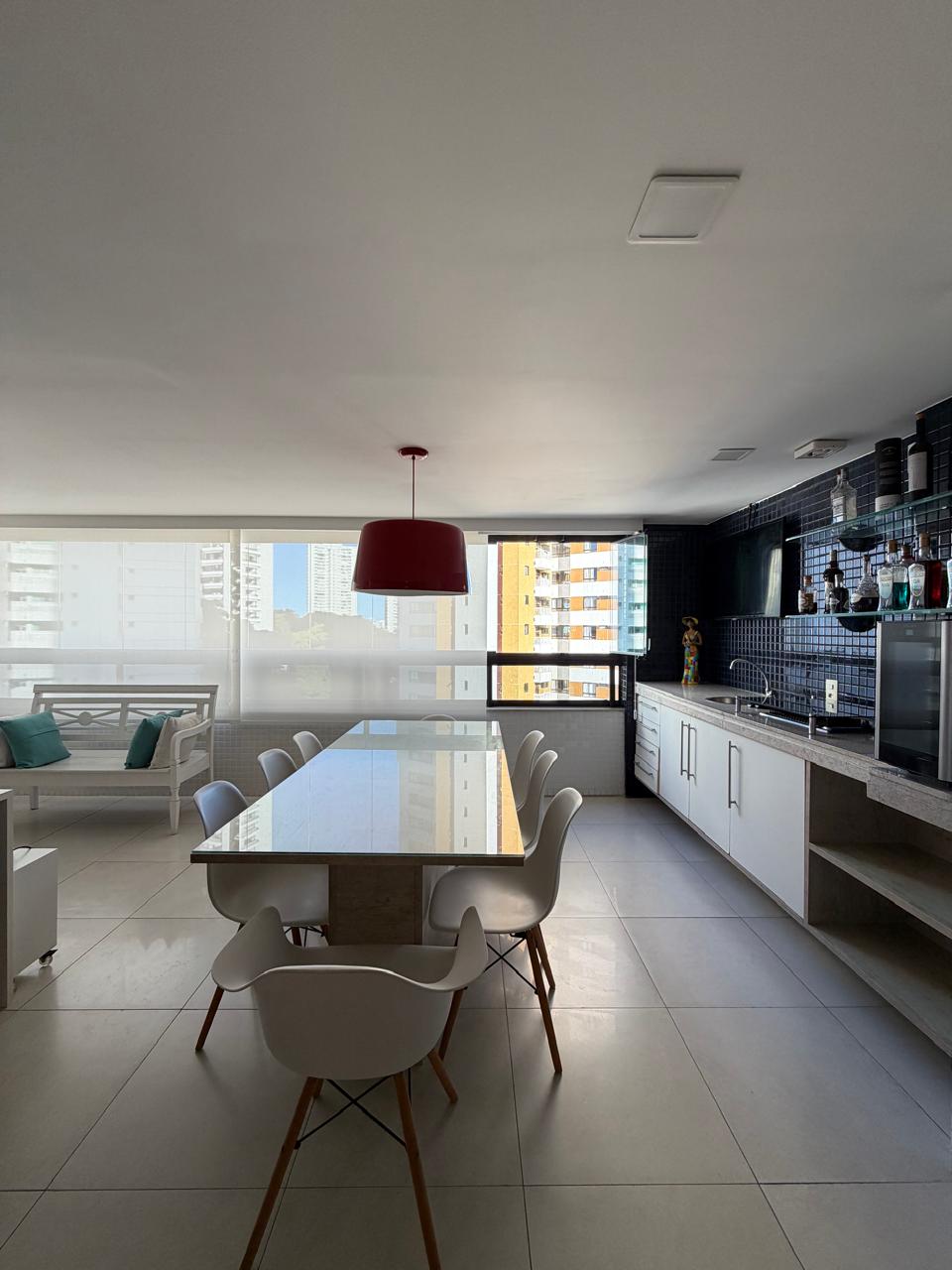 Planta de 4/4 revertida para 3 suítes, living generoso com três ambientes, duas varandas sendo a principal gourmet, e a menor integrada a cozinha com passa prato, área de serviço e dependência completa.