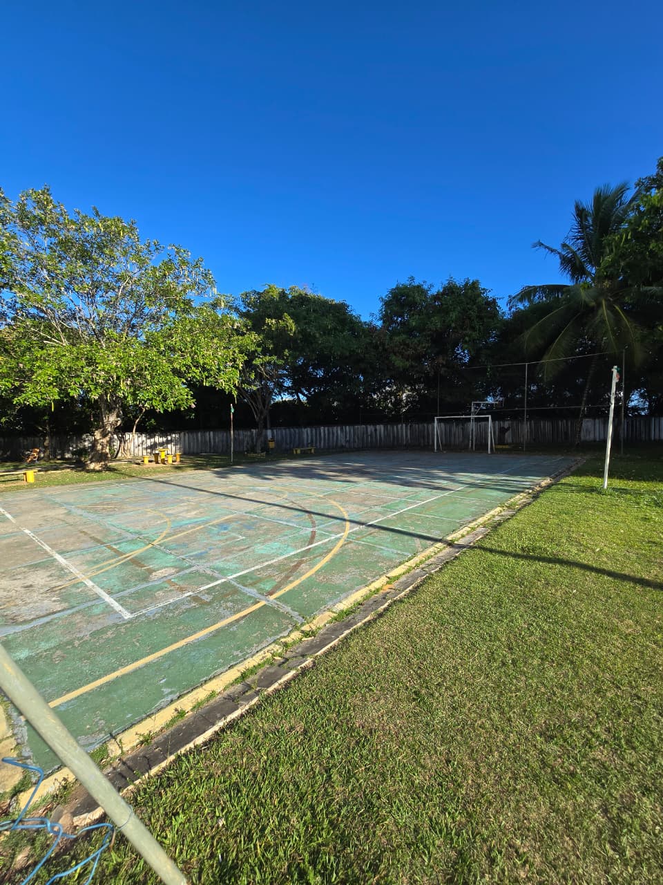 O condomínio conta com um estacionamento sem limite de vagas, portaria 24hs, quadra, parquinho, Área verde, campo, mercadinho e aceita pets.