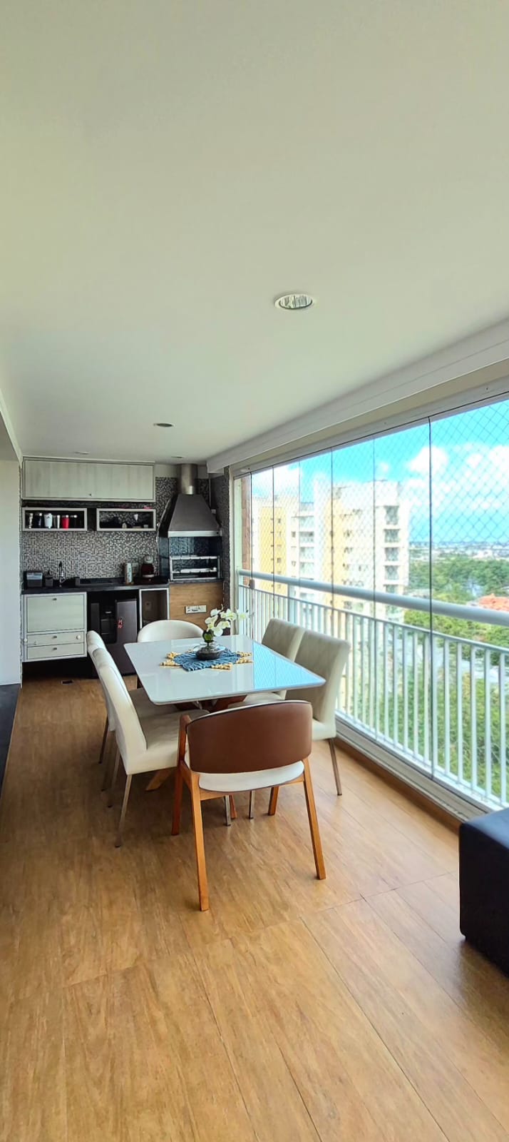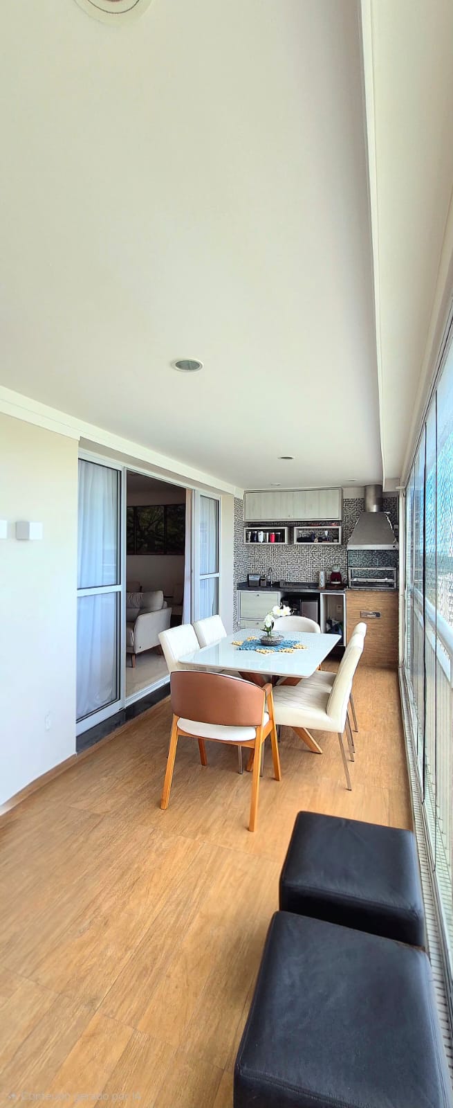 Varanda Gourmet ampla com fechamento em vidro, e churrasqueira a carvão, perfeita para momentos de lazer privativo.