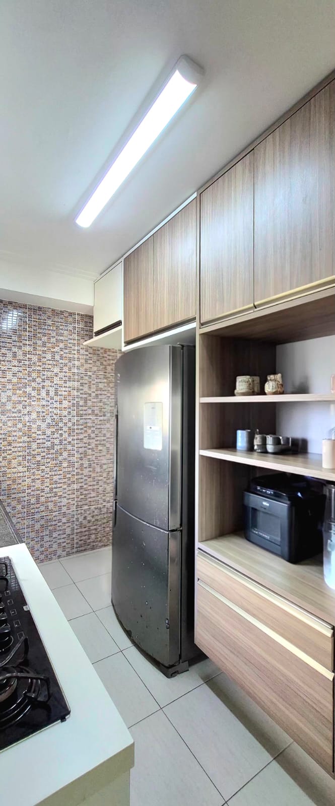Lindo projeto de iluminação, e armários planejados de fino acabamento.