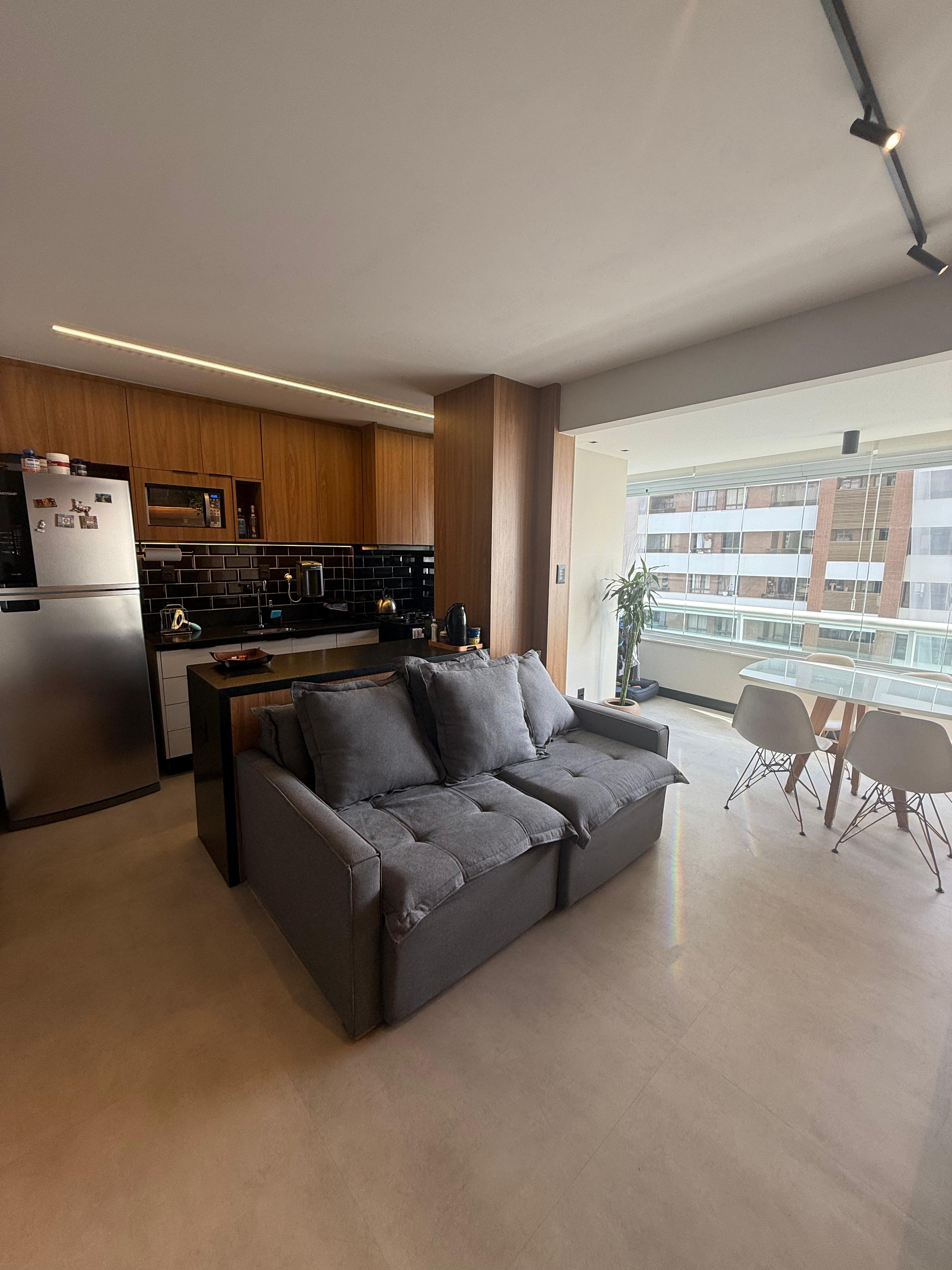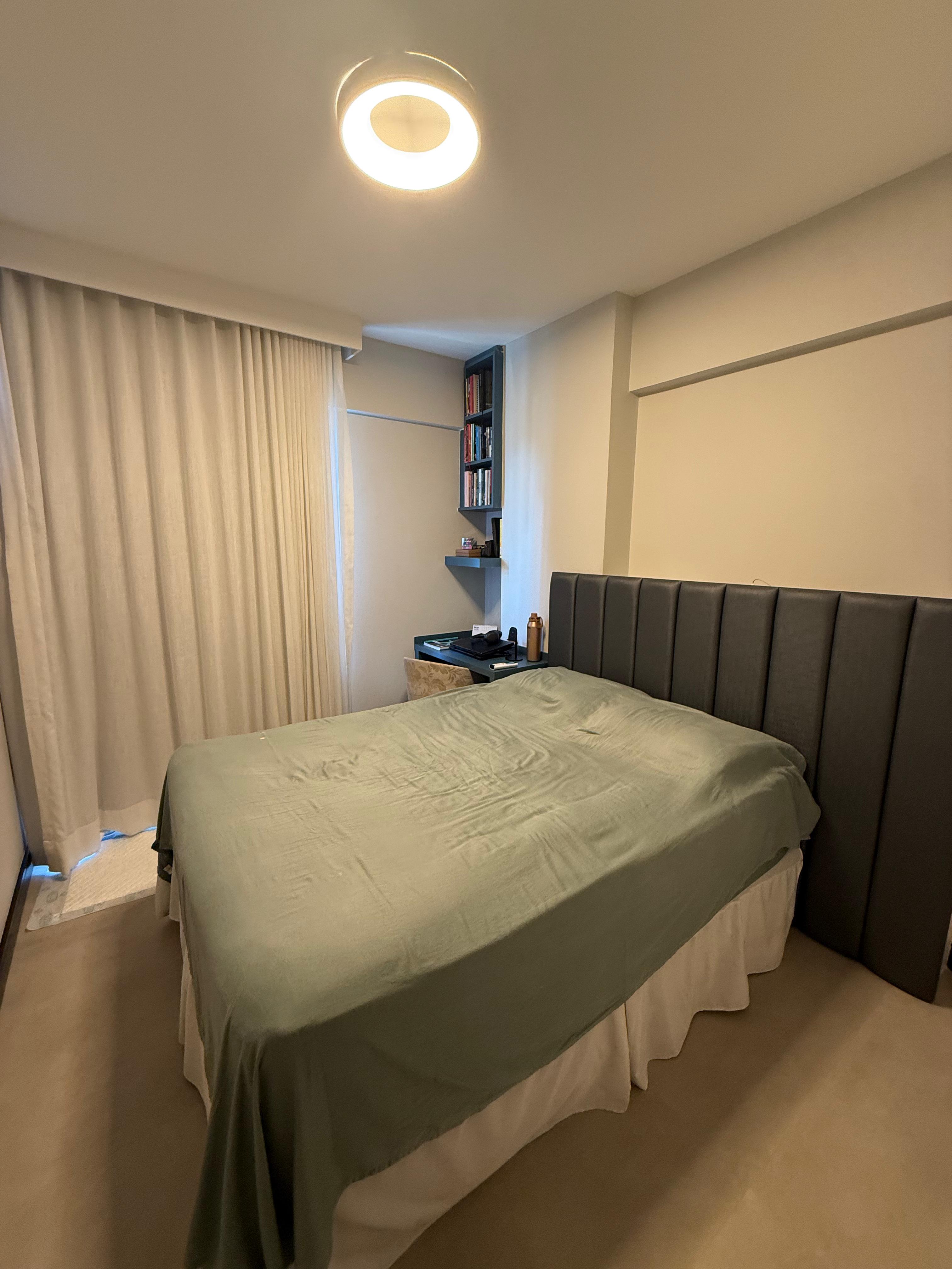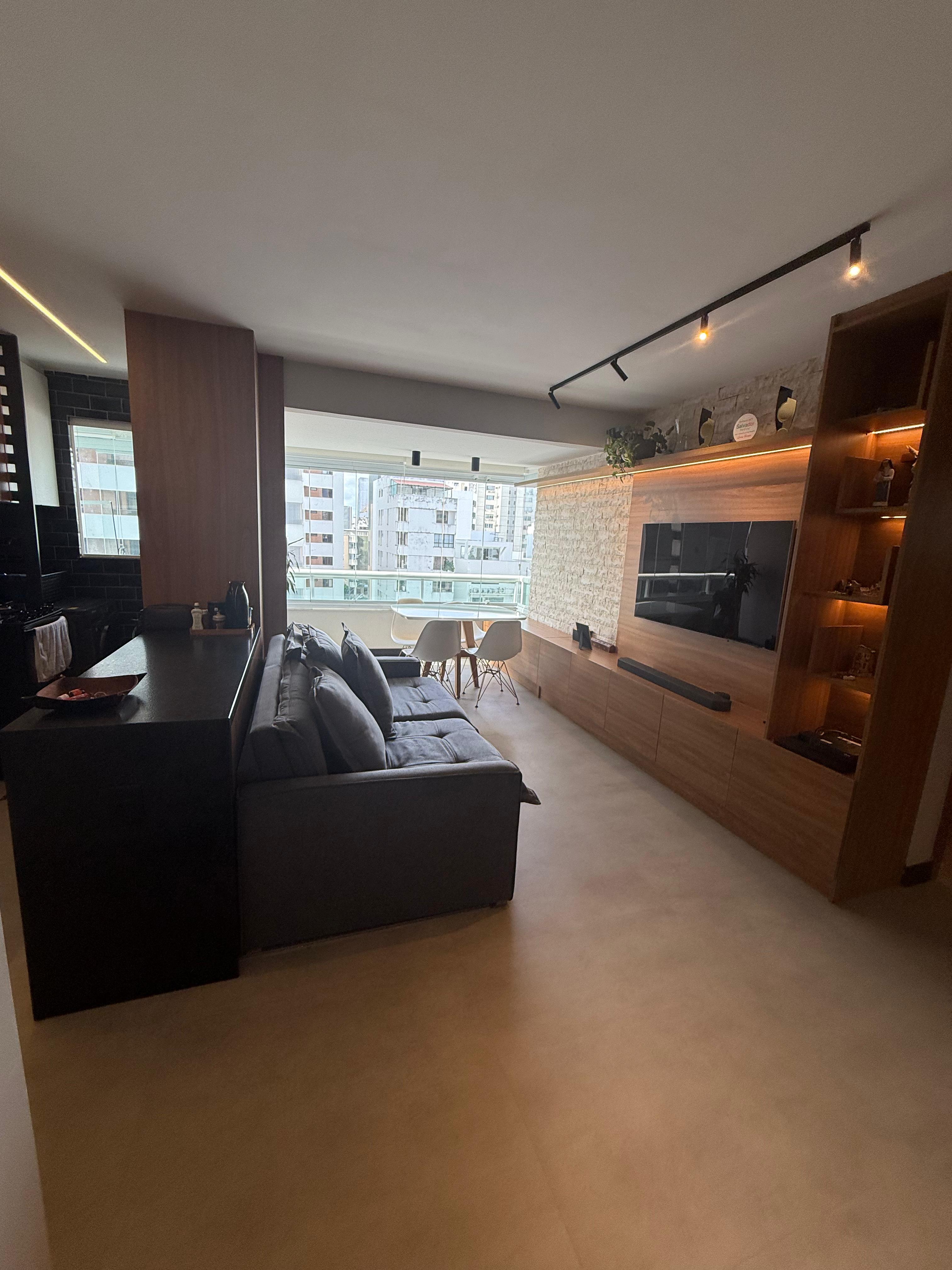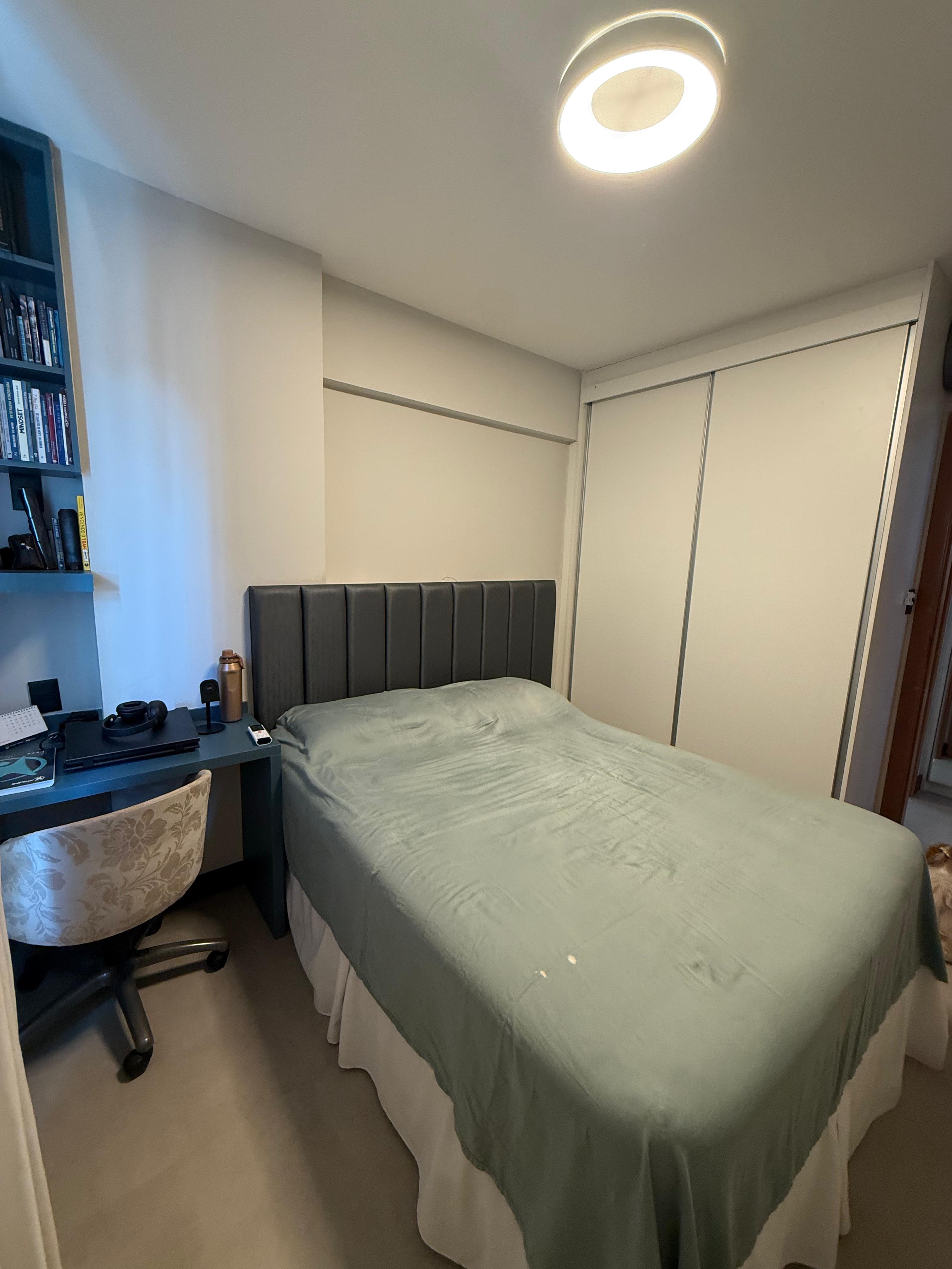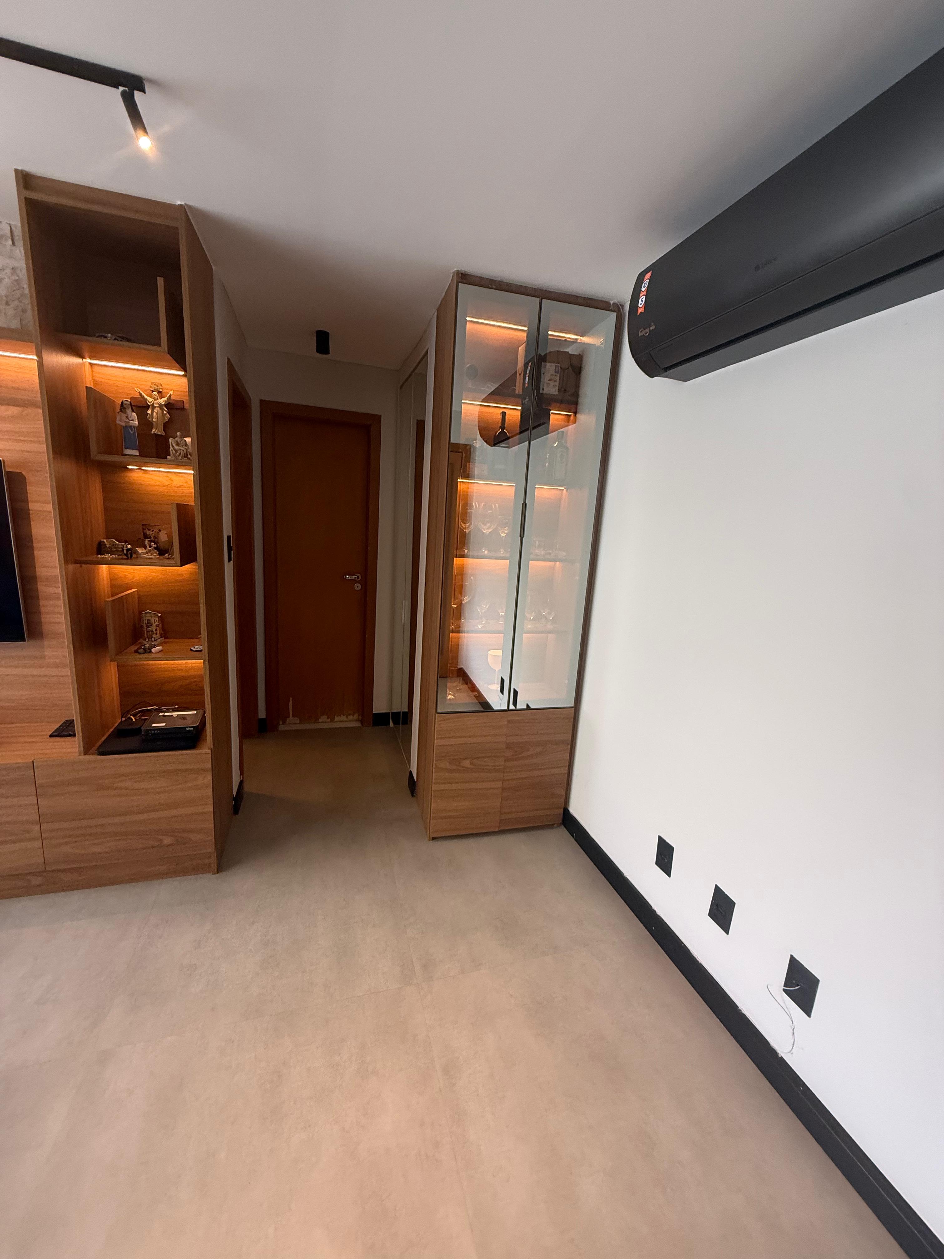 Excelente oportunidade! Quarto e sala decorado, semi mobiliado, com 45m² muito bem distribuídos e varanda incorporada, trazendo mais amplitude e conforto ao ambiente.