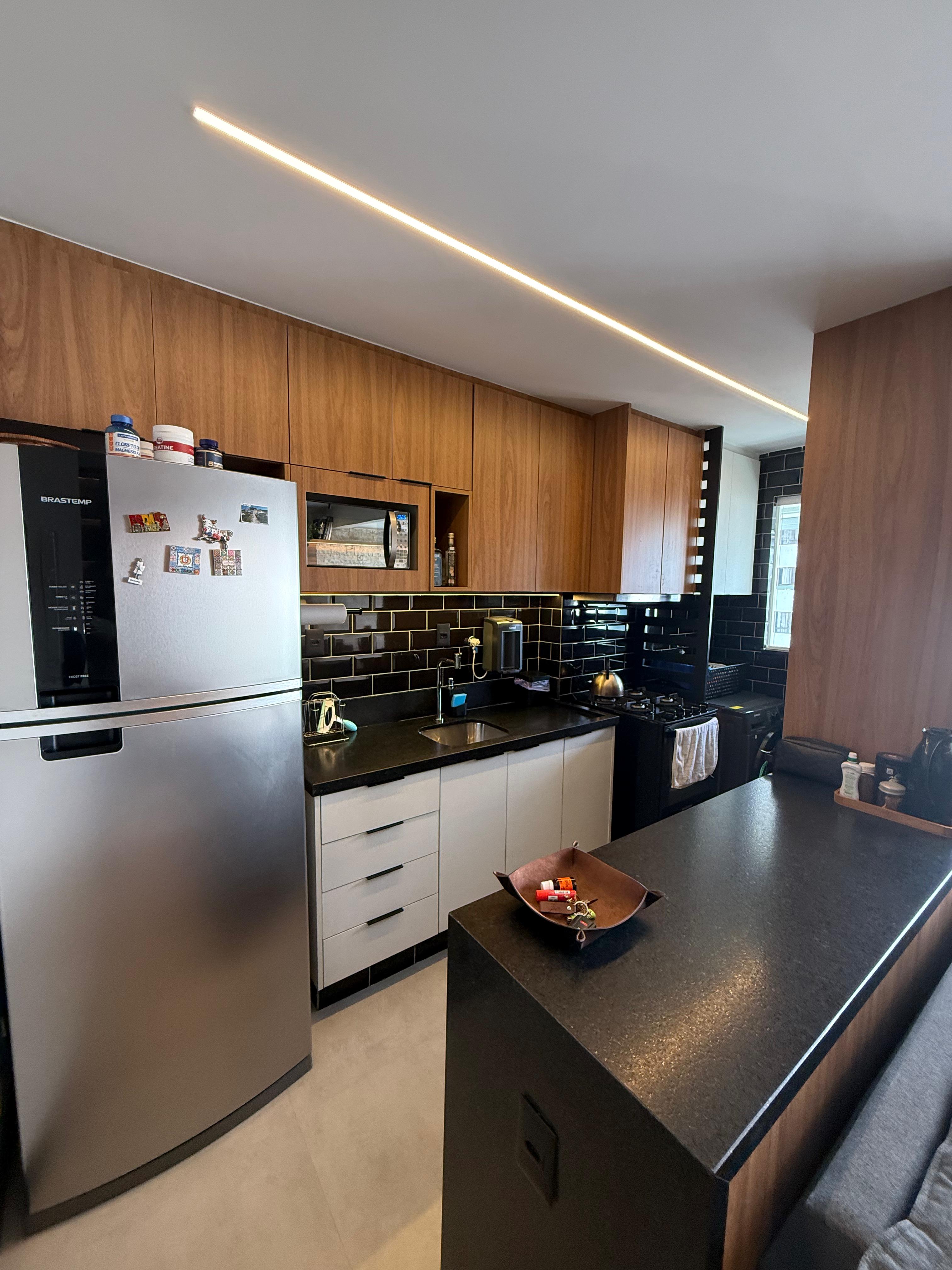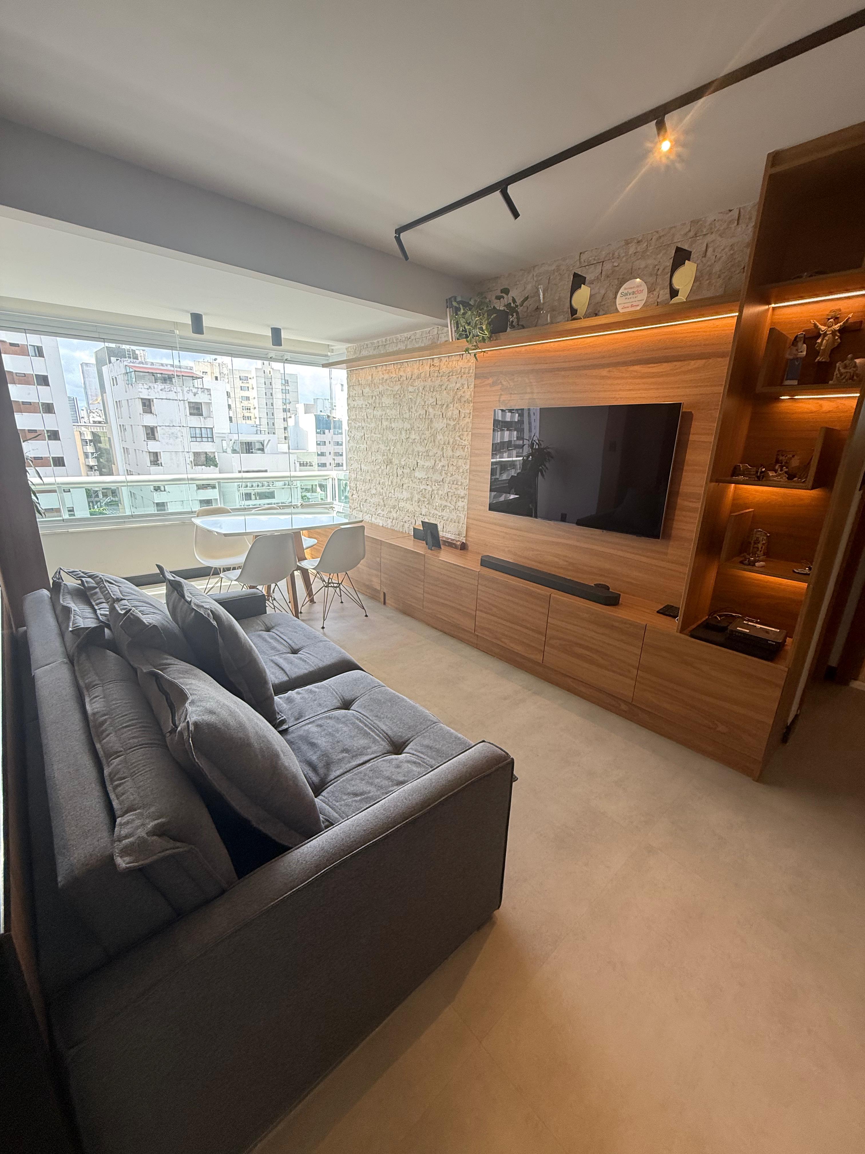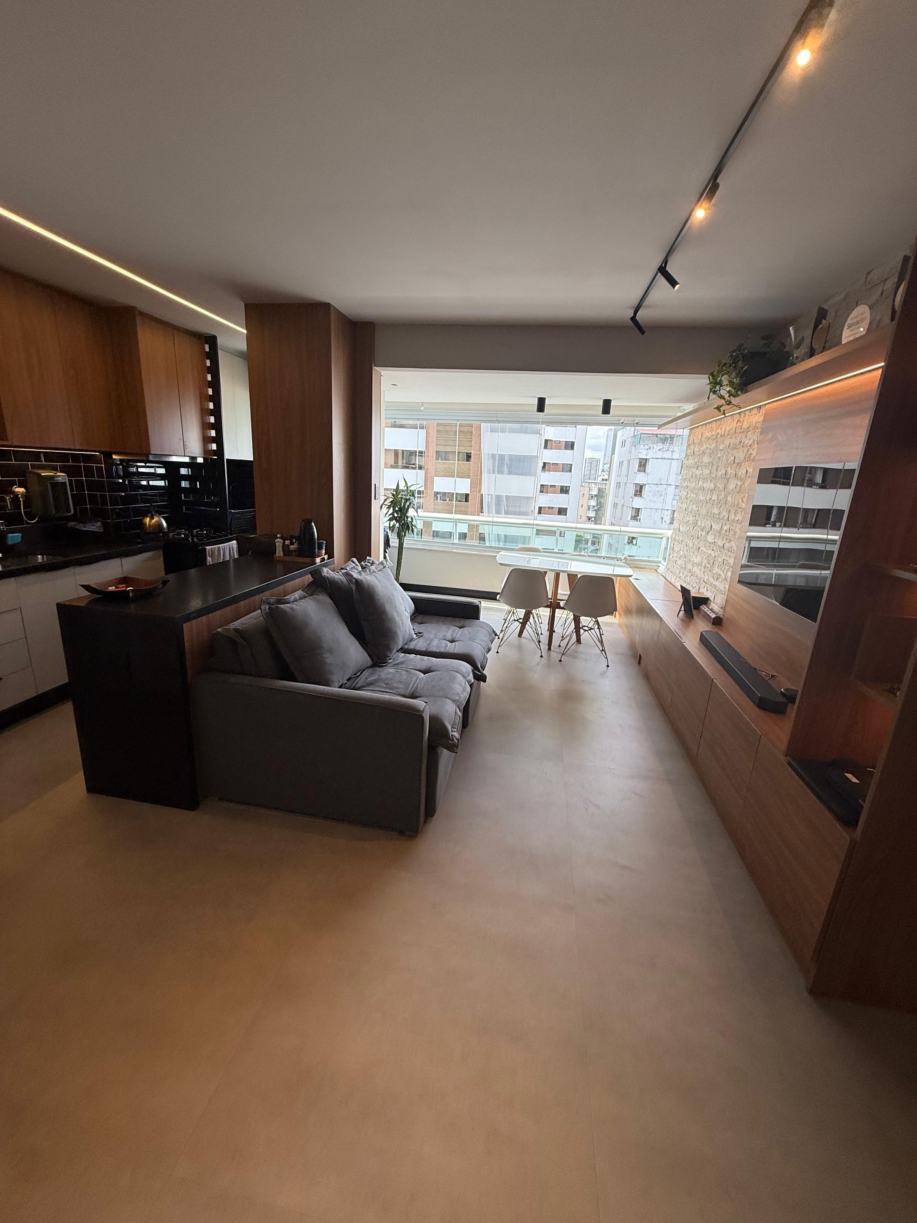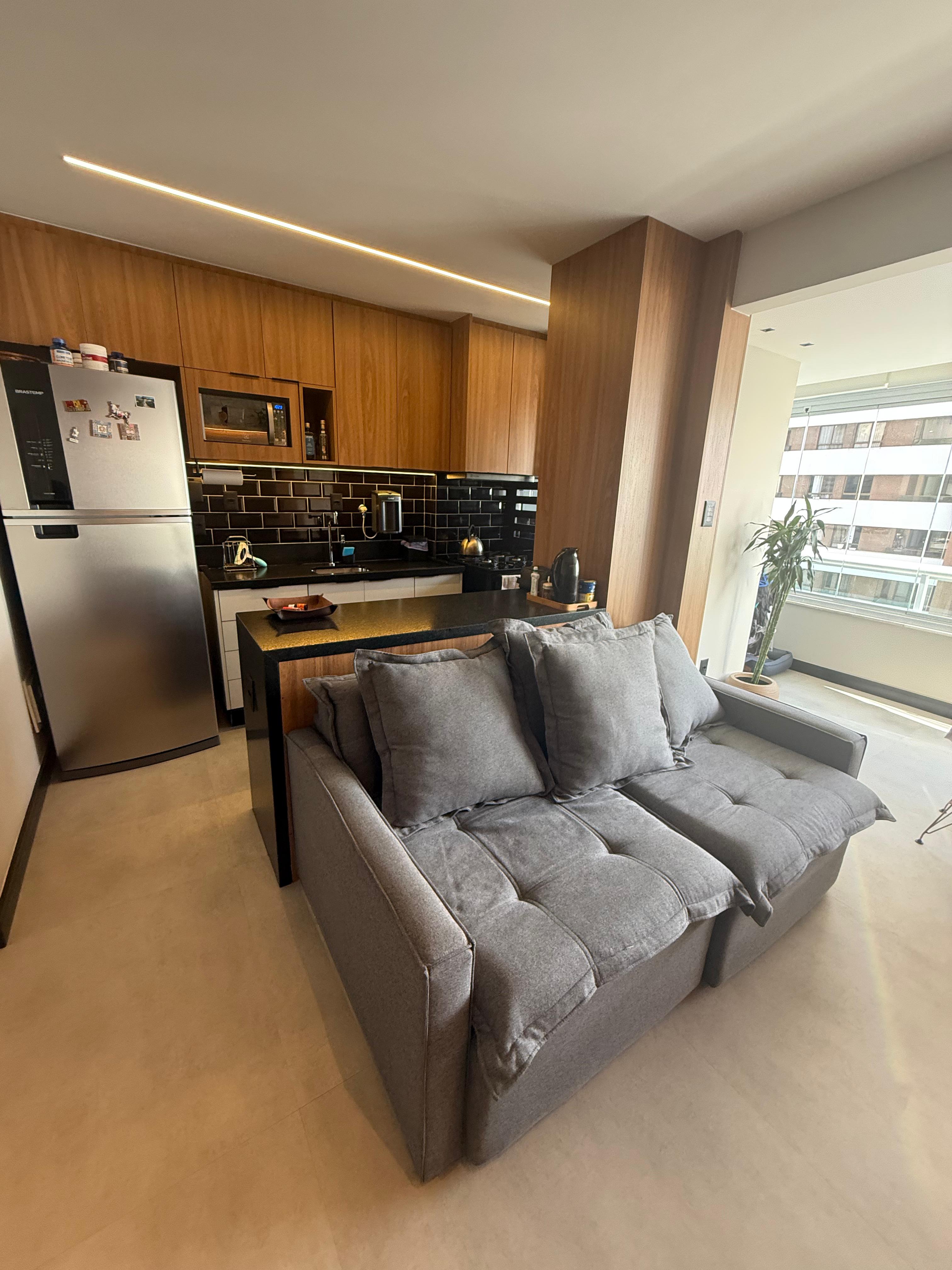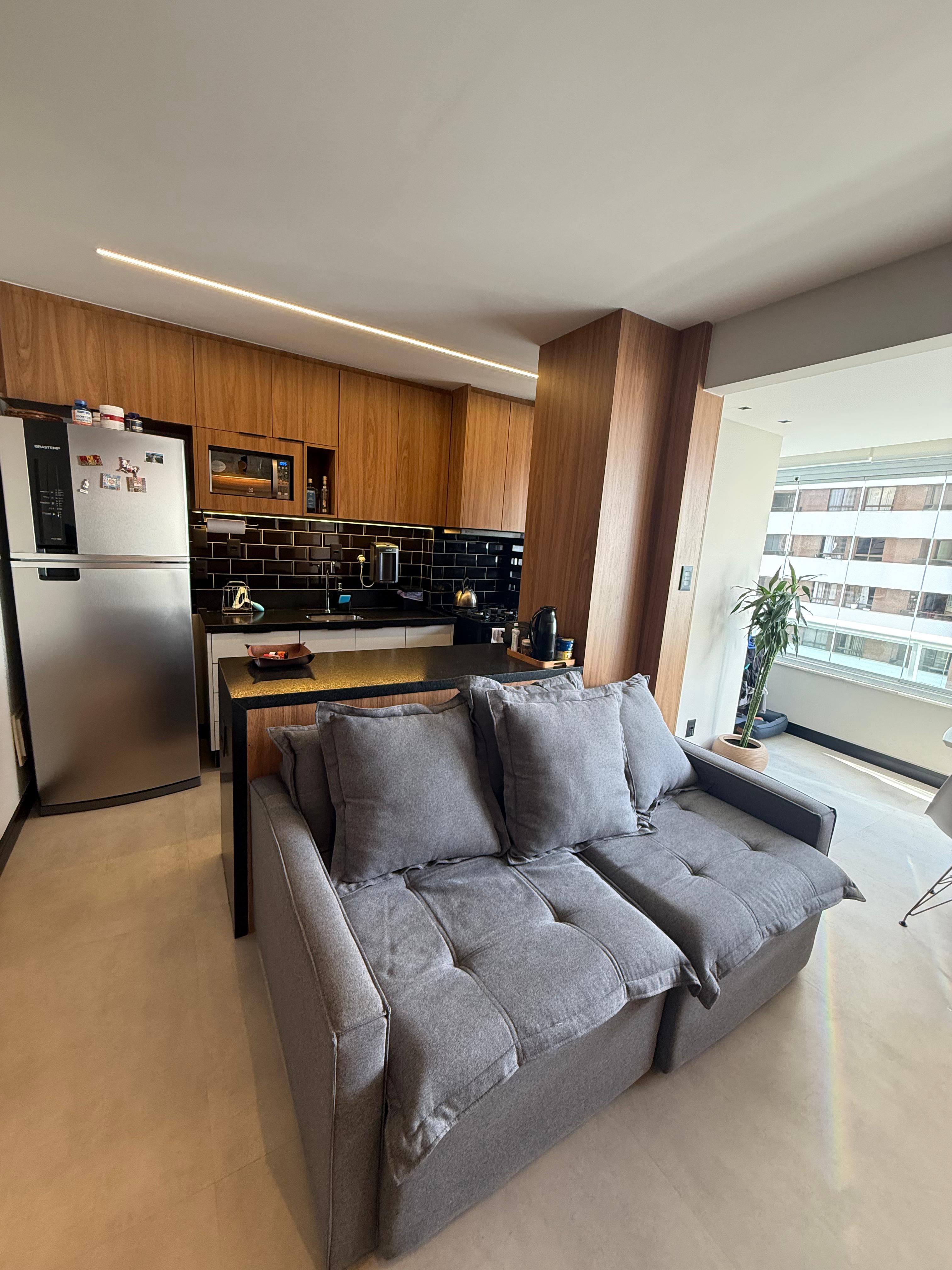 Excelente oportunidade! Quarto e sala decorado, semi mobiliado, com 45m² muito bem distribuídos e varanda incorporada, trazendo mais amplitude e conforto ao ambiente.