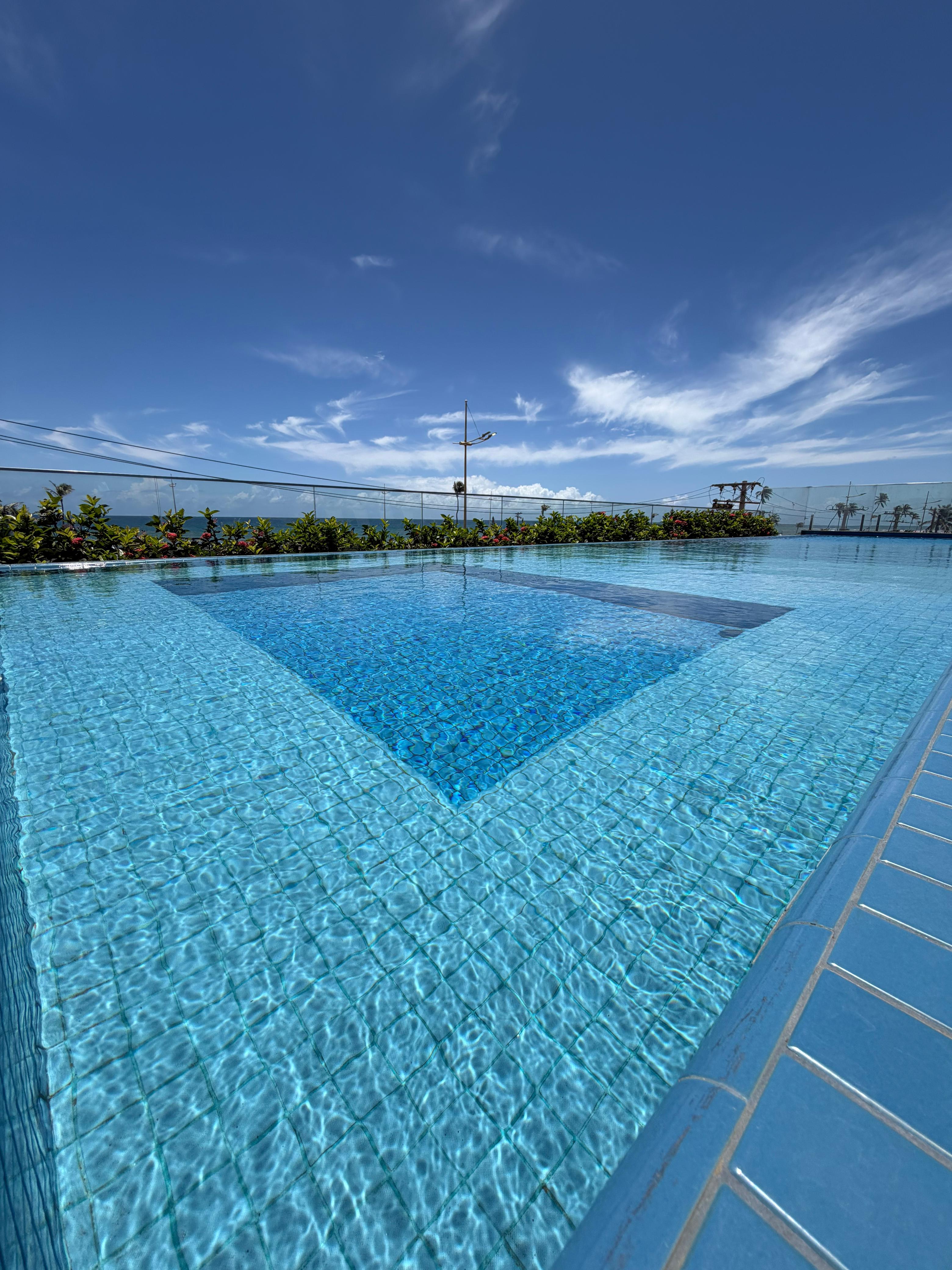 Condomínio dispõe de: piscina com borda infinita, brinquedoteca, salão de festas, academia com vista mar, sauna, churrasqueira, guarderia de prancha, portaria 24h e mais.
