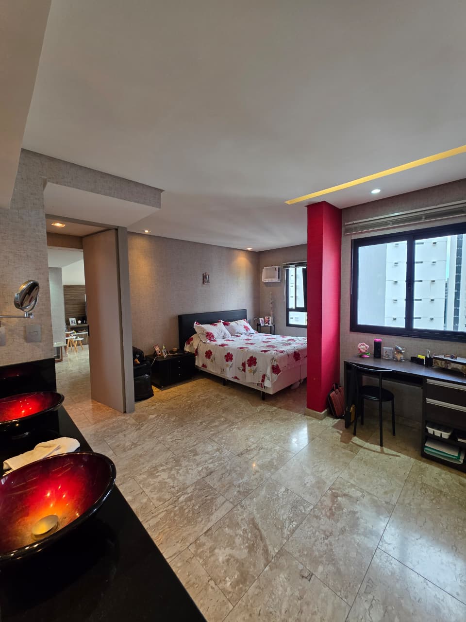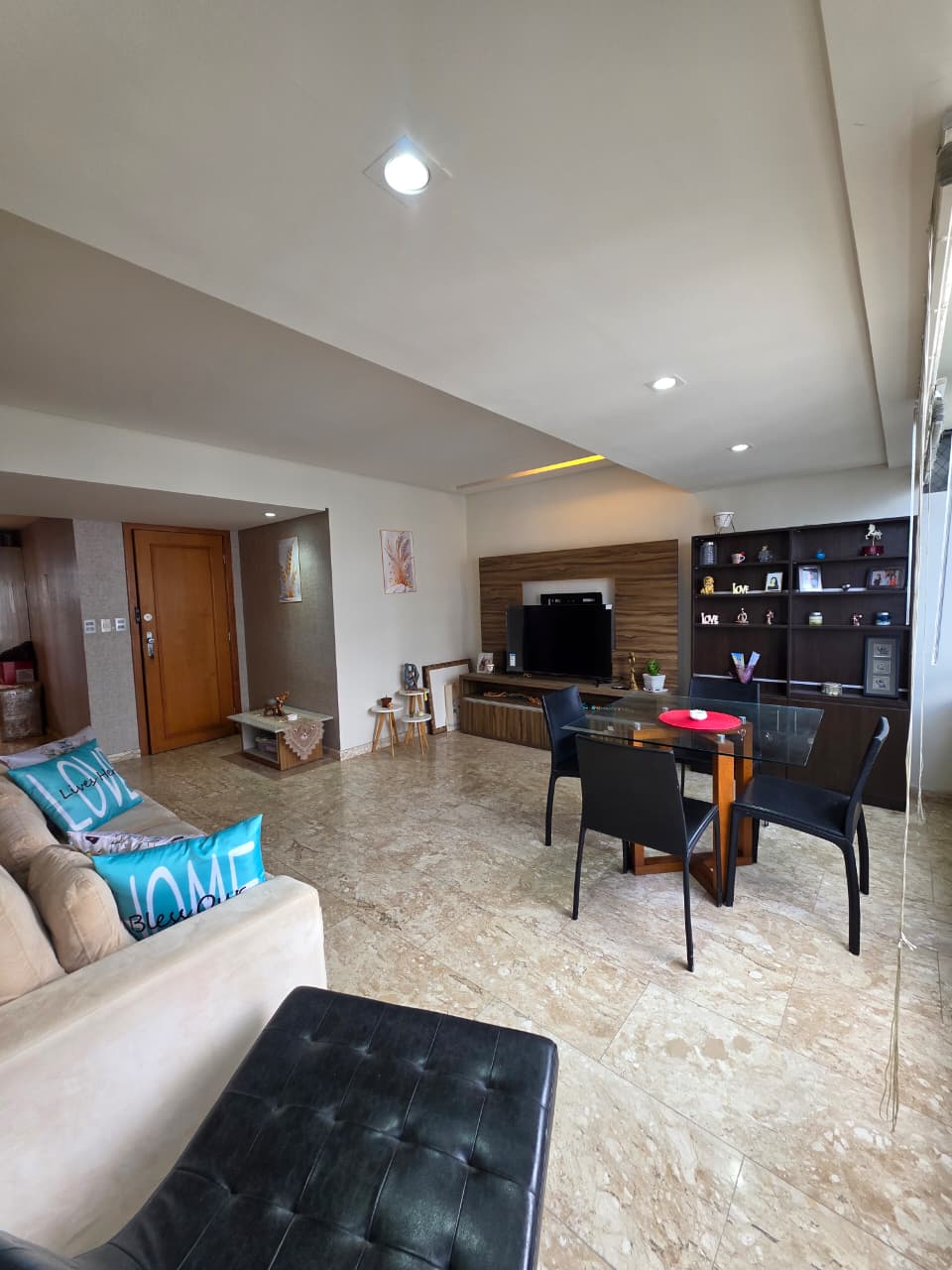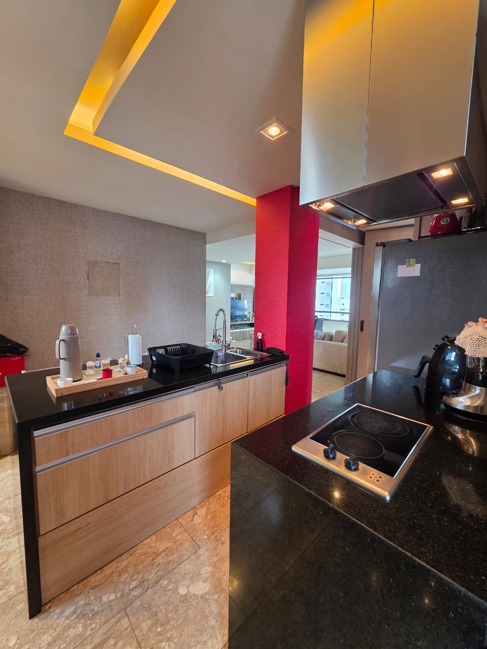 Quarto e Sala, de 74m², planta original de 2/4 + dependência, totalmente reformado, decorado, andar alto, nascente, ventilado, varanda incorporada a sala, piso Bege Bahia, lavabo, cozinha americana, 1 vaga de garagem.