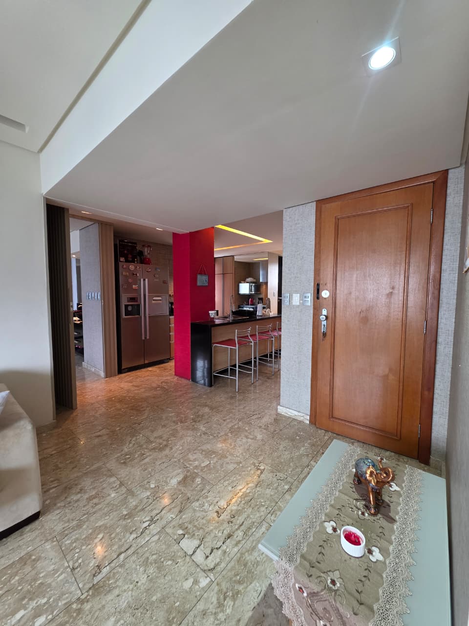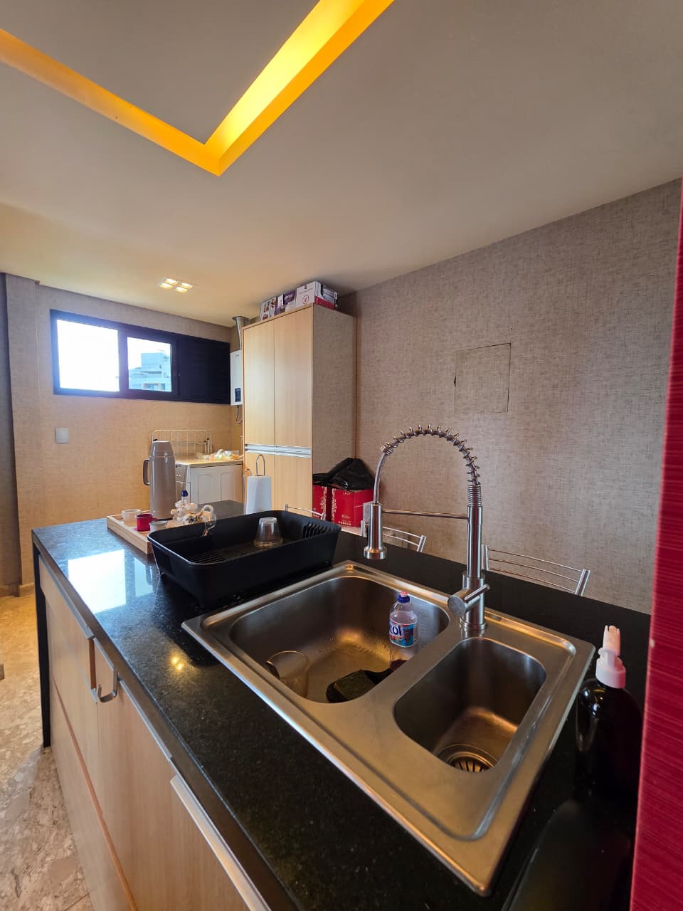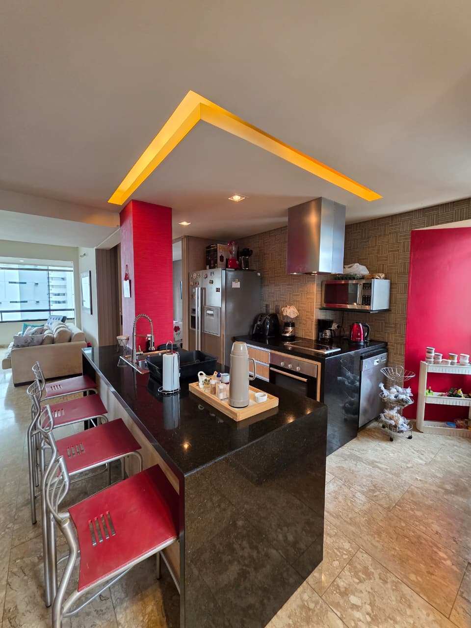 Quarto e Sala, de 74m², planta original de 2/4 + dependência, totalmente reformado, decorado, andar alto, nascente, ventilado, varanda incorporada a sala, piso Bege Bahia, lavabo, cozinha americana, 1 vaga de garagem.