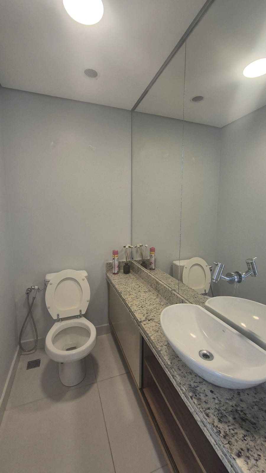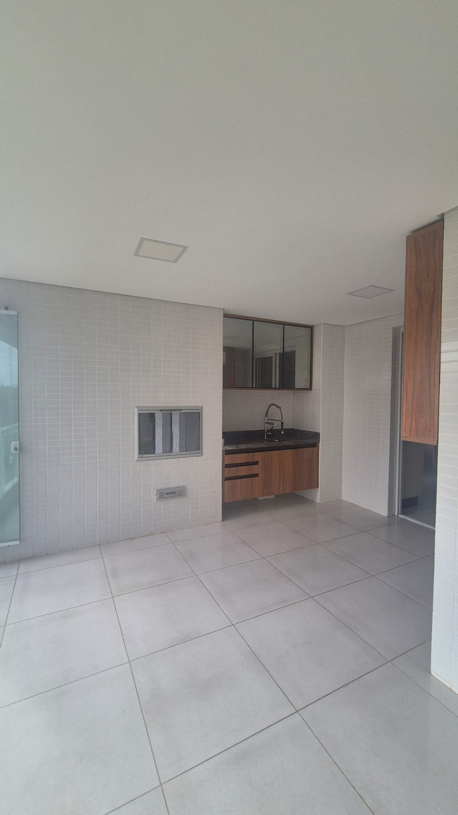 Acabamentos de alto padrão, com piso em porcelanato e iluminação projetada