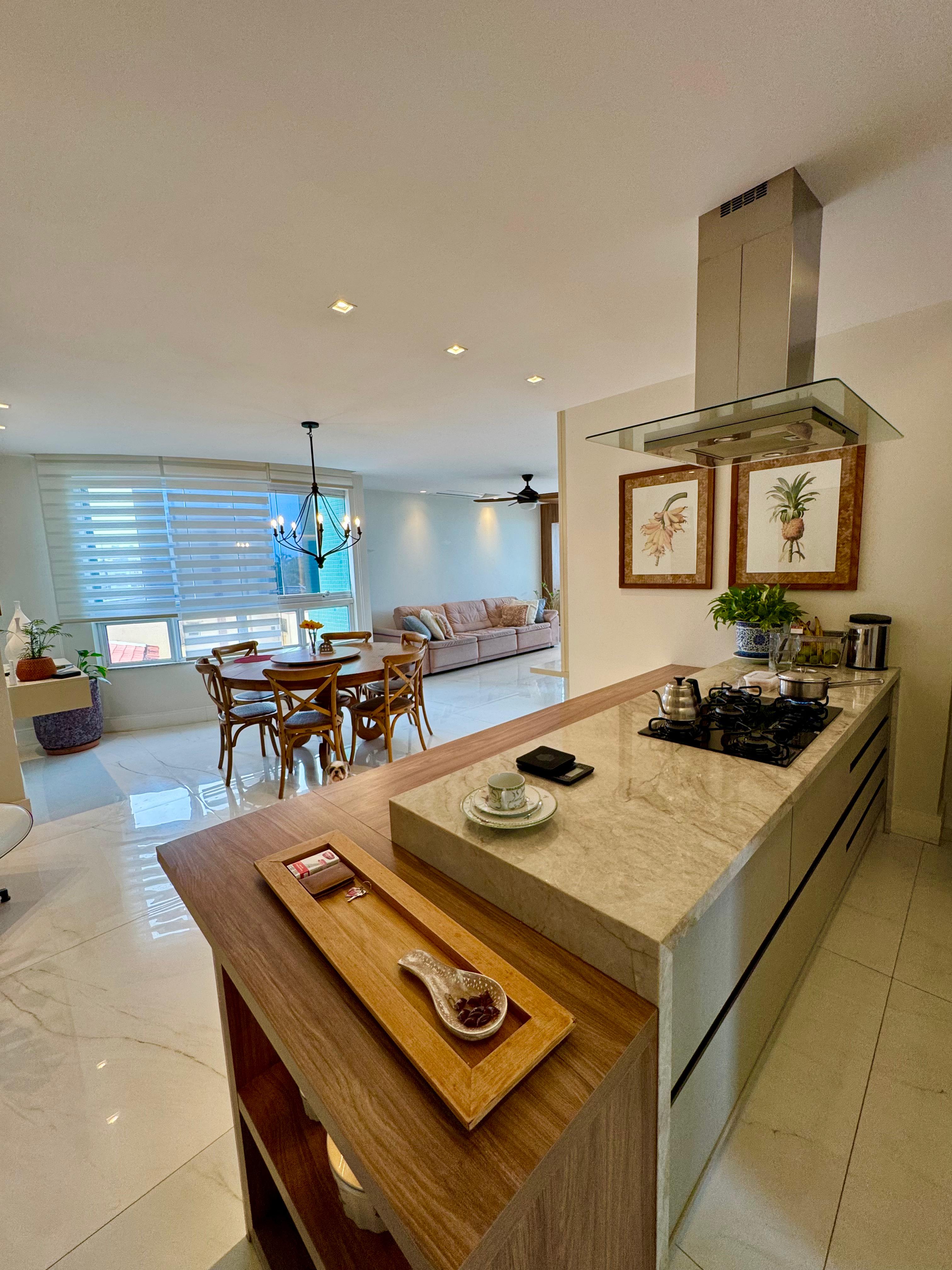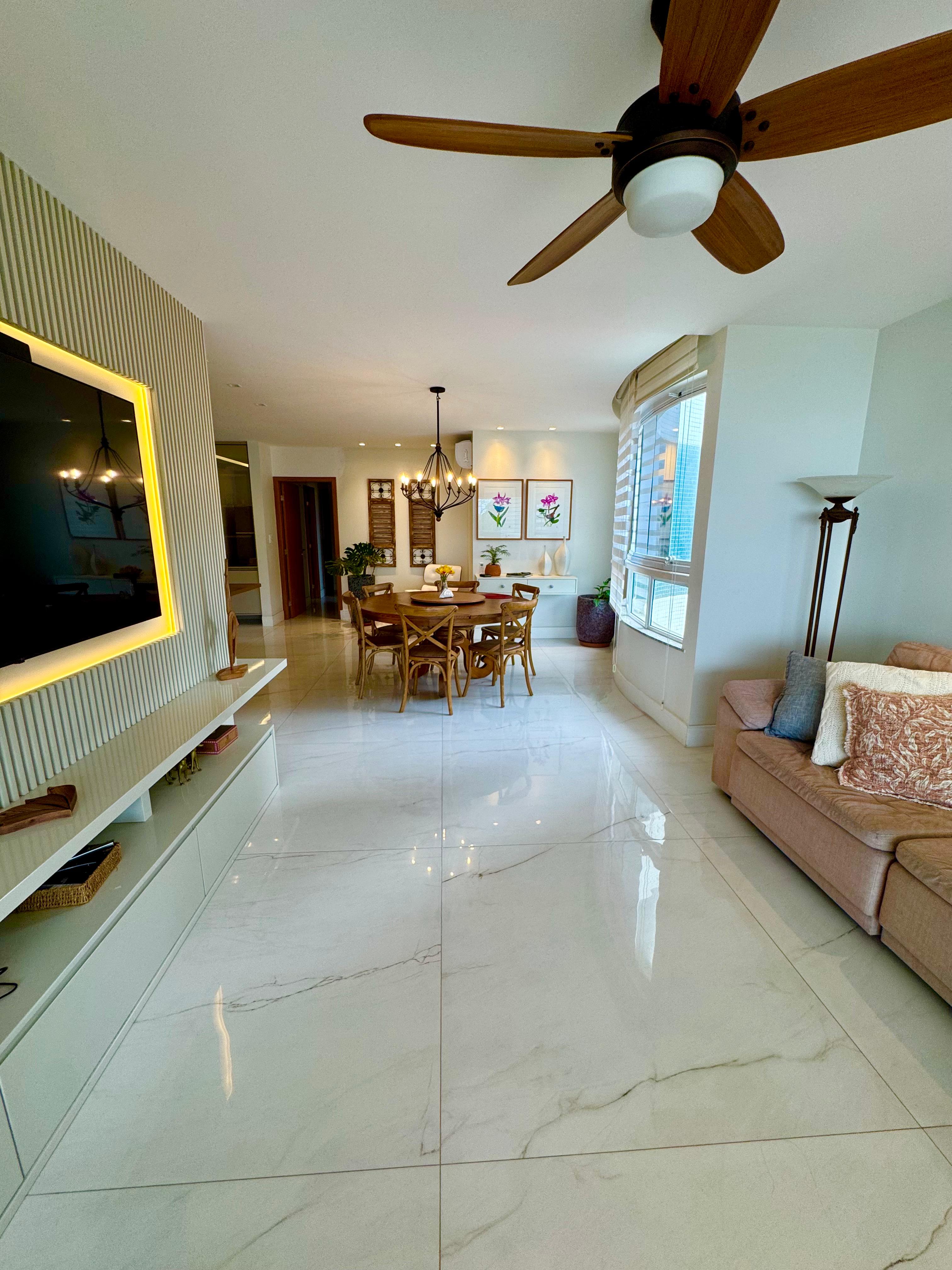 Vendo apartamento todo reformado, vista mar frontal, 185m², 4 suítes, 1 por andar, nascente, andar baixo, com infraestrutura de lazer completa.