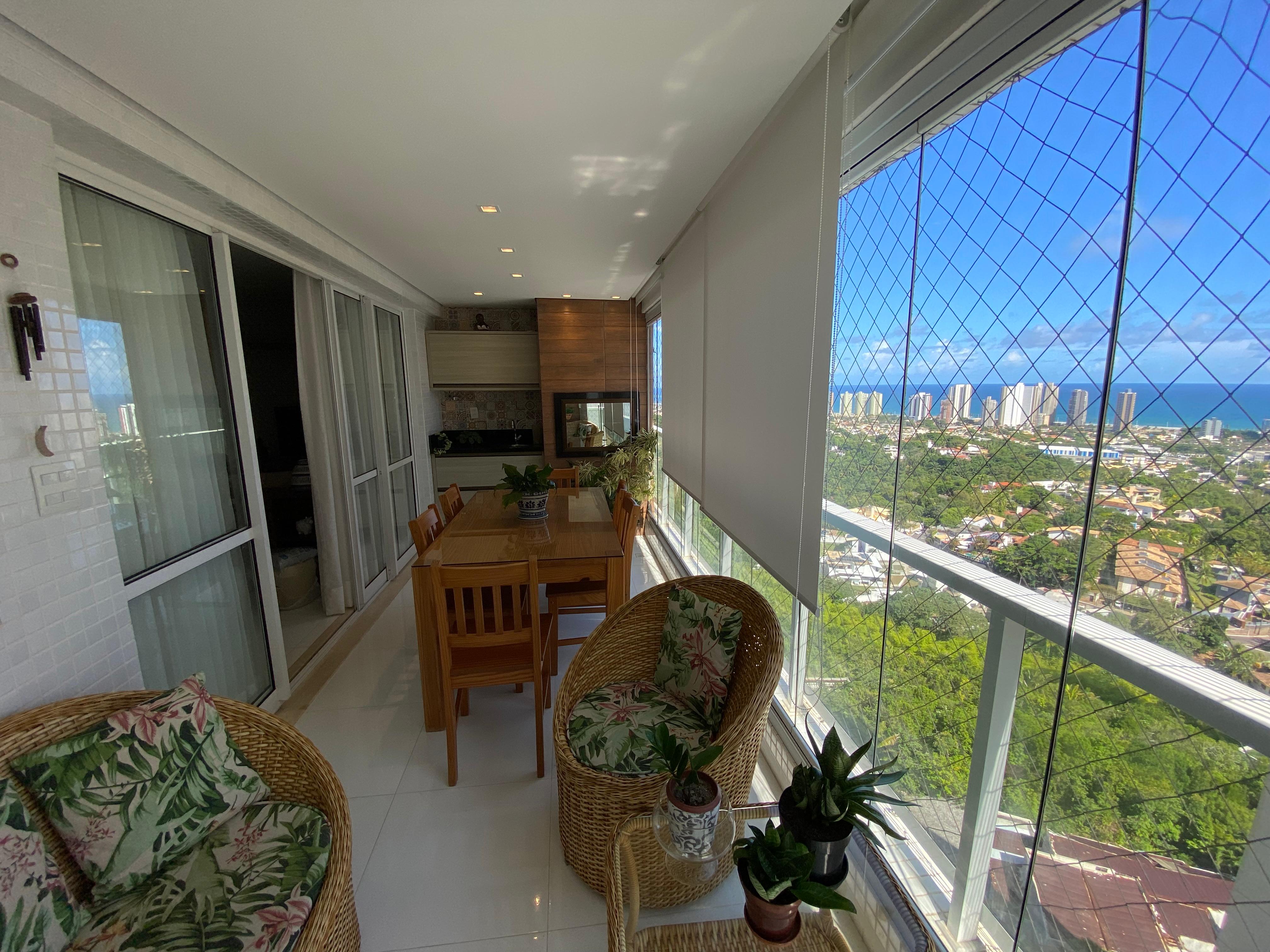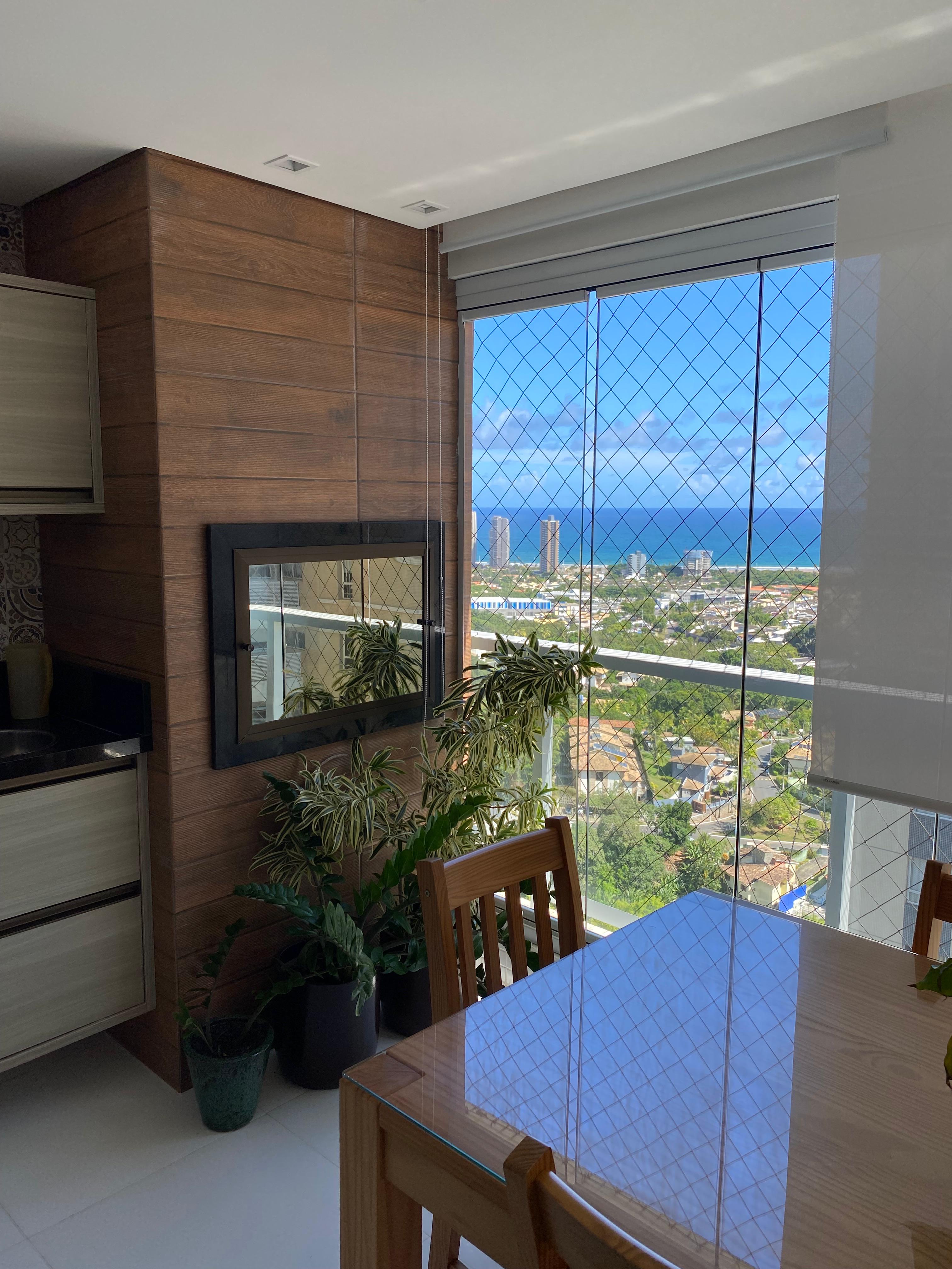 Apartamento nascente, andar alto, vista mar, 110m, 03 quartos sendo 01 suíte, home office, cozinha com área de serviço ampliada, lavabo, varanda gourmet com churrasqueira, armários embutidos em todos os ambientes, teto rebaixado com o projeto de iluminação, 02 vagas .