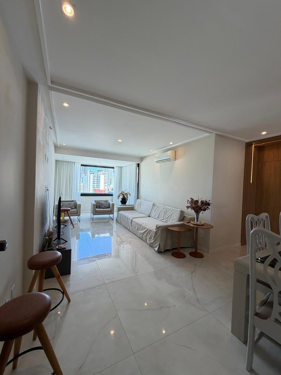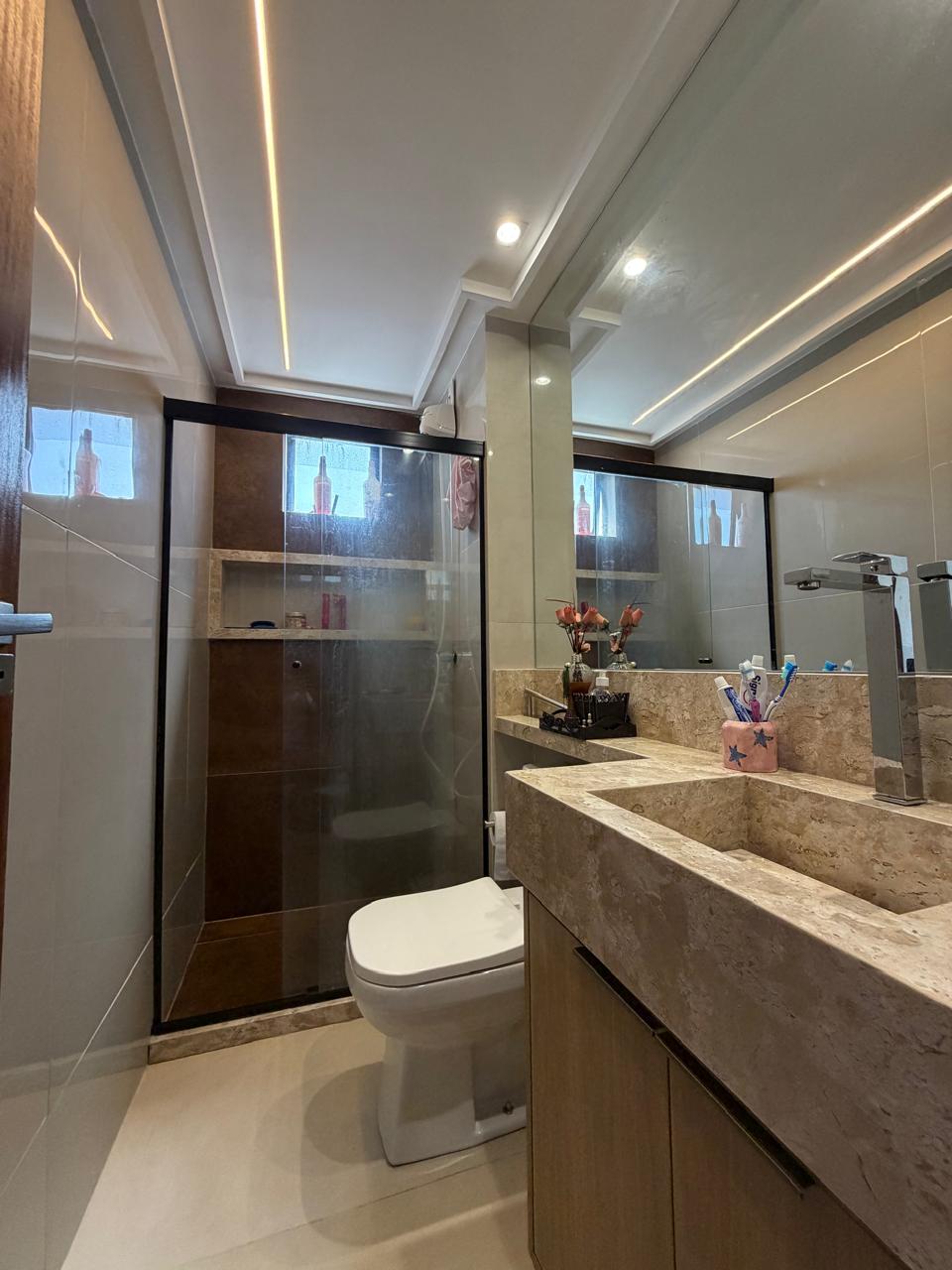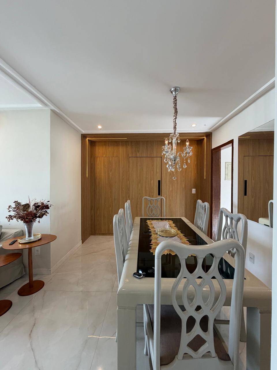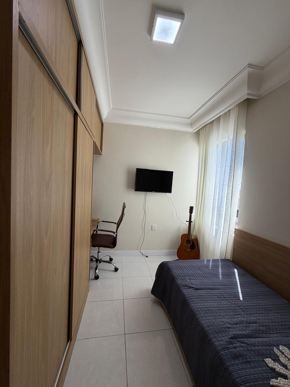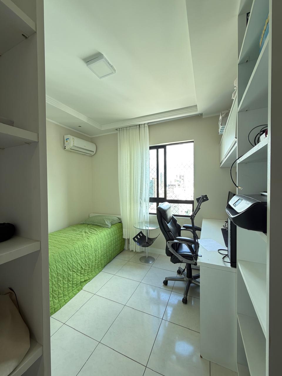 3/4, 1 suíte, sala com 2 ambientes, estar e jantar, varanda, banheiro social, cozinha, área de serviço e dependência completa. Andar alto com vista panorâmica do bairro.