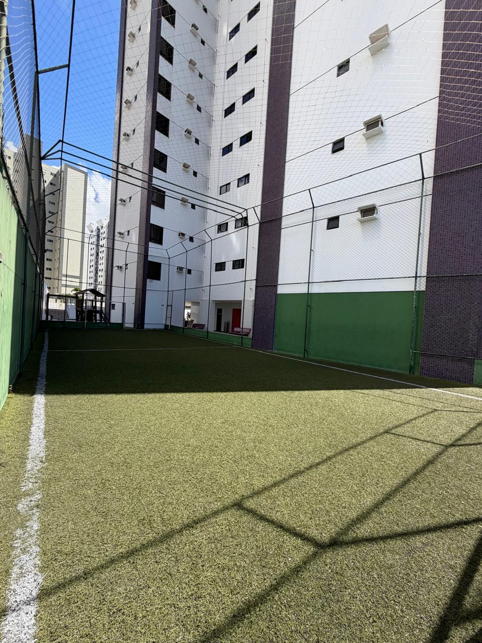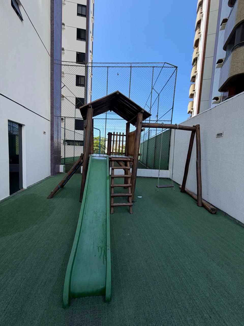 Piscina, campo infantil com grama sintética, parquinho, play descoberto, academia, salão de jogos e salão de festas.