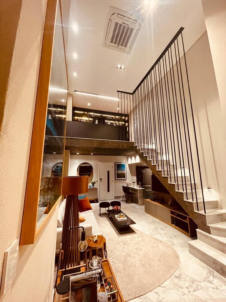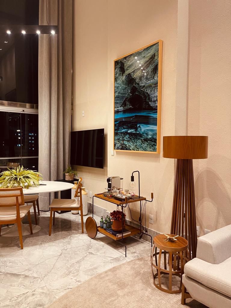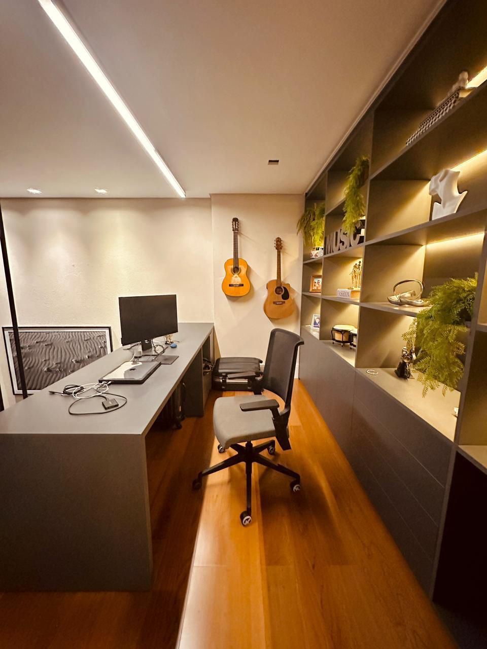 Loft finamente decorado, 115m2, andar alto, 2 suítes com escritório, armários planejados em todos ambientes, vista livre, lavabo, projeto de gesso, varanda com fechamento de vidro, ar-condicionado, 2 vagas soltas.