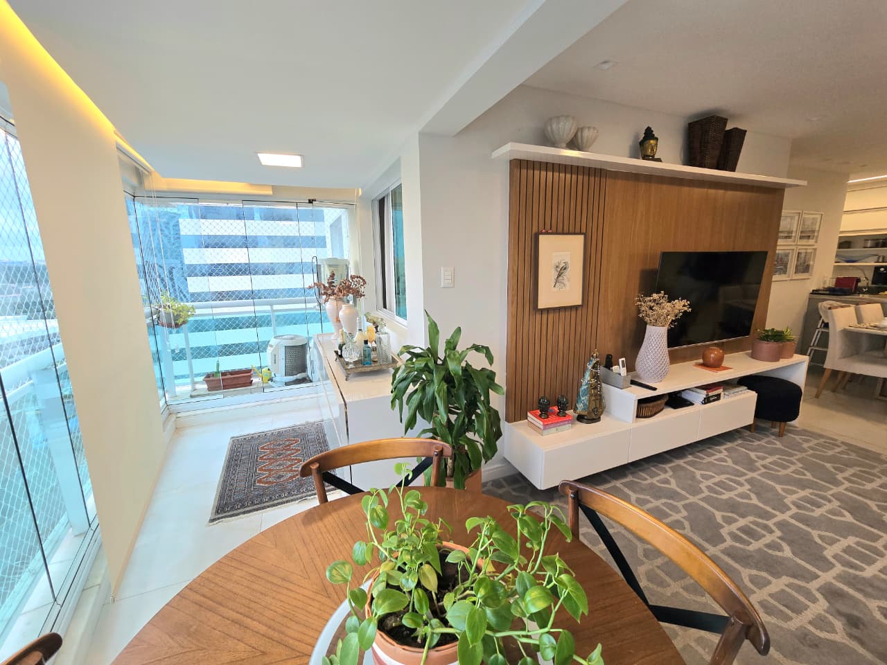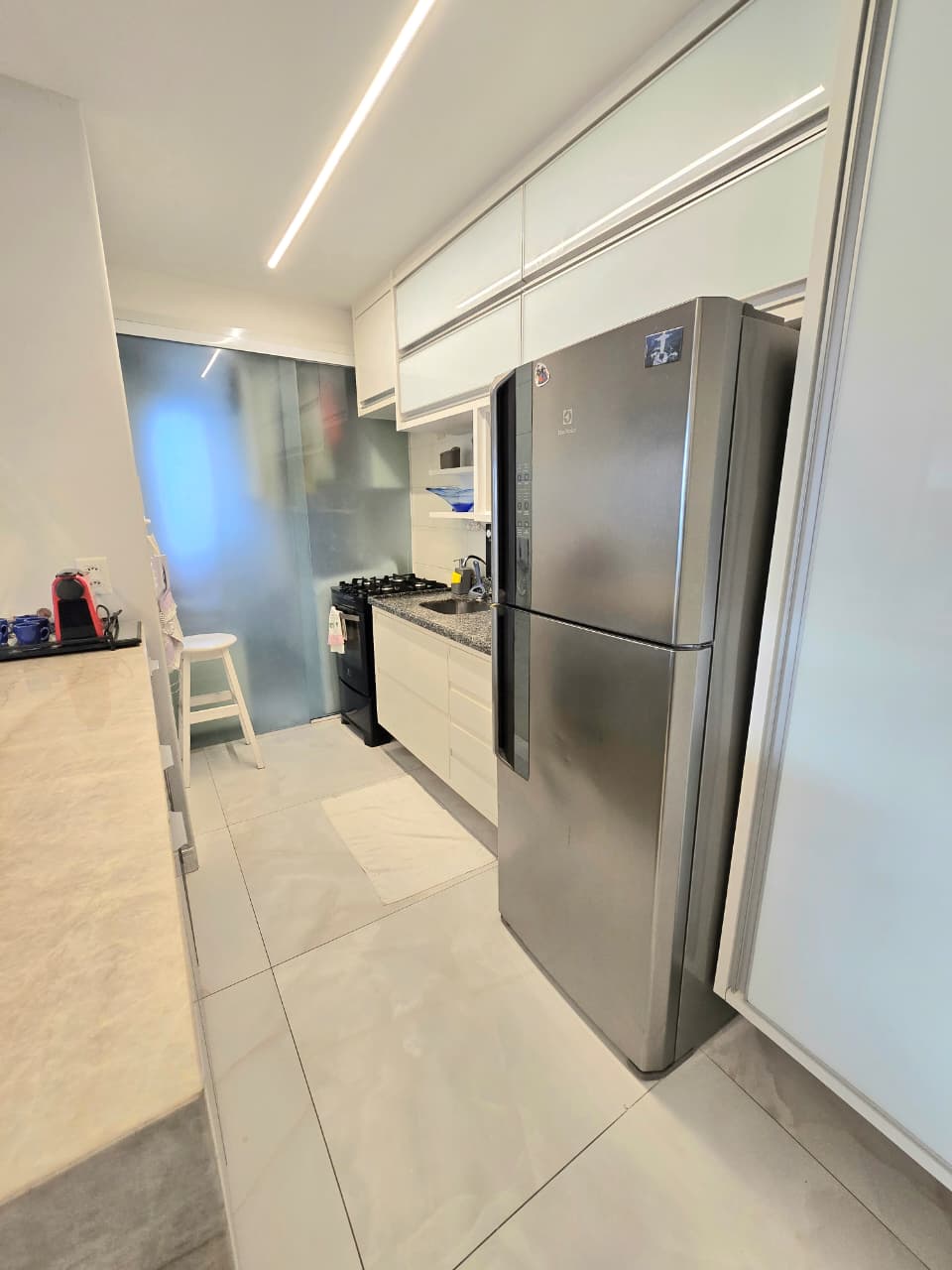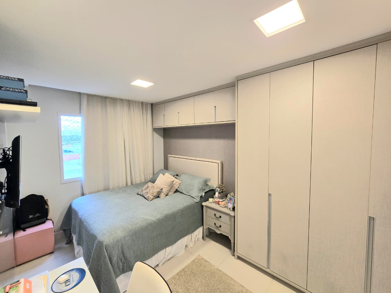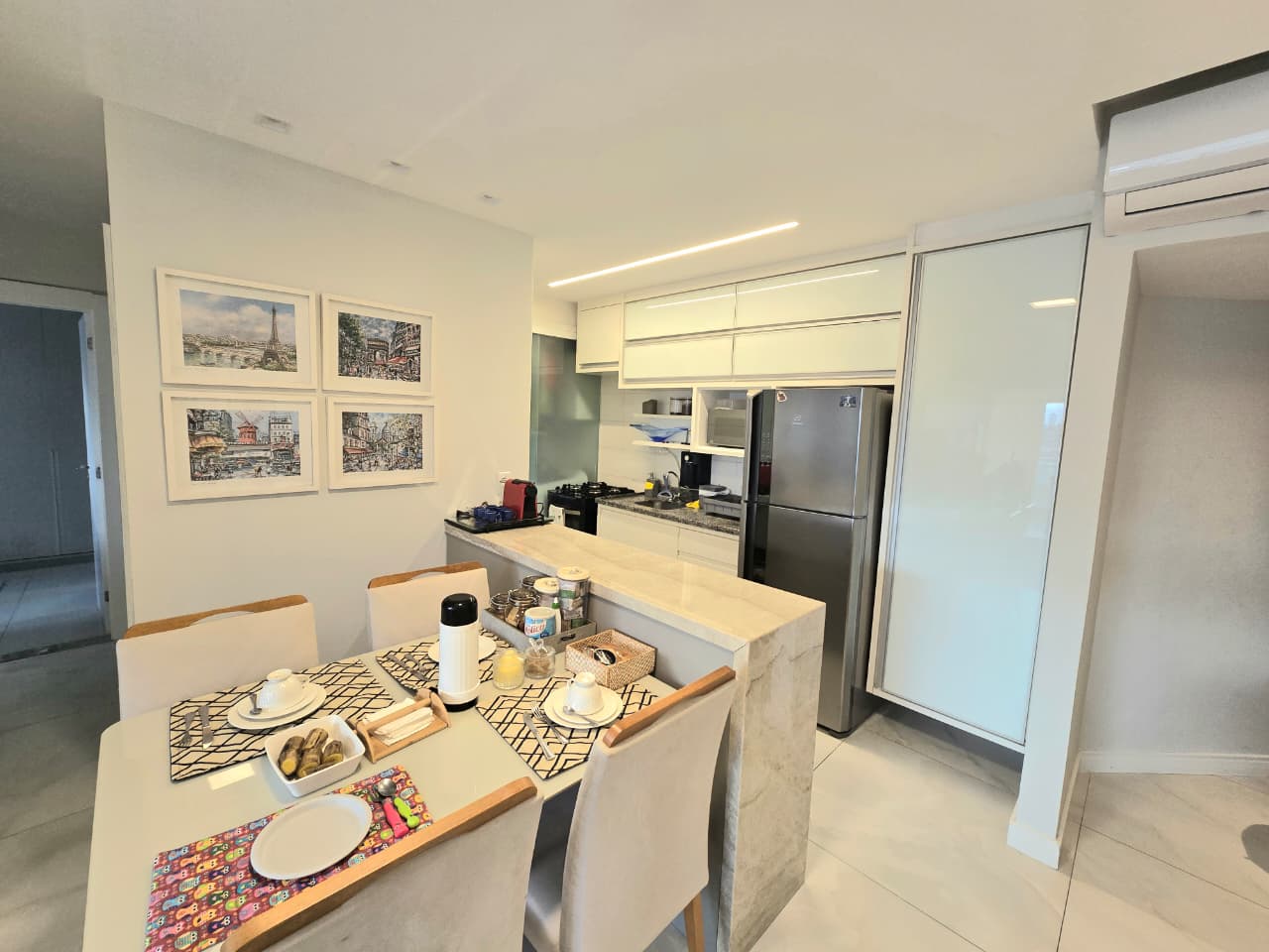 Acompanha: Geladeira, fogão, microondas, sofá, mesa de 4 lugares na sala de jantar, cama de casal na suite, ar-condicionado, armários planejados, cortinas, rede de proteção.