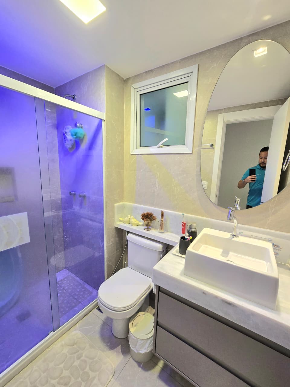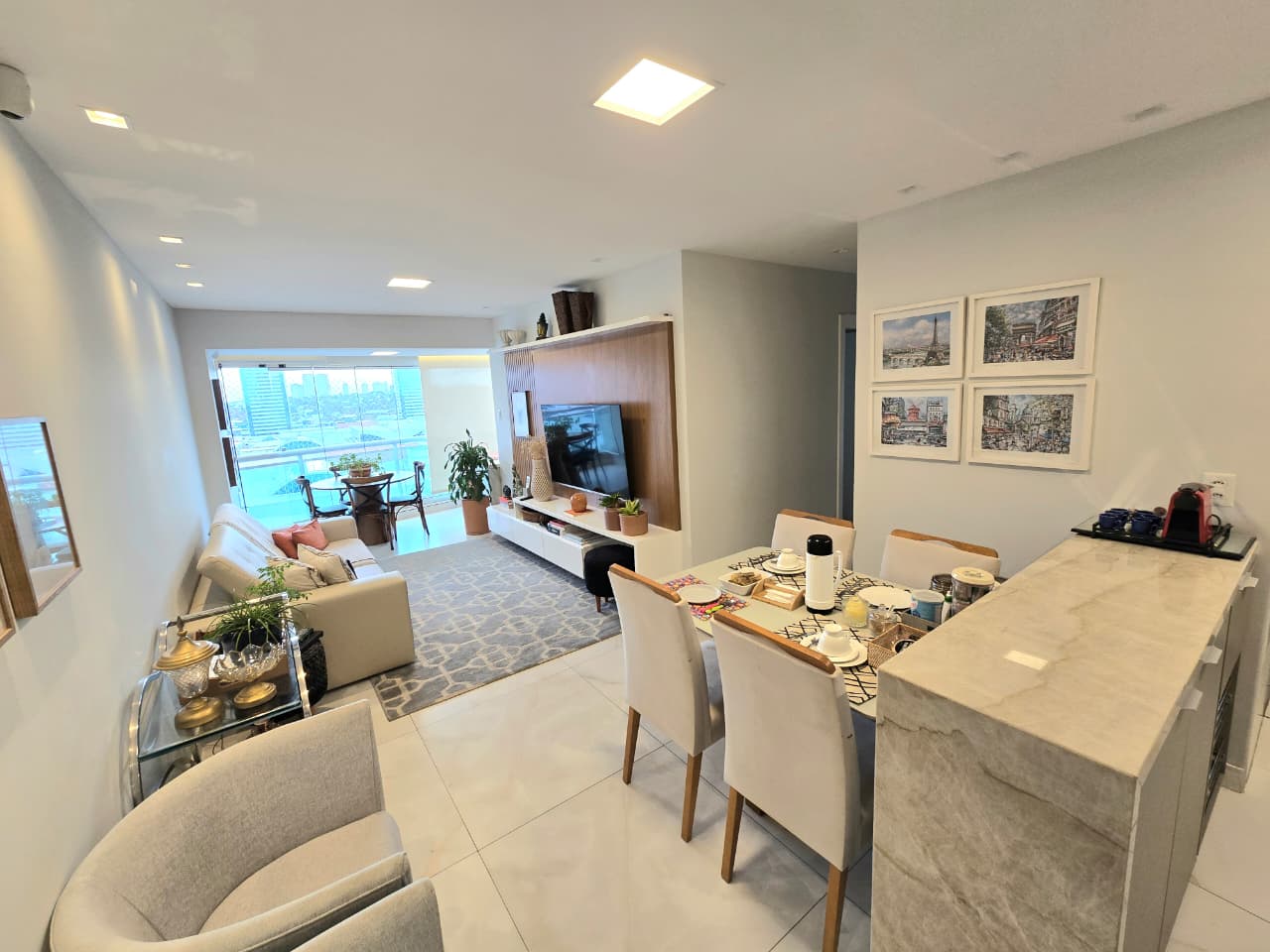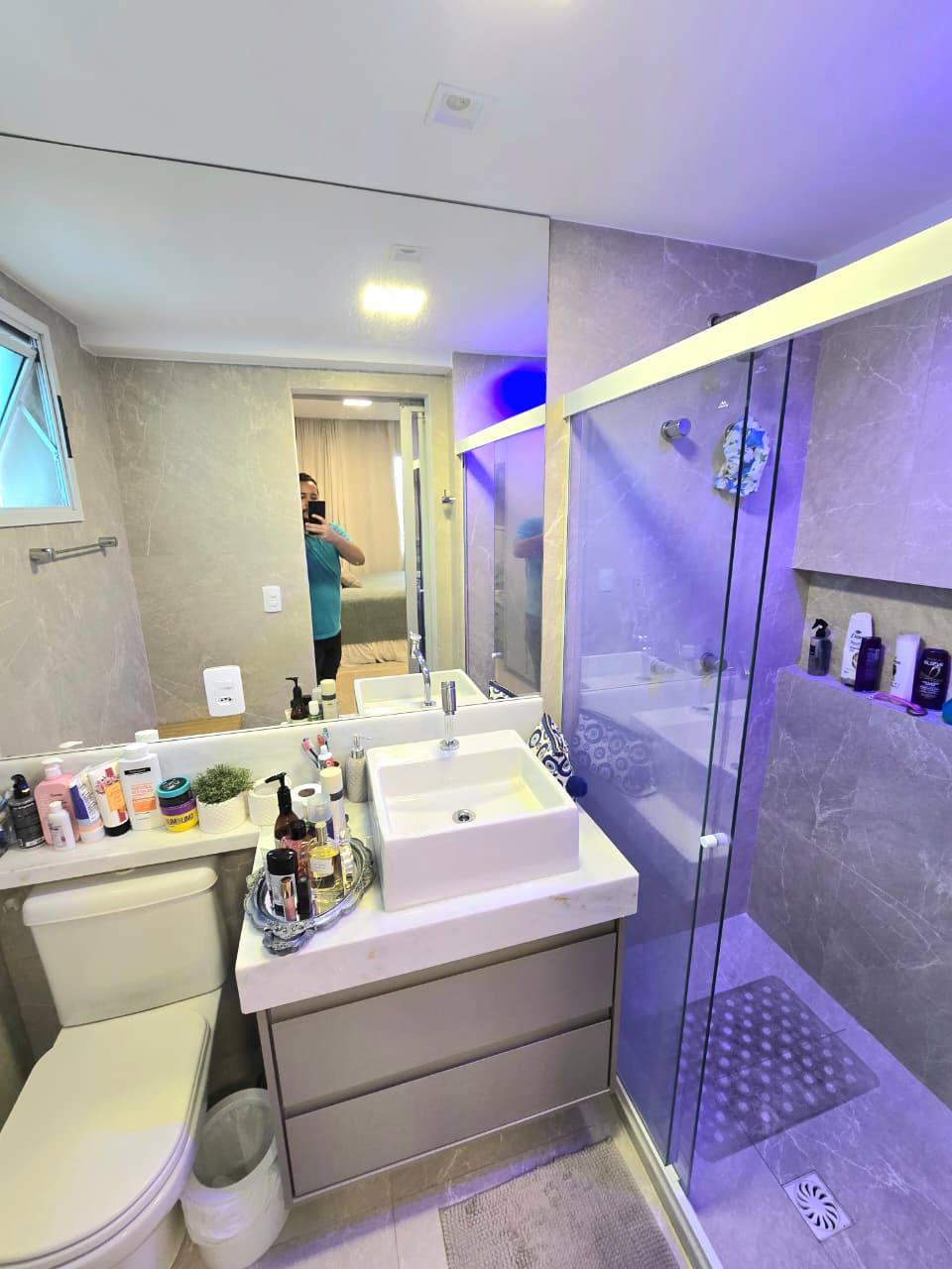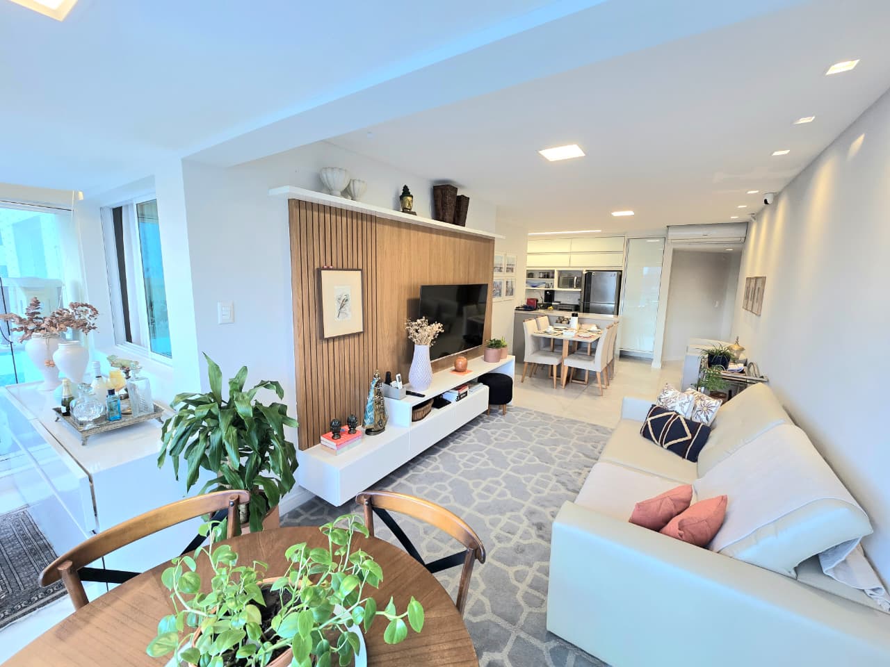 Acompanha: Geladeira, fogão, microondas, sofá, mesa de 4 lugares na sala de jantar, cama de casal na suite, ar-condicionado, armários planejados, cortinas, rede de proteção.