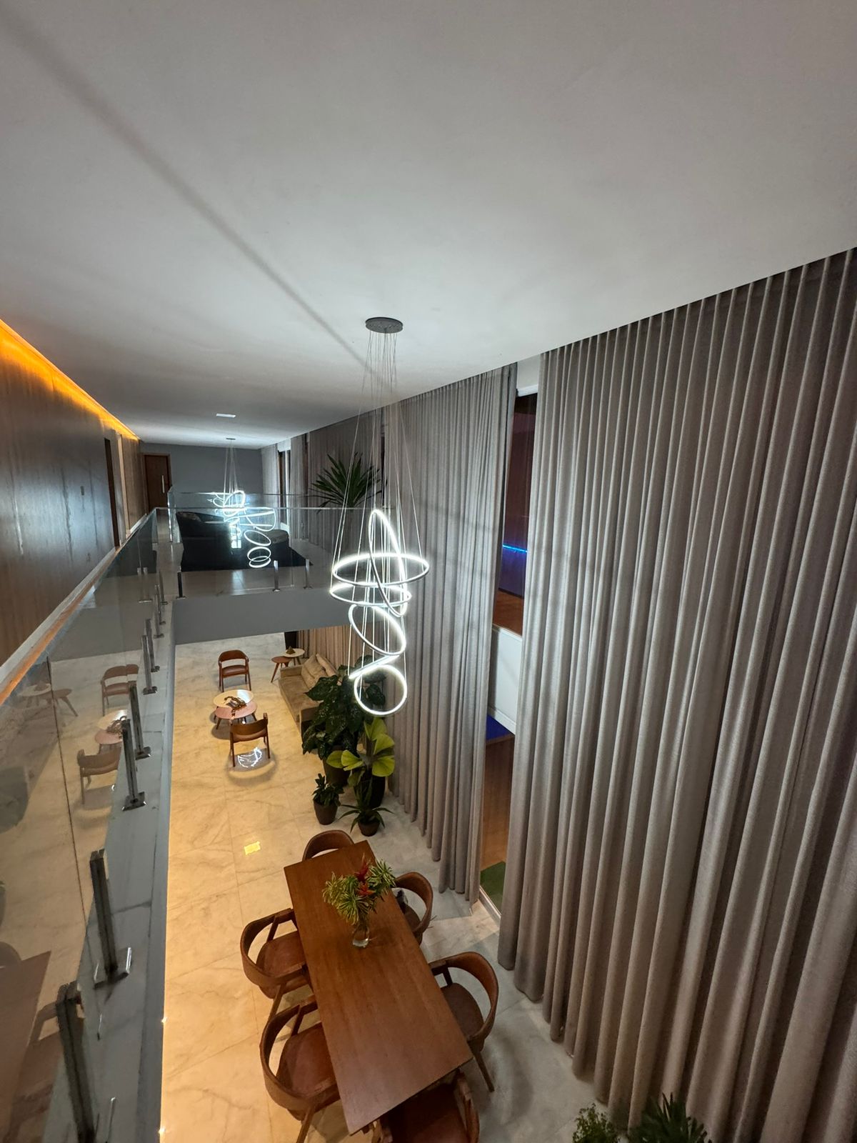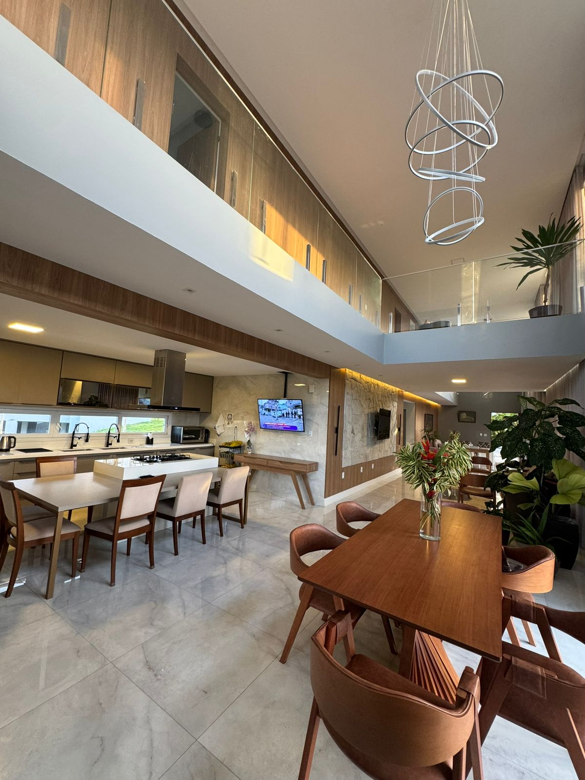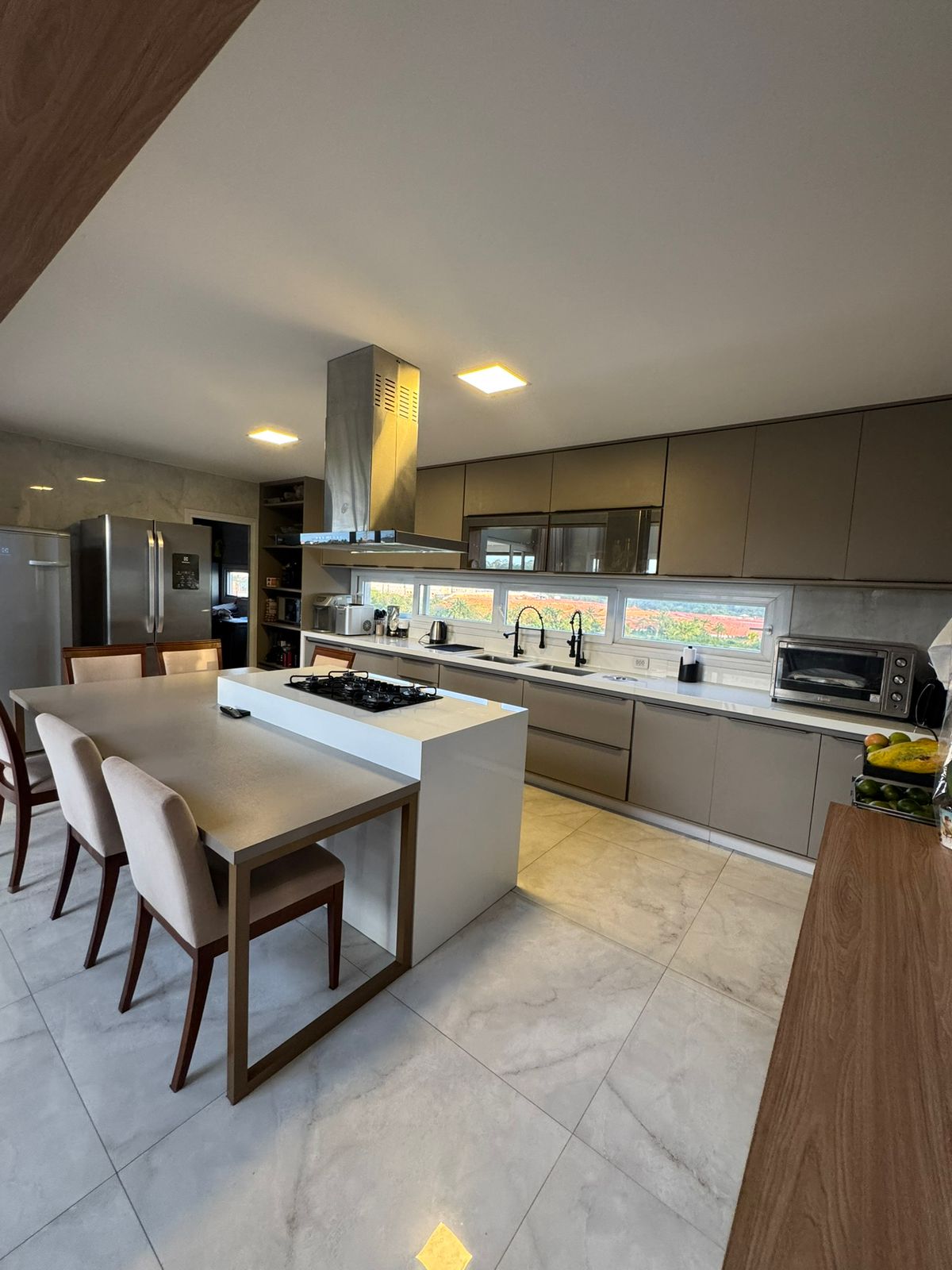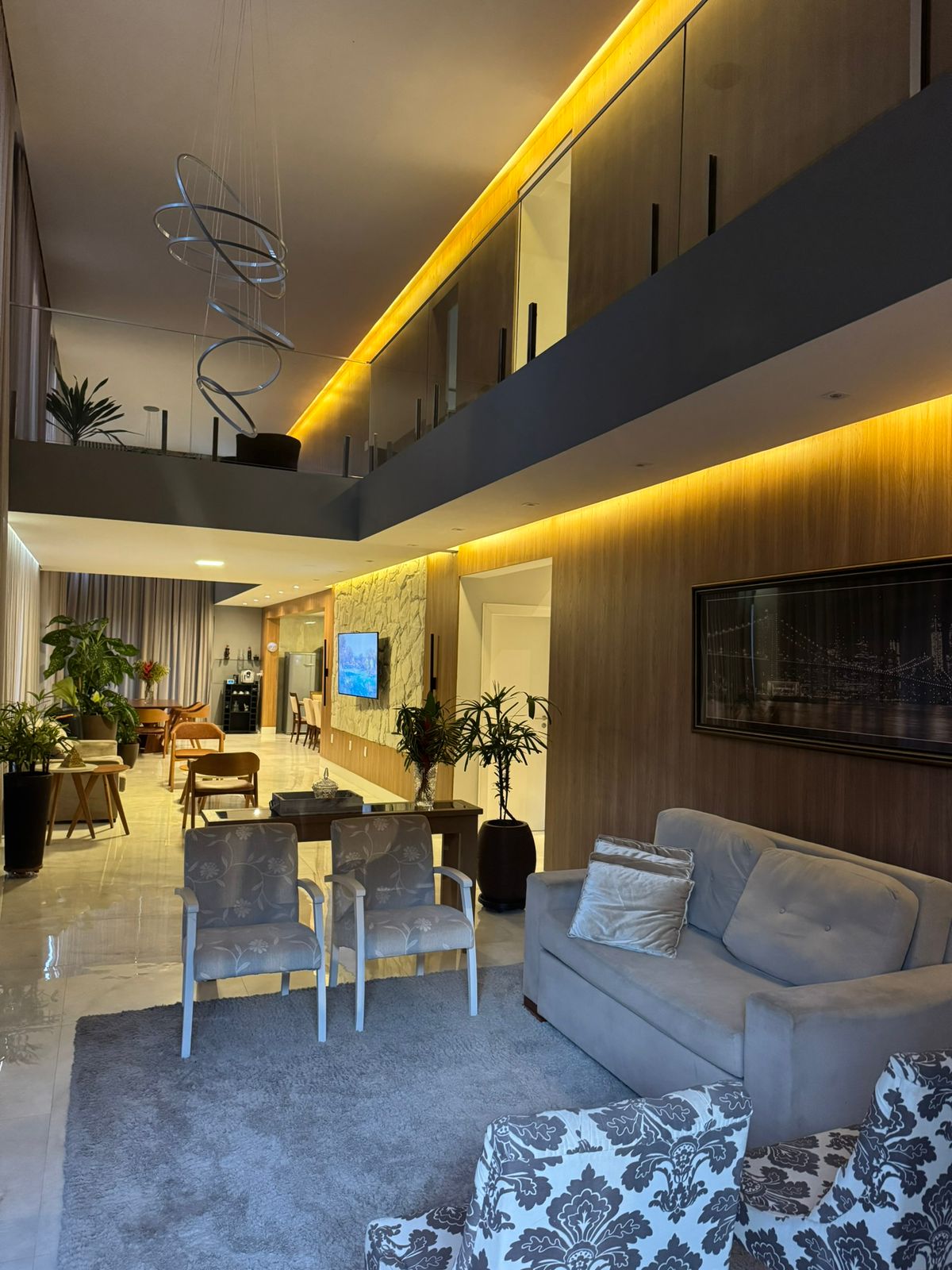 4 suítes todas com closet sendo 1 no térreo + 1 escritório com acesso independe e + 1 suíte extra pavimento pode ser feita um pub ou academia ou salão de jogos, salão de festas, ou utilizar como garagem coberta apesar de já termos acima 6 vagas descobertas