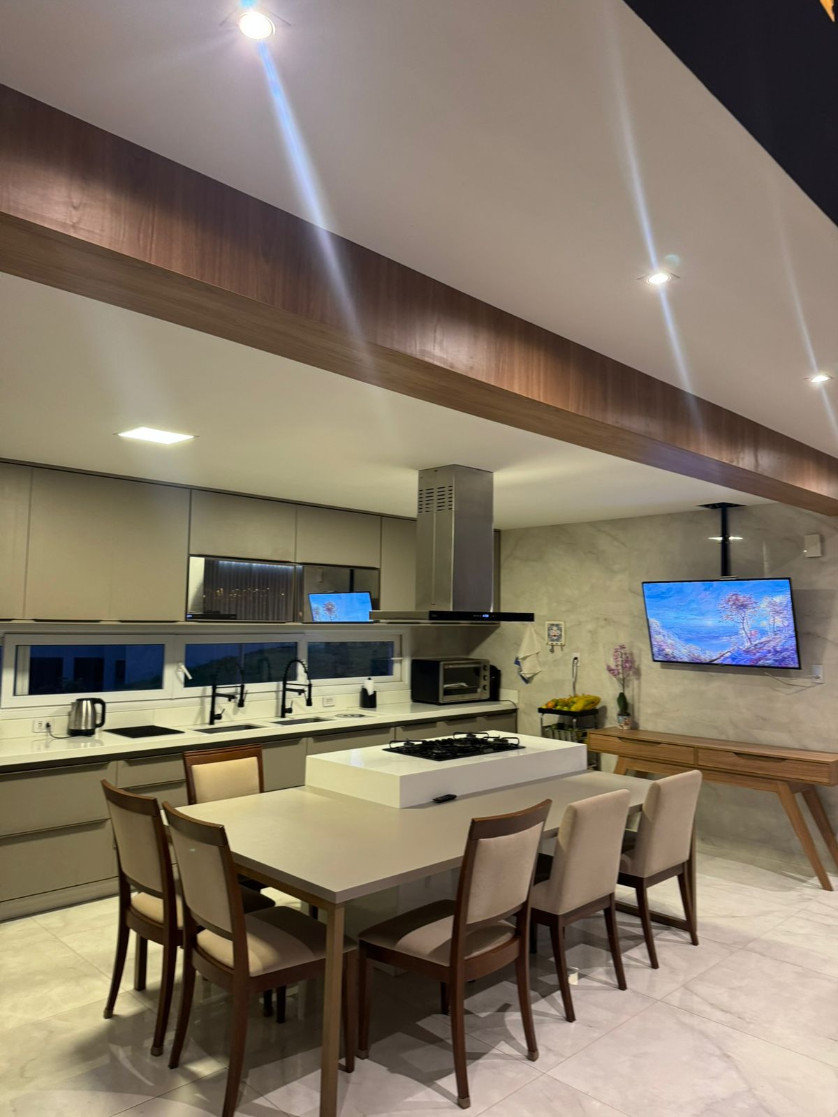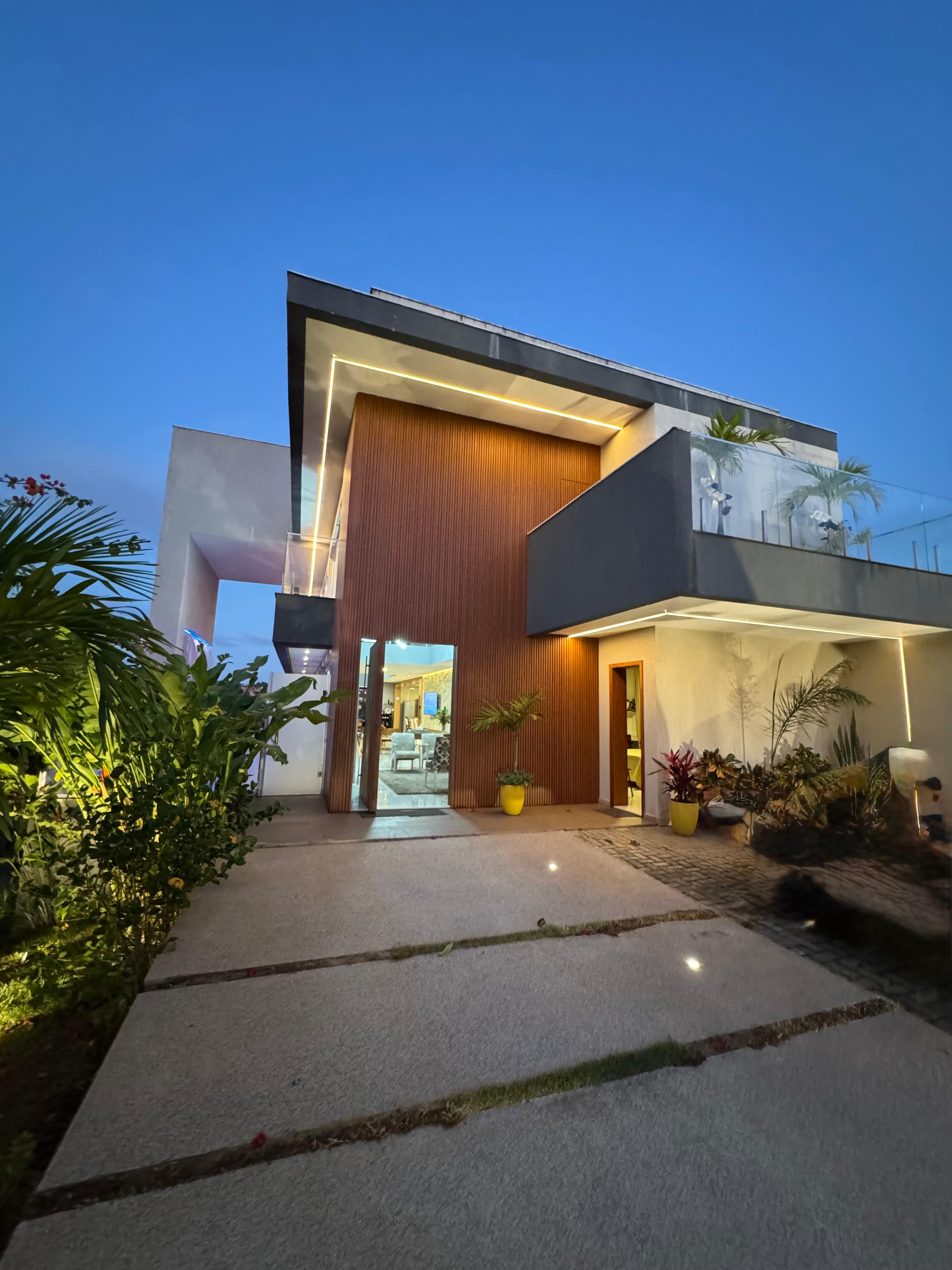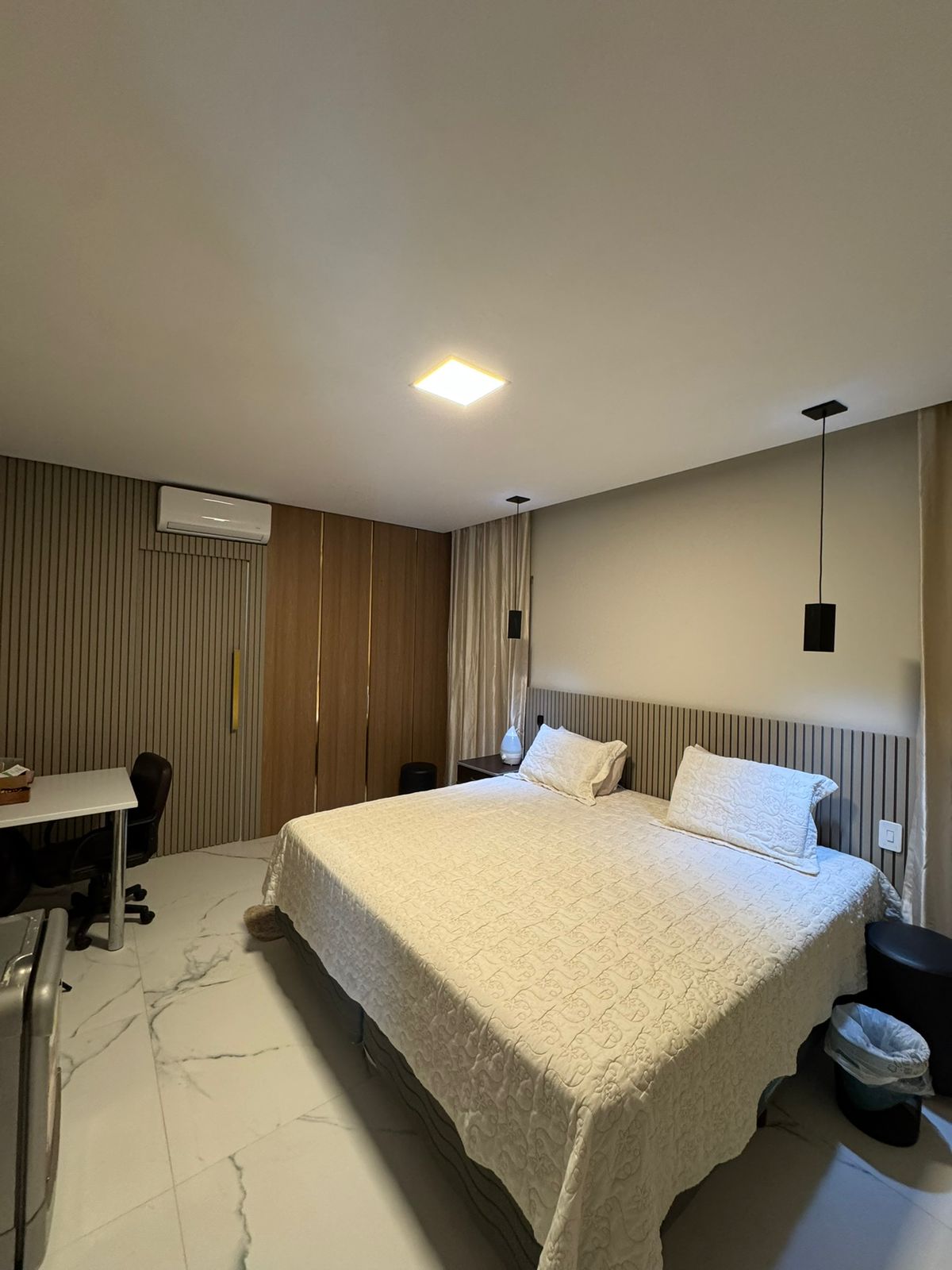 4 suítes todas com closet sendo 1 no térreo + 1 escritório com acesso independe e + 1 suíte extra pavimento pode ser feita um pub ou academia ou salão de jogos, salão de festas, ou utilizar como garagem coberta apesar de já termos acima 6 vagas descobertas