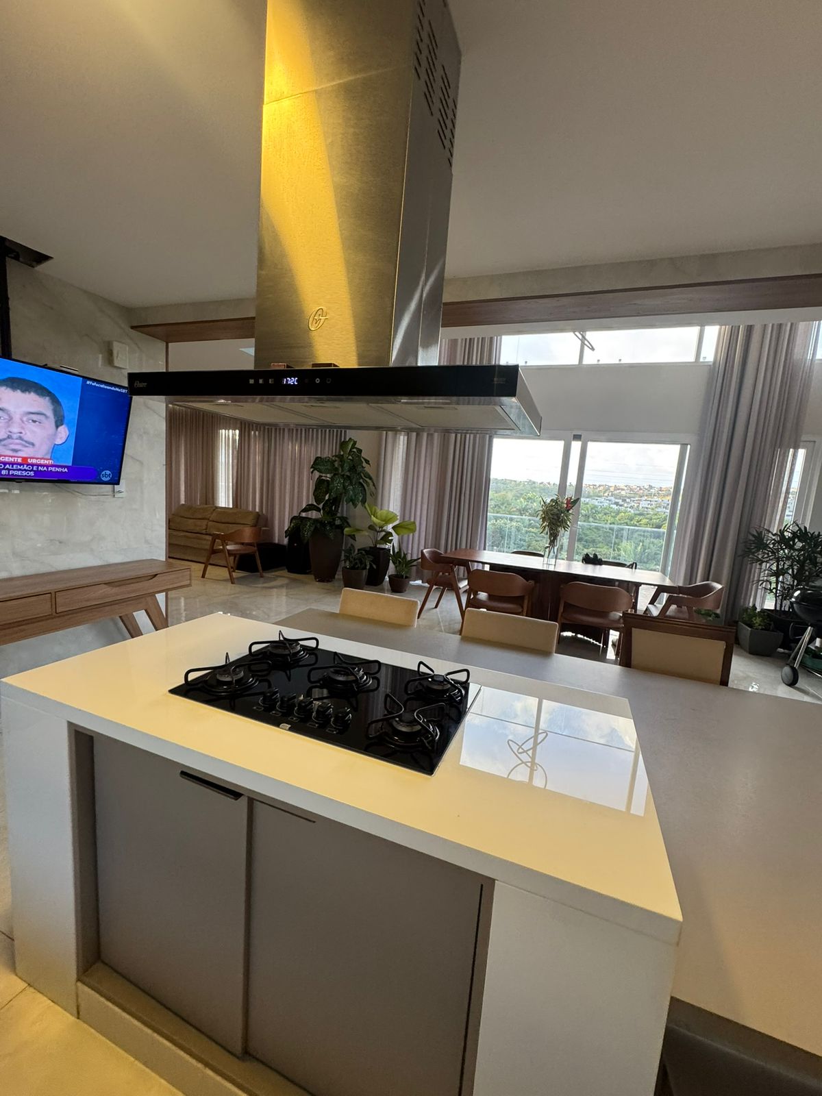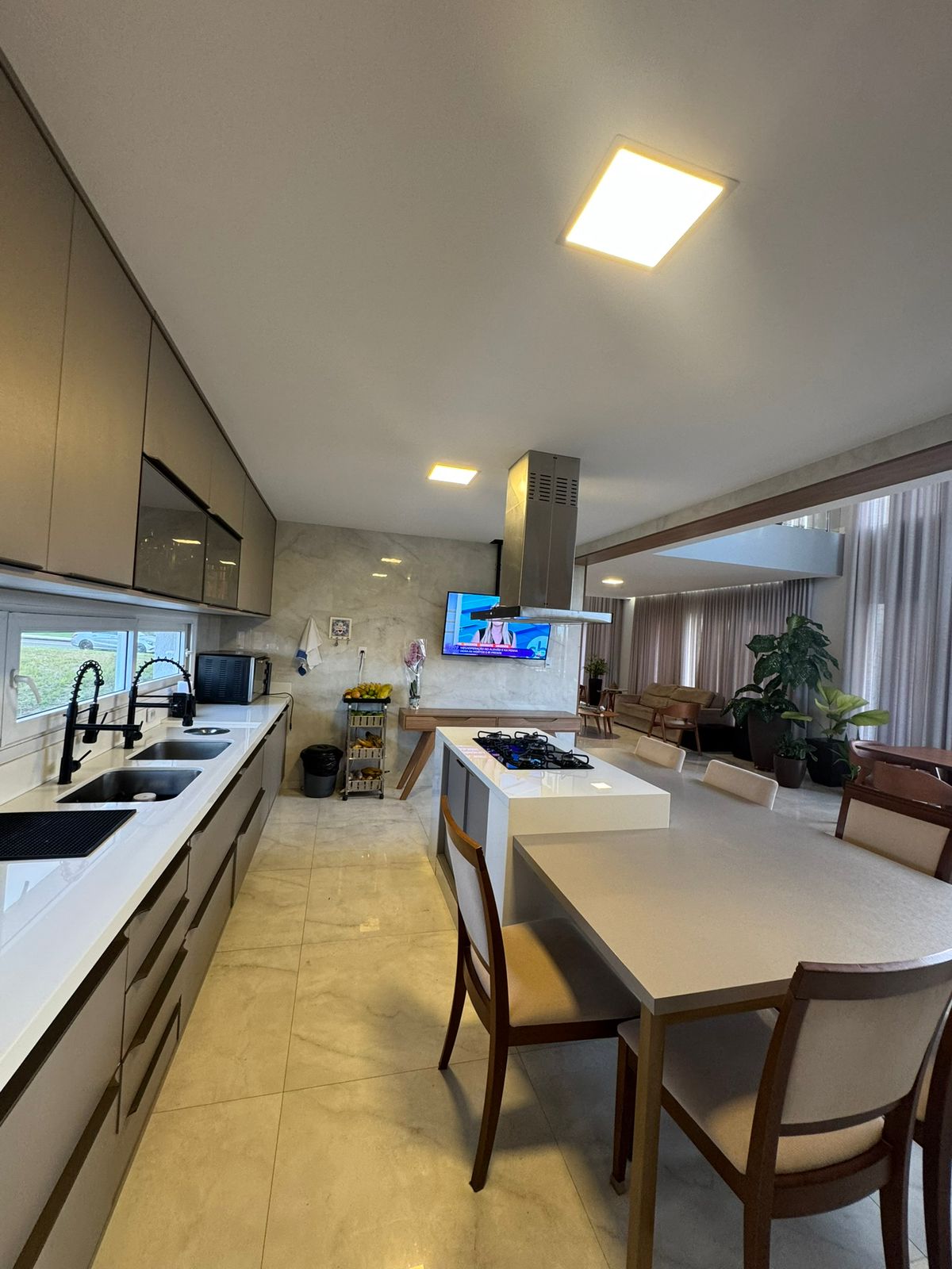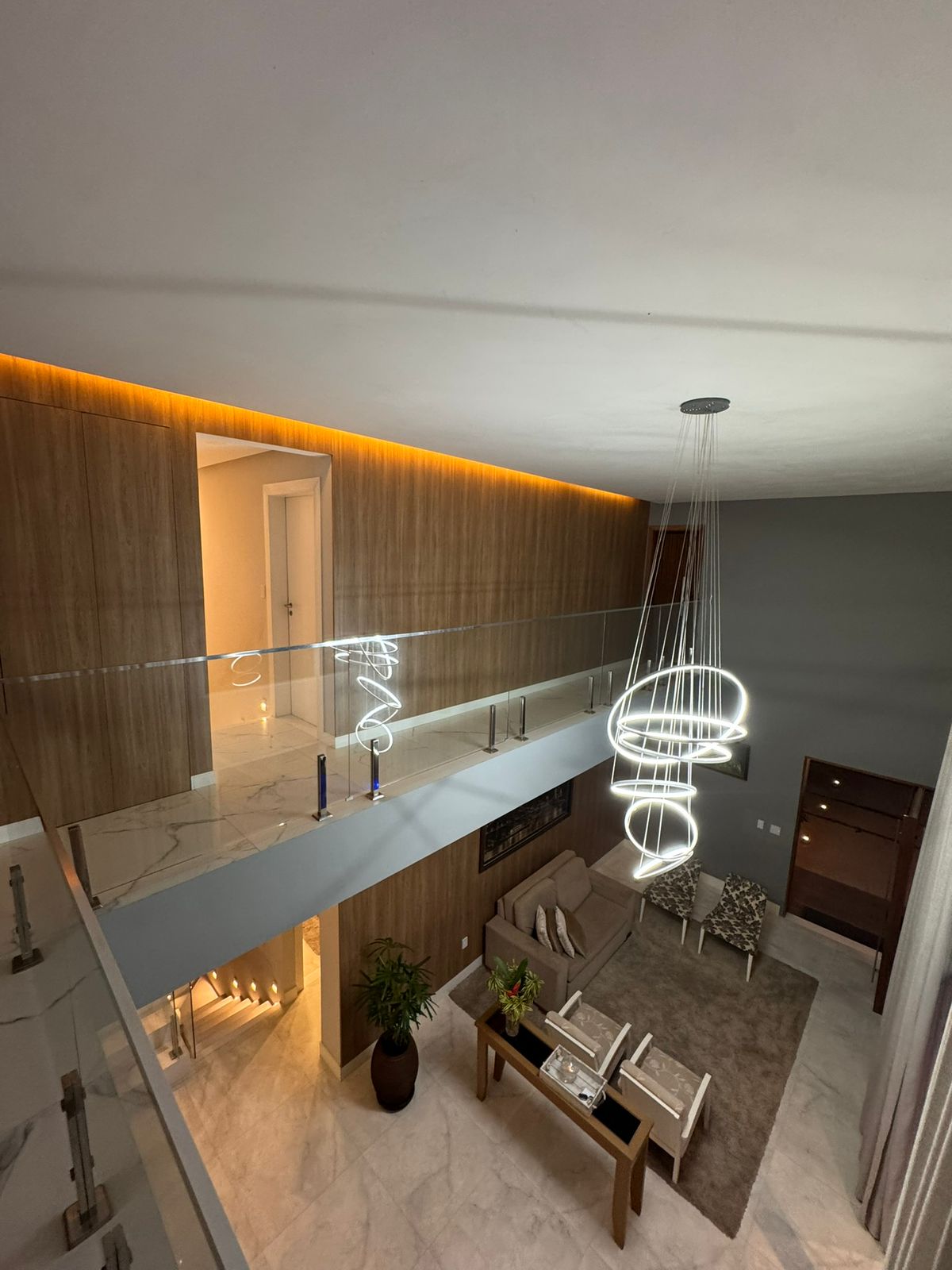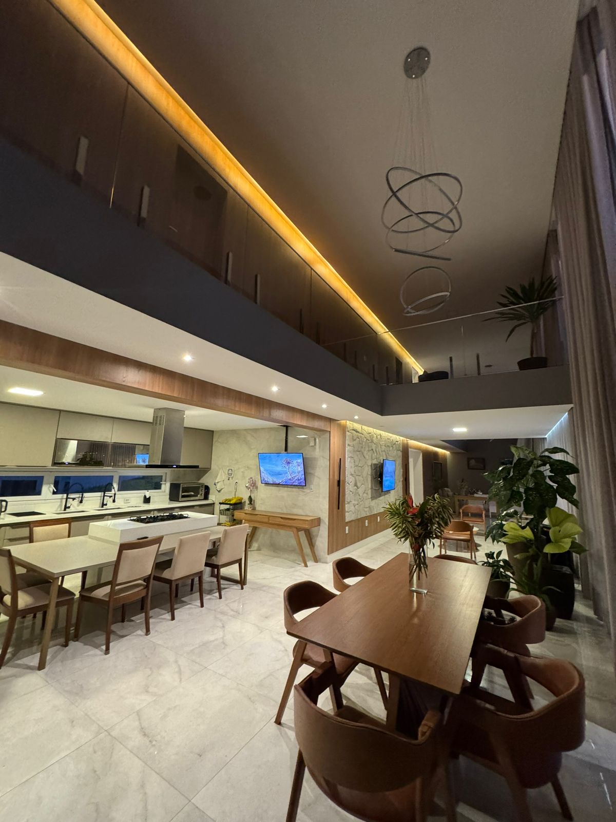 4 suítes todas com closet sendo 1 no térreo + 1 escritório com acesso independe e + 1 suíte extra pavimento pode ser feita um pub ou academia ou salão de jogos, salão de festas, ou utilizar como garagem coberta apesar de já termos acima 6 vagas descobertas