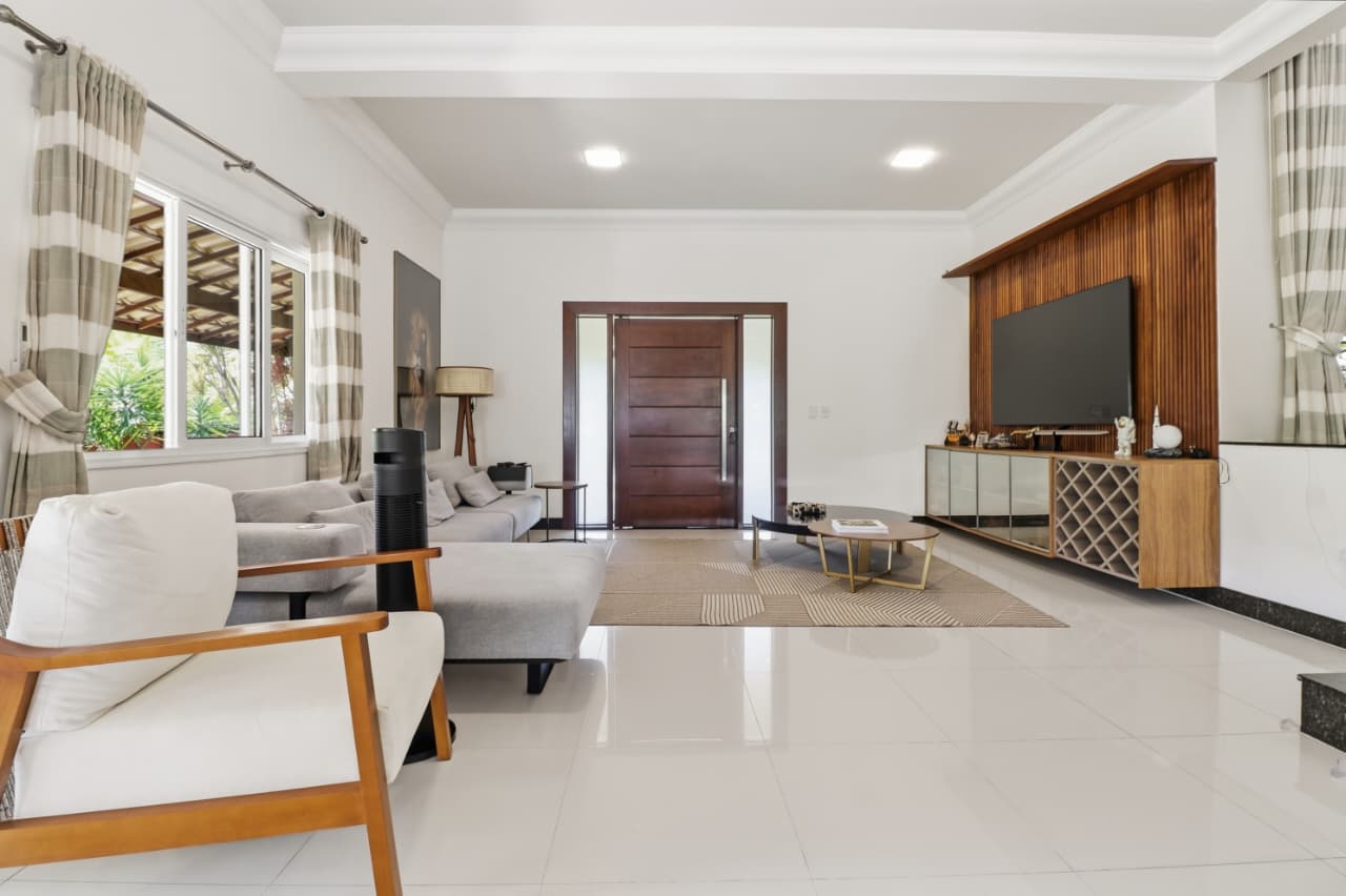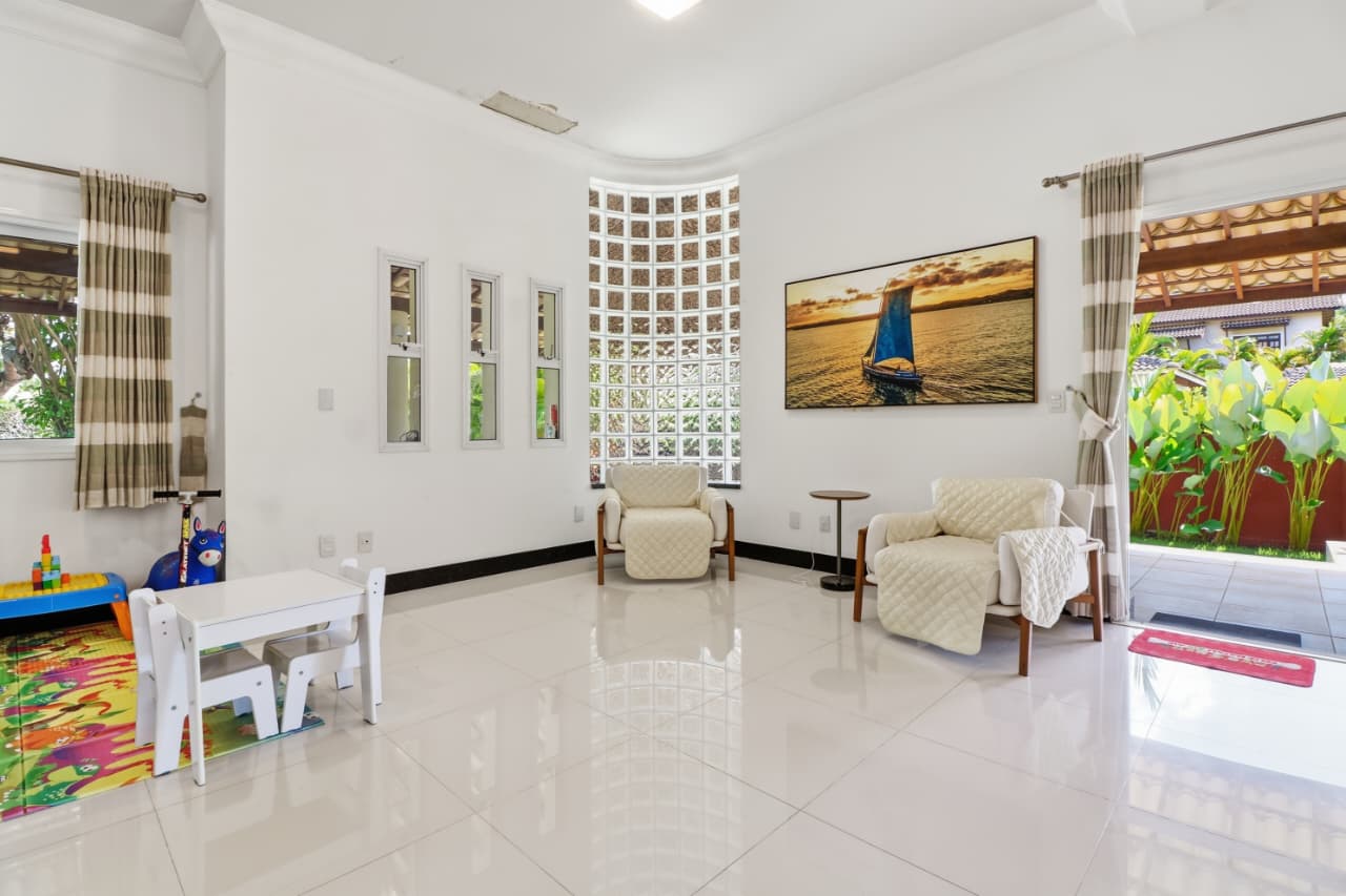Residência implantada em amplo terreno, com excelente distribuição de espaços, ventilação privilegiada e área externa generosa, localizada em condomínio fechado na região de Busca Vida.