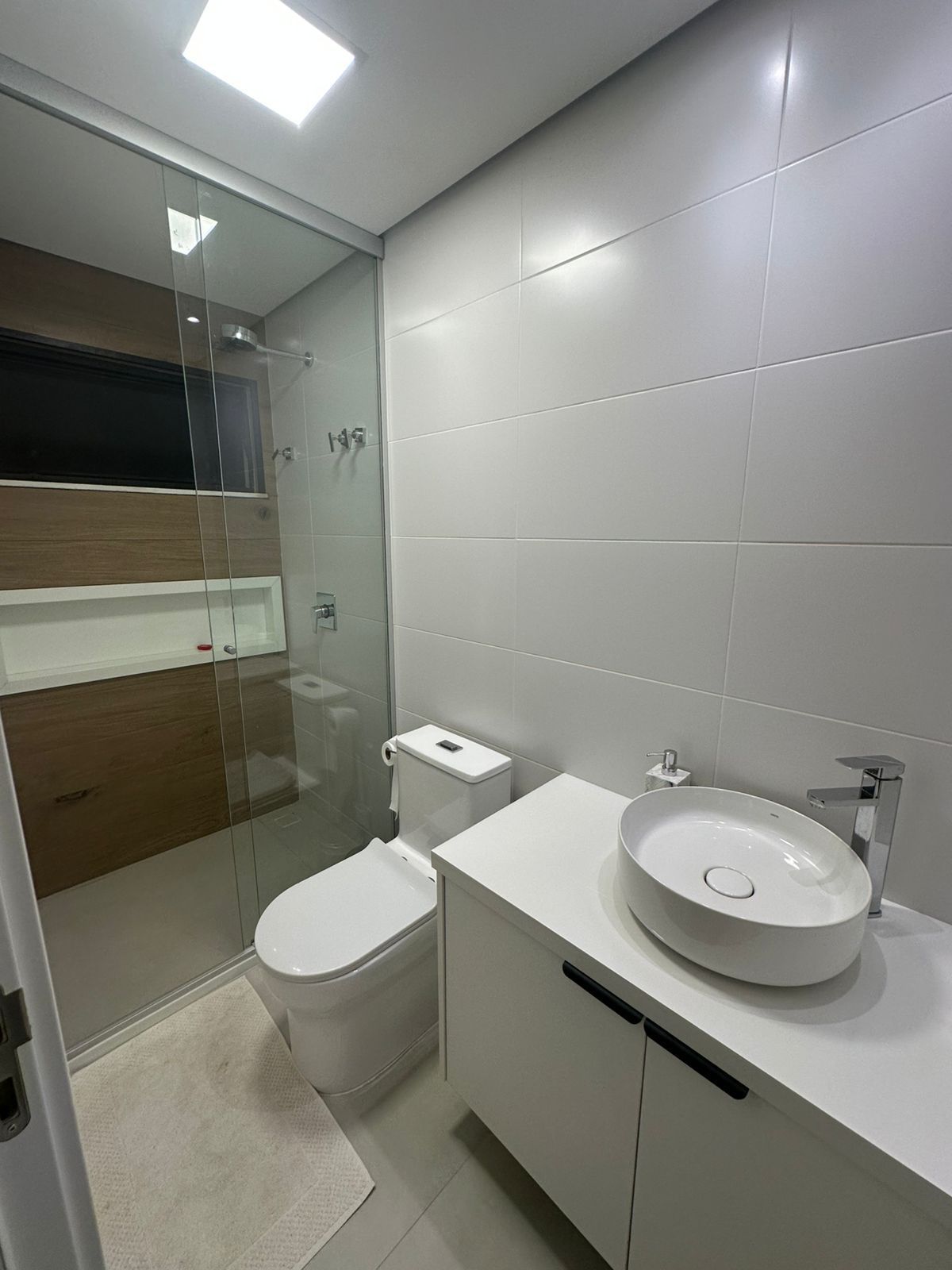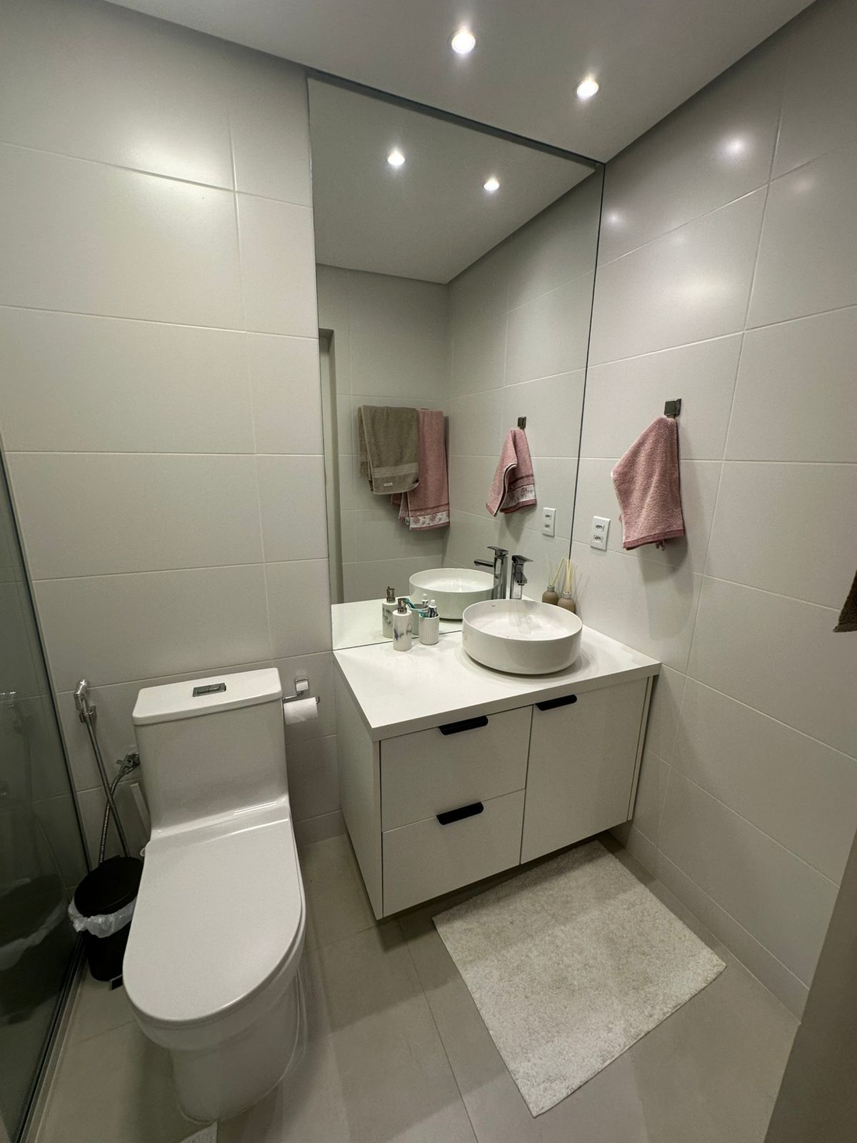 Banheiro principal com 2 chuveiros e 2 cubas